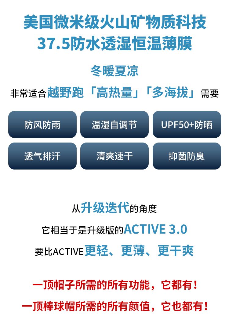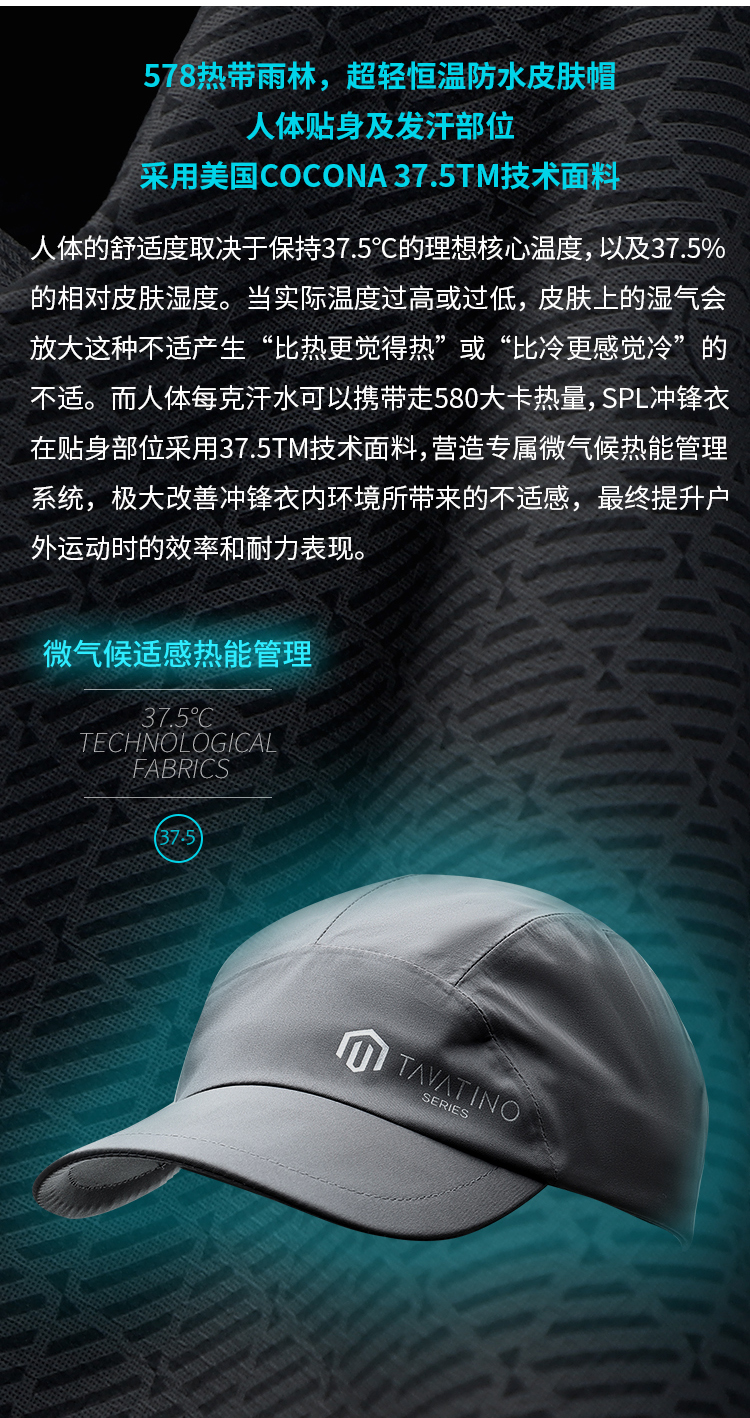 极限崂里 创新科技37.5微米科技防水透湿男女皮肤帽越野跑鸭舌棒球帽-5025