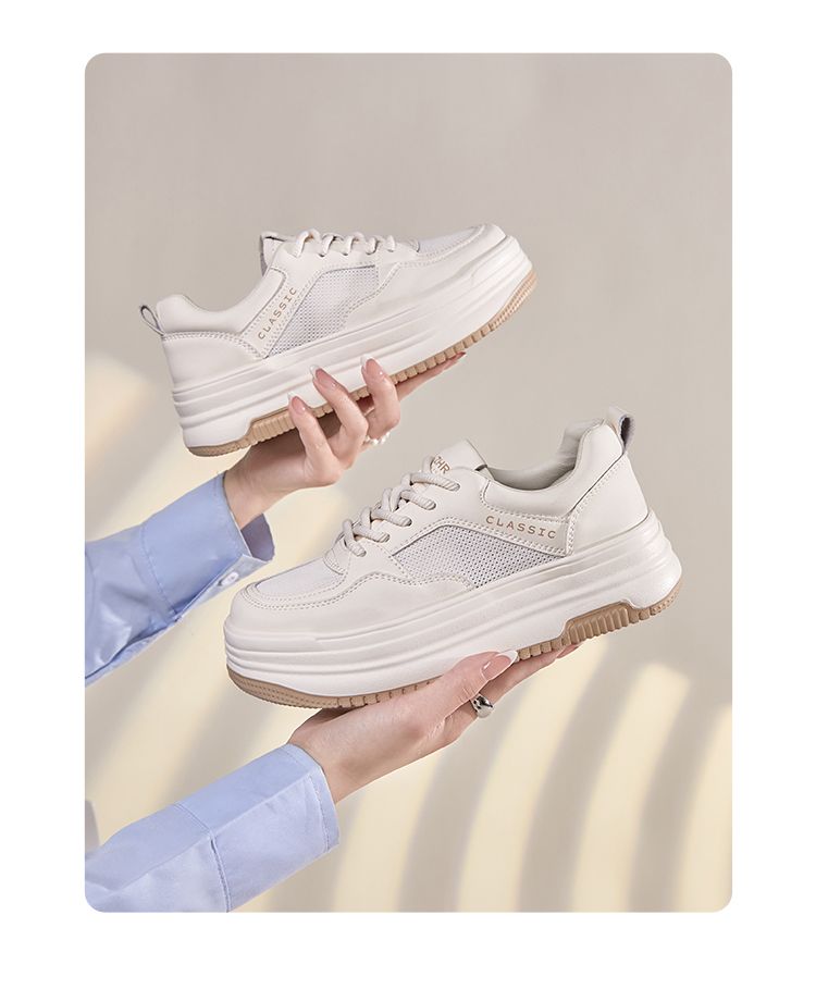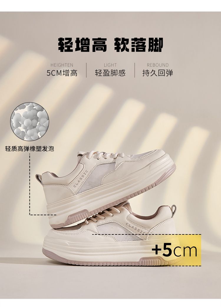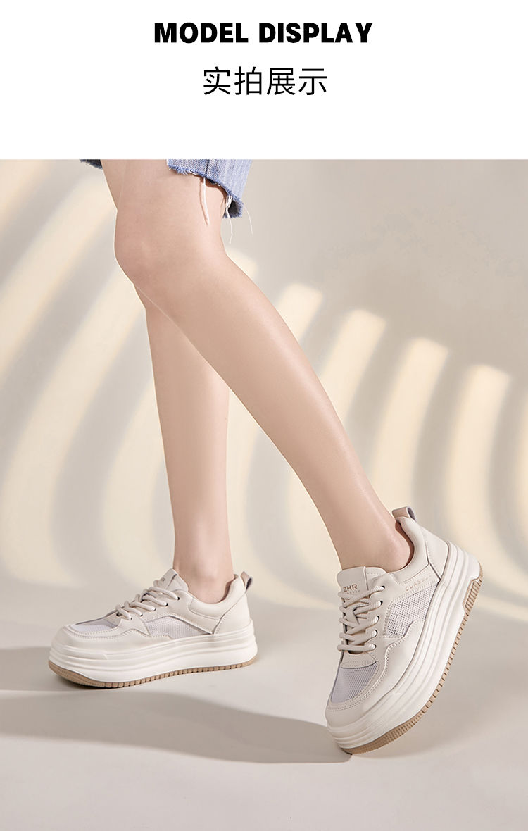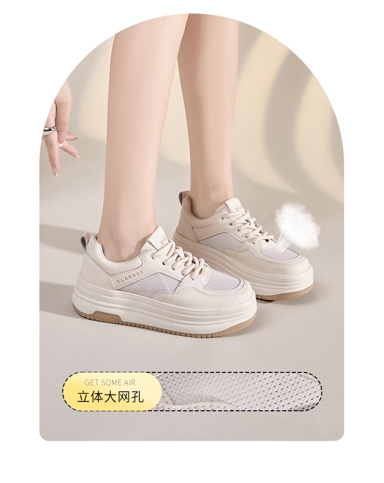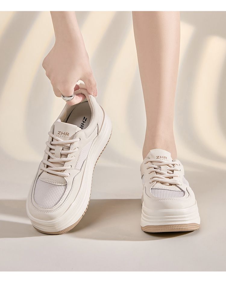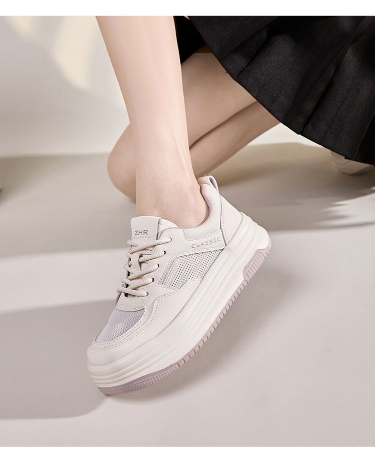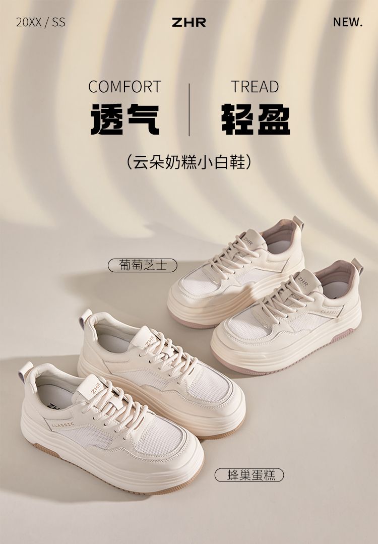 ZHR则则透气网面小白鞋女2024夏季新款百搭小白鞋厚底增高板鞋女