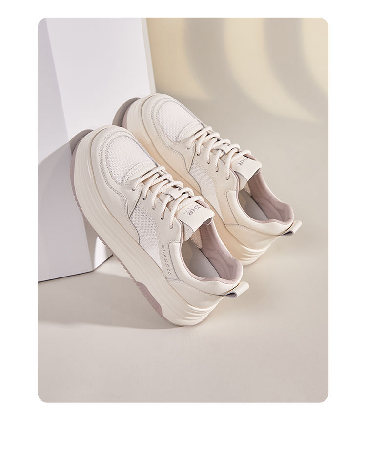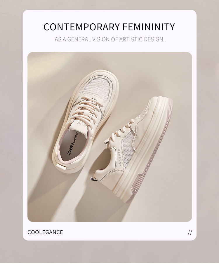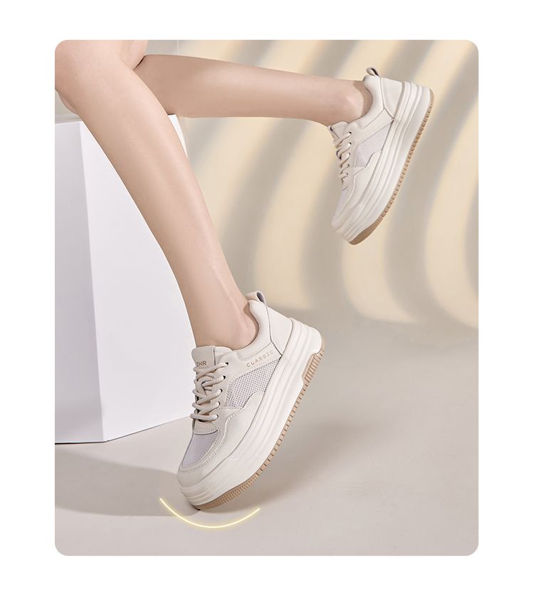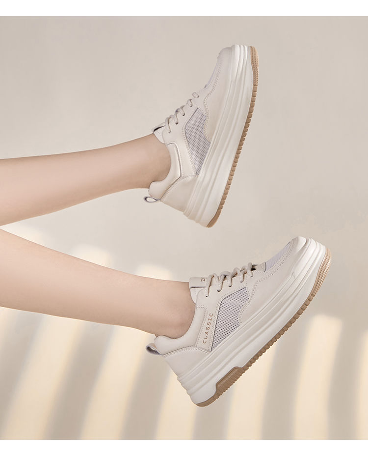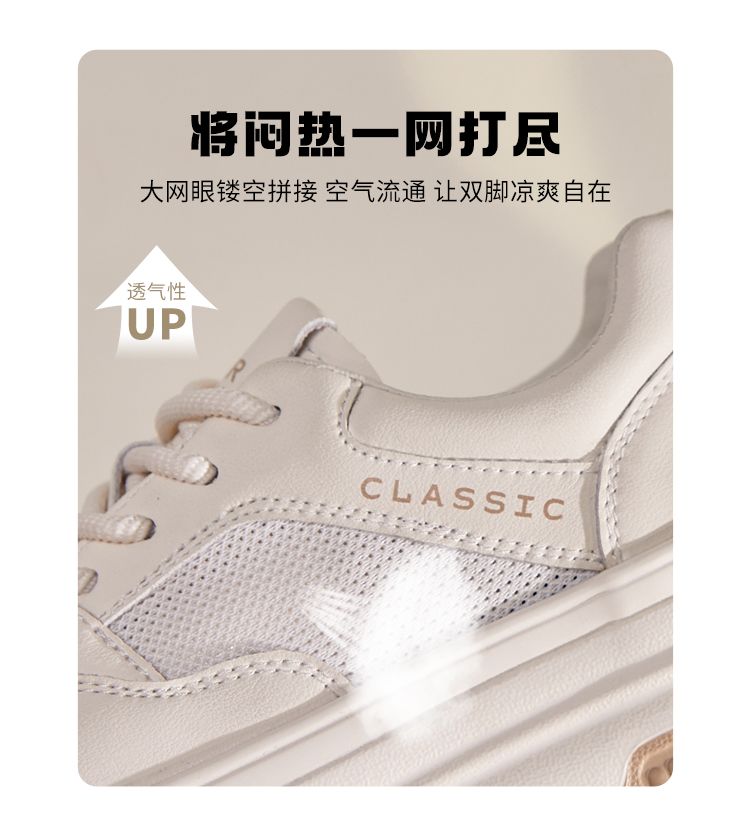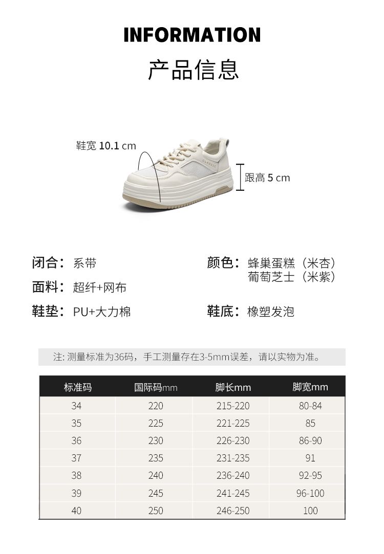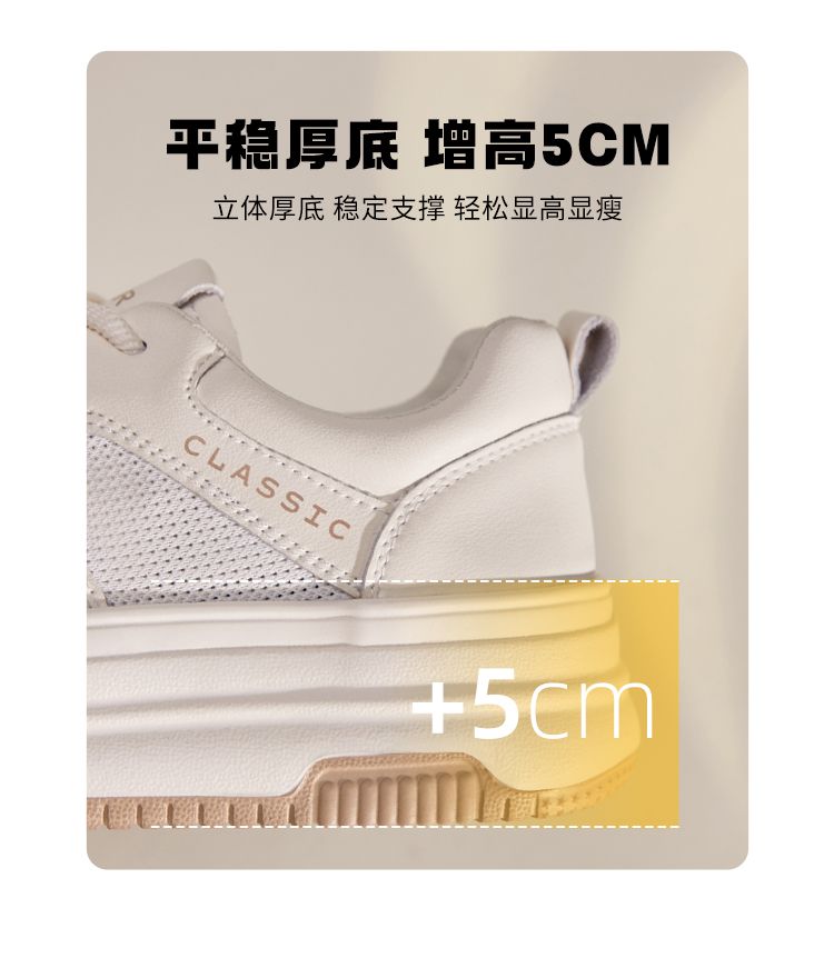 ZHR则则透气网面小白鞋女2024夏季新款百搭小白鞋厚底增高板鞋女
