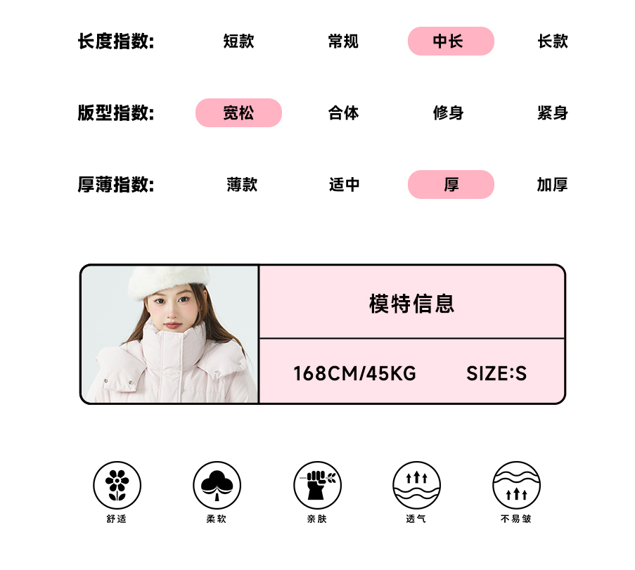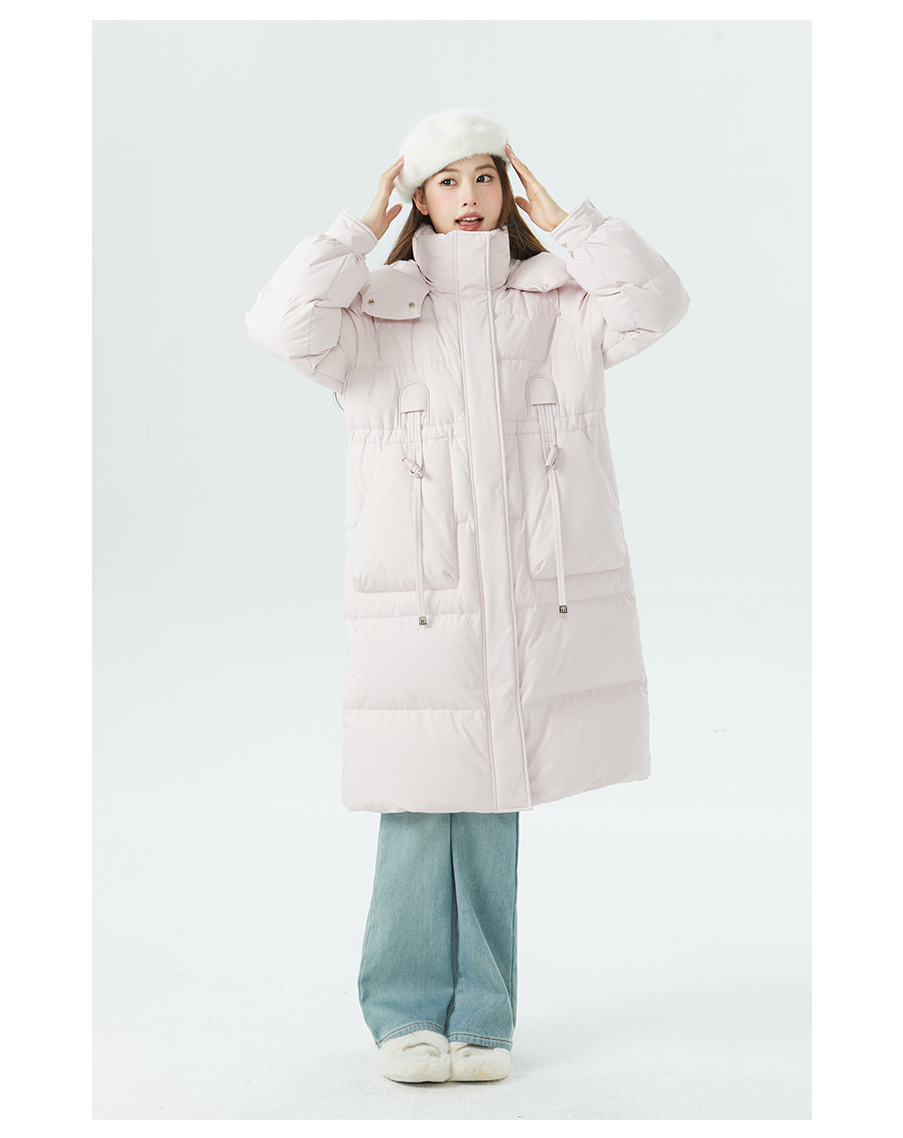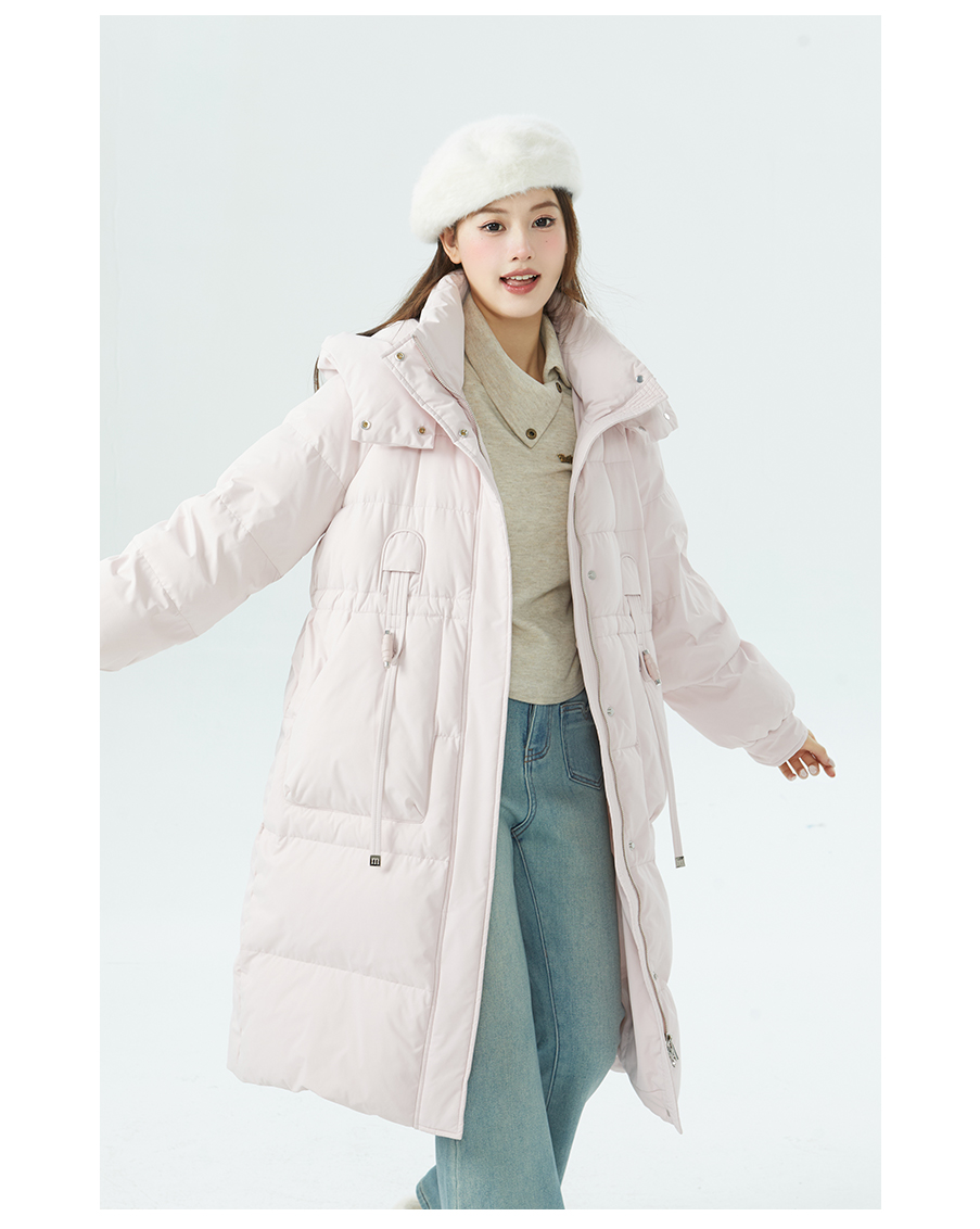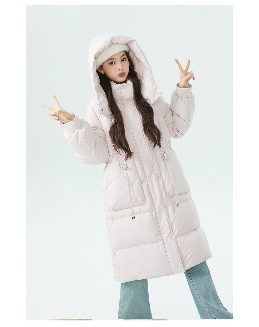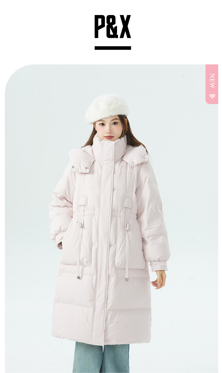 P&X设计师女装少女风宽松时尚连帽中长款羽绒服 824424256 粉色