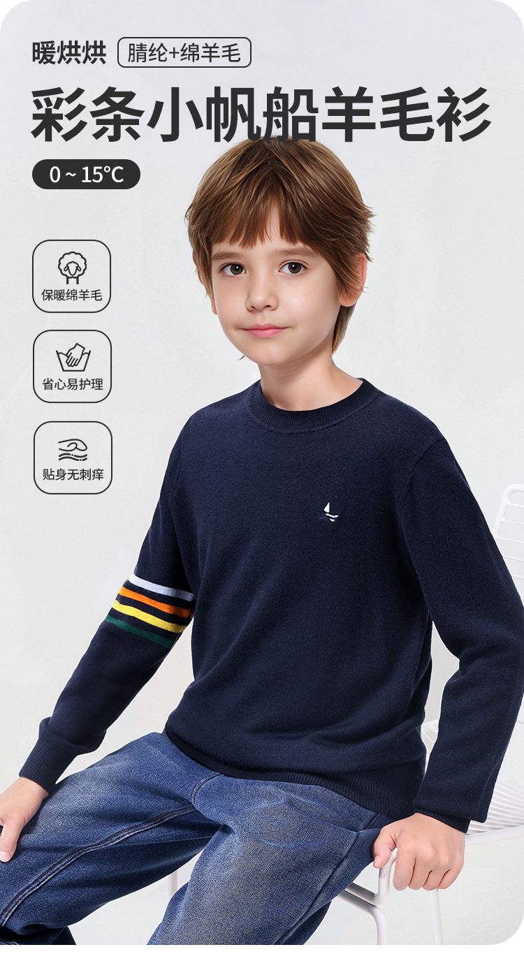 【纳维凯尔】【120-165】意大利小帆船男童羊毛针织衫毛衣