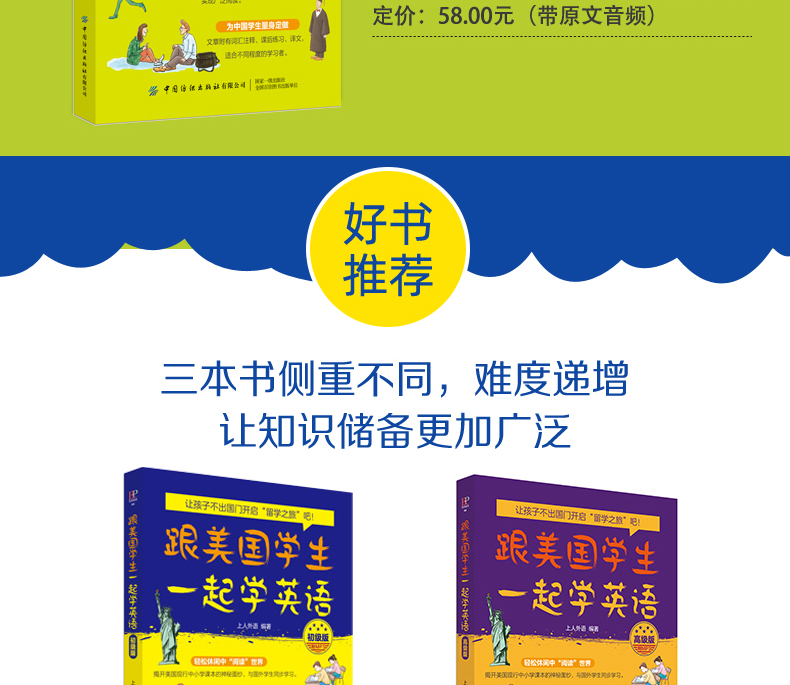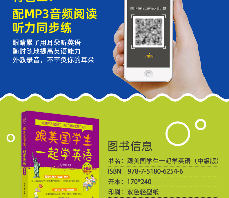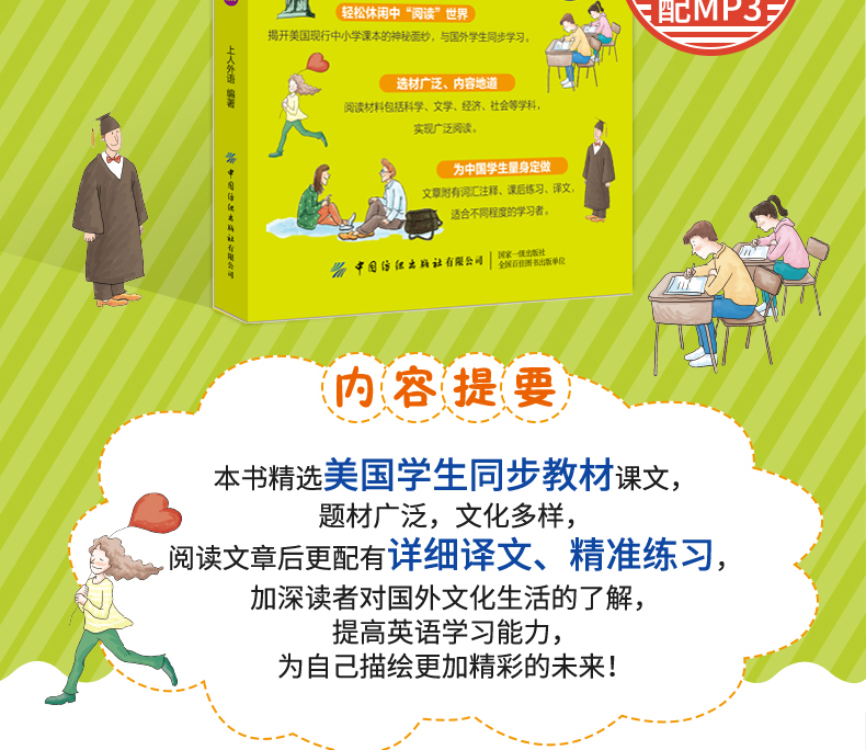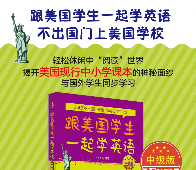2019新书 跟美国学生一起学英语(中级版)(附MP3) 青少年中小学生外语学习教材口语表达单词语法阅读写作 社会自然科学文学文章精选