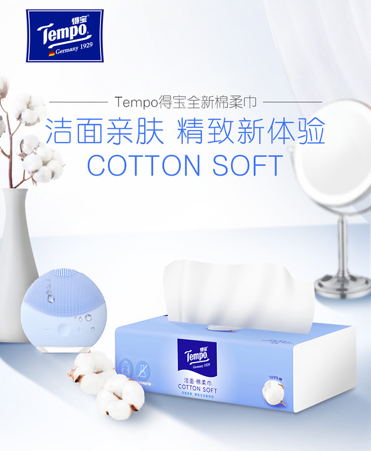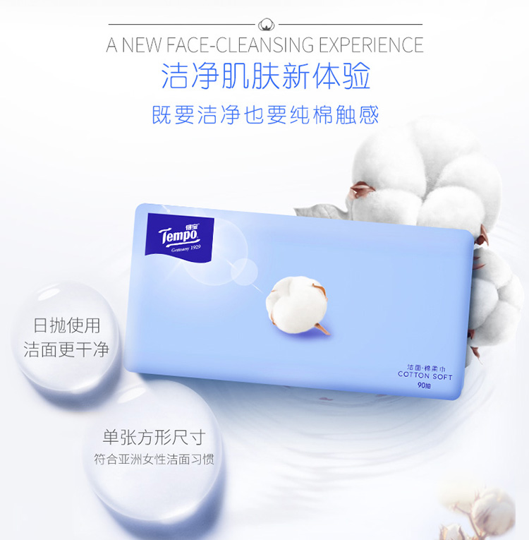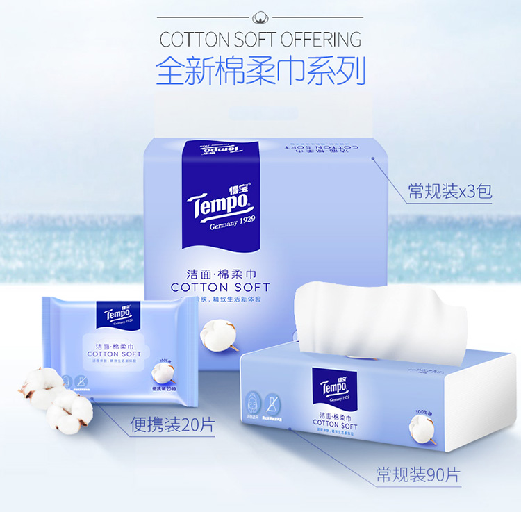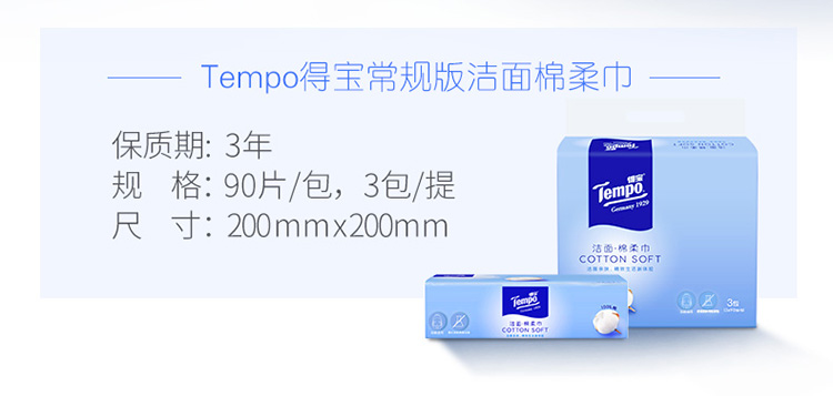 得宝(Tempo) 棉柔巾90片/包x3包 干湿两用巾一次性洗脸巾洁面巾(新旧款随机发)