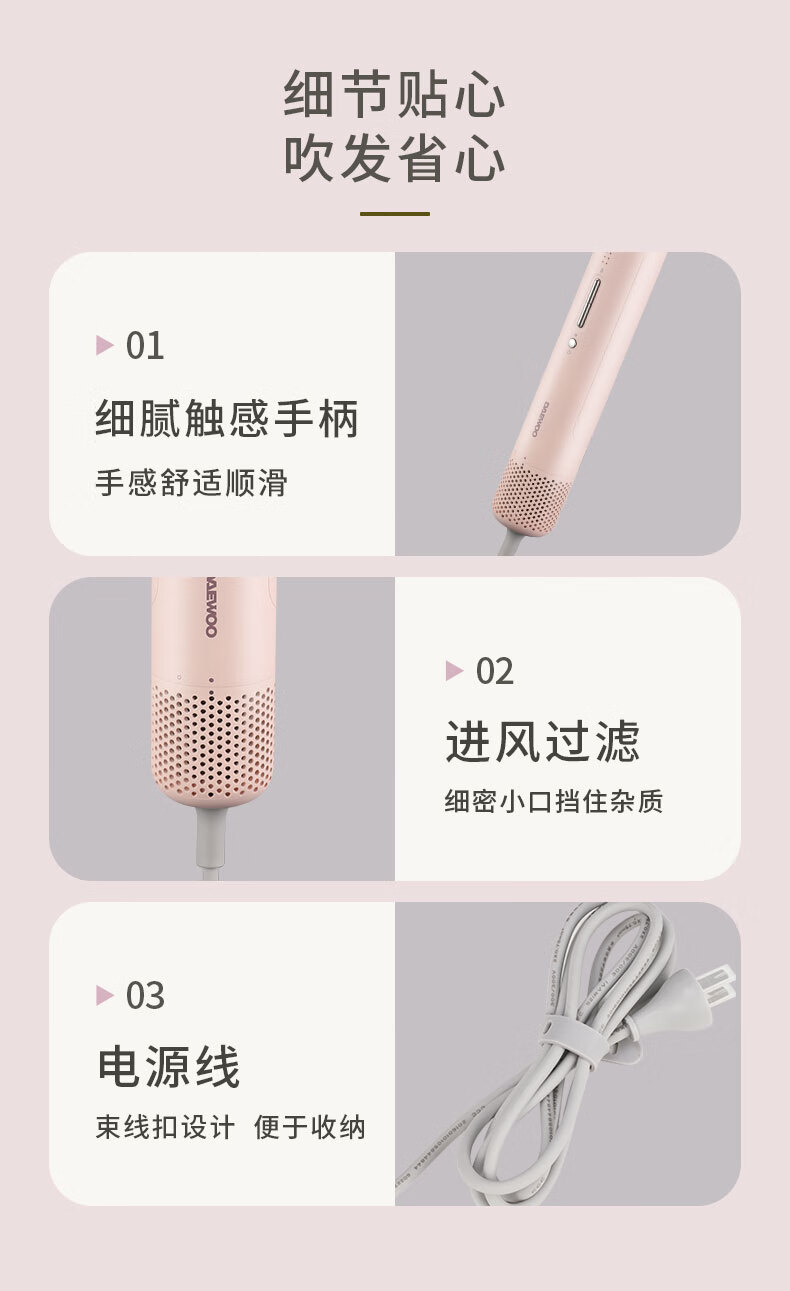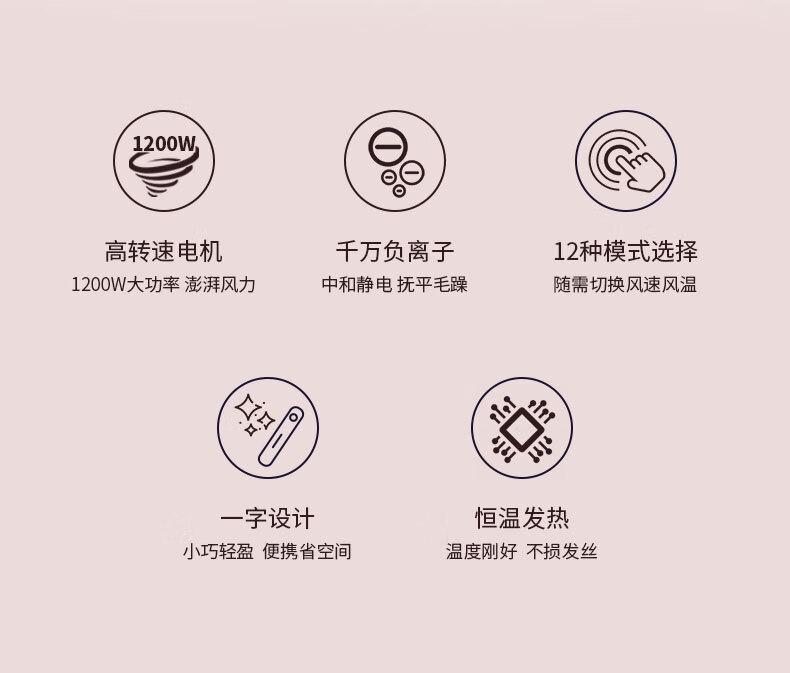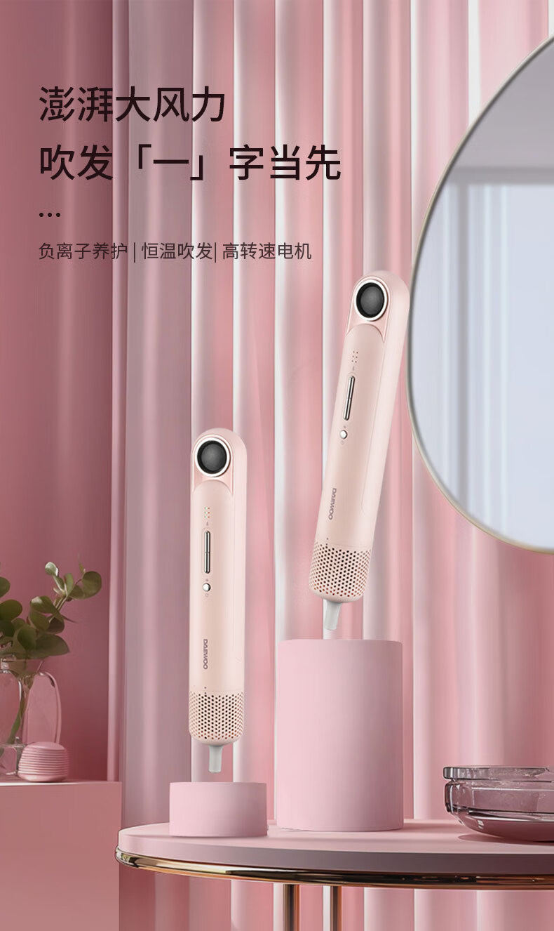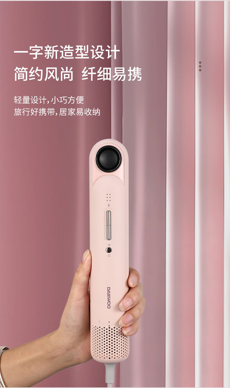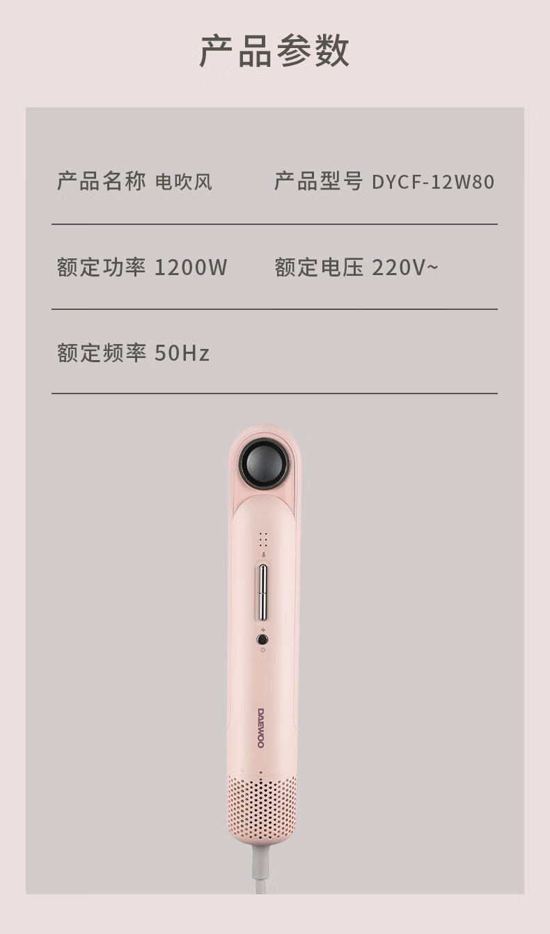 大宇(DAEWOO)电吹风家用旅行速干头发负离子护发迷你便携式吹风筒_DYCF-12W80_香缇粉