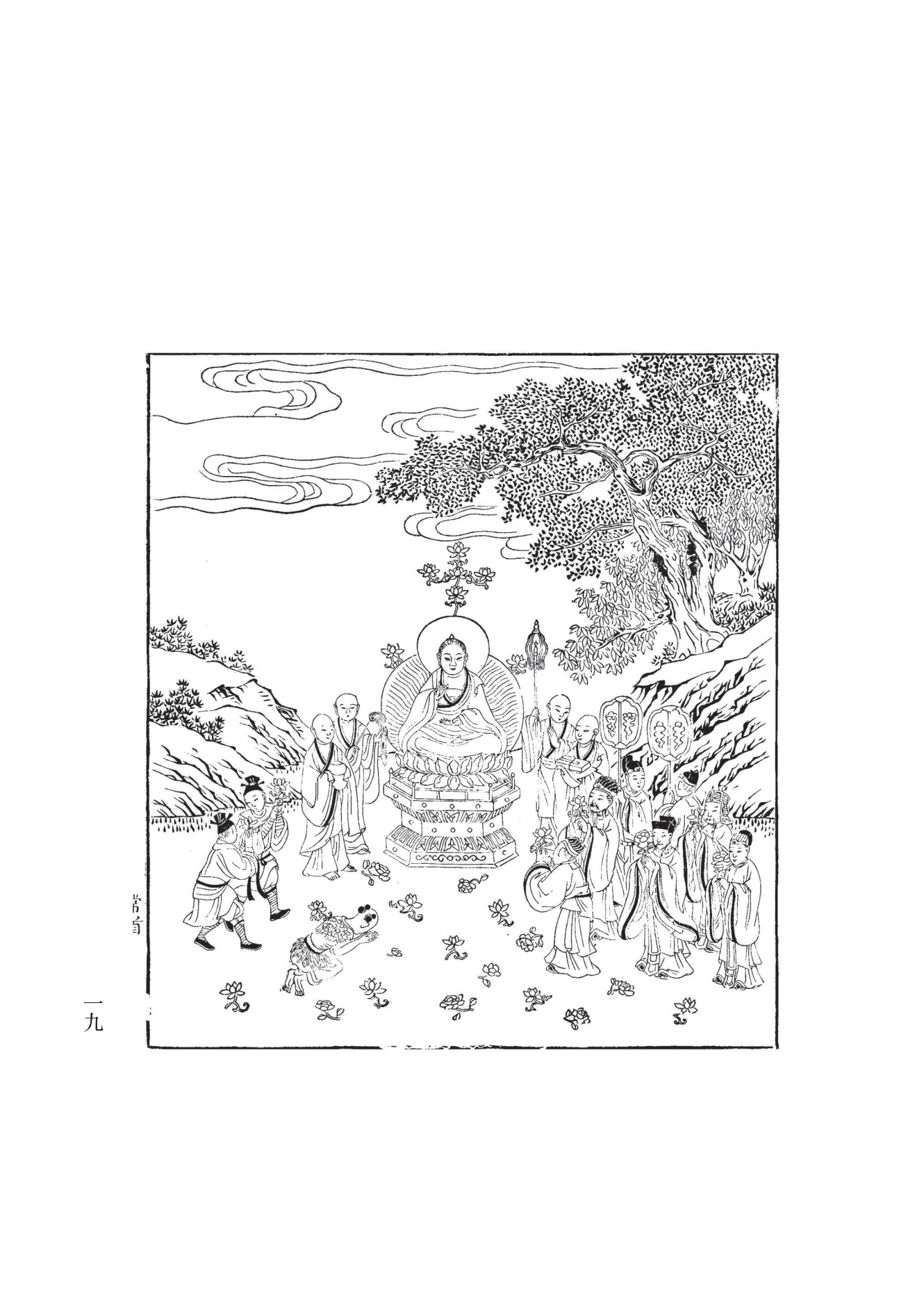 《释迦如来应化事迹》,清镇国公永珊撰绘。清嘉庆十三年(1808)和硕豫亲王裕丰刊,同治年间印本。半页图,半页文。白口,四周单边。