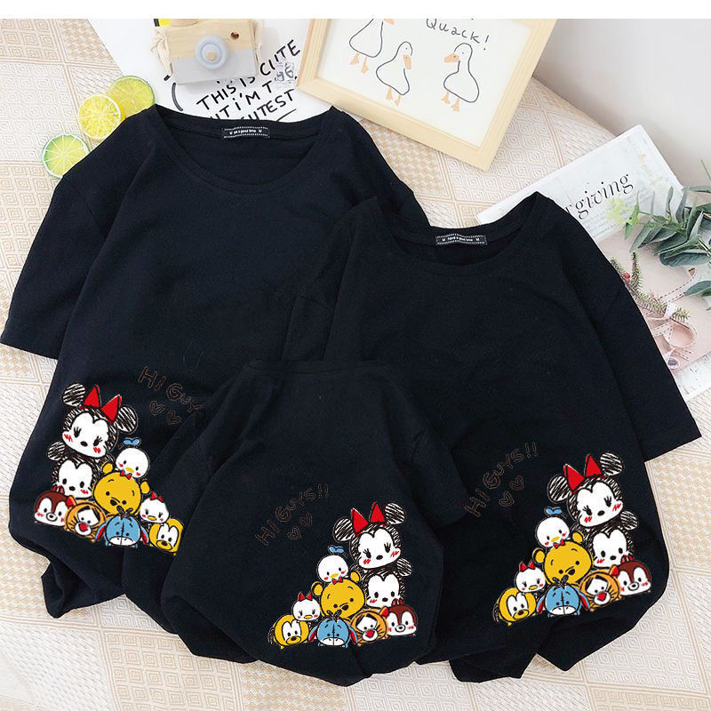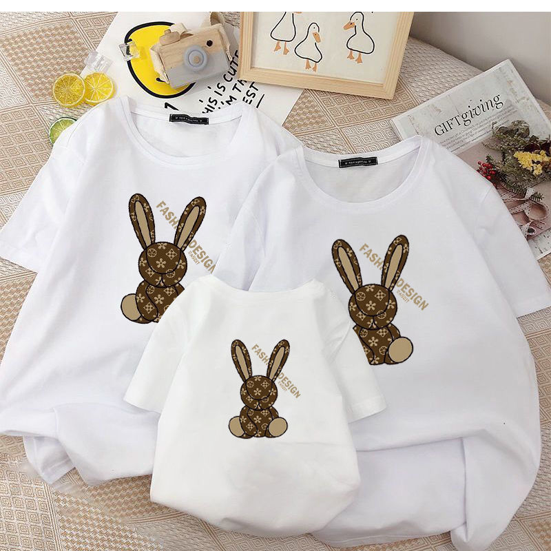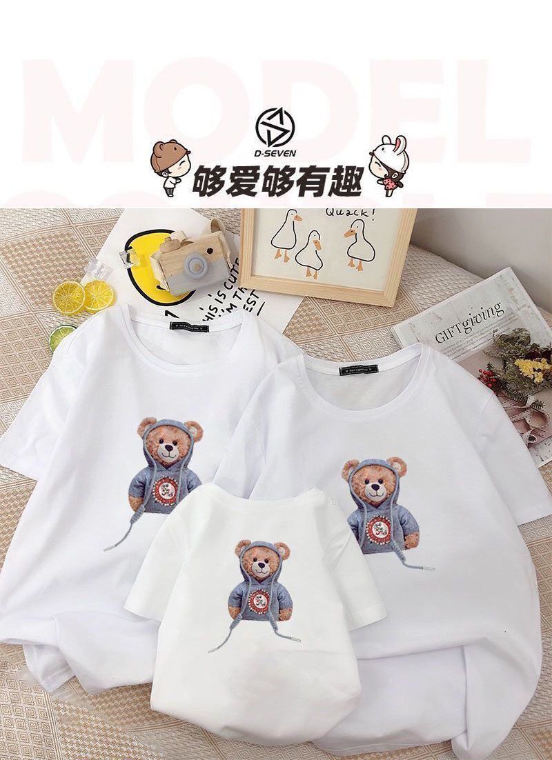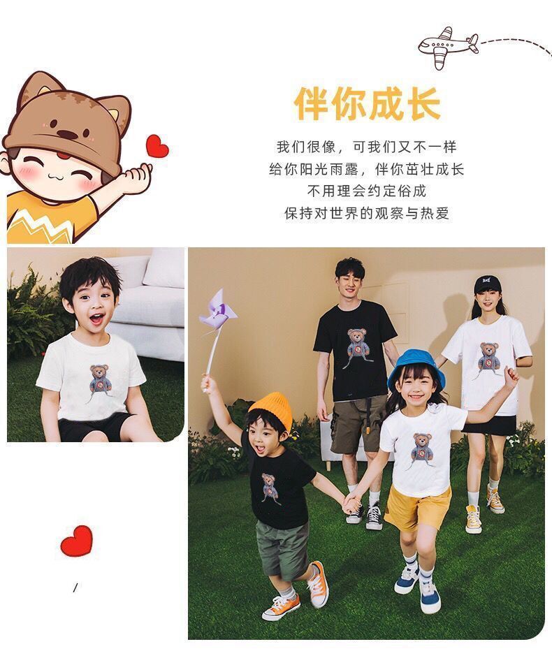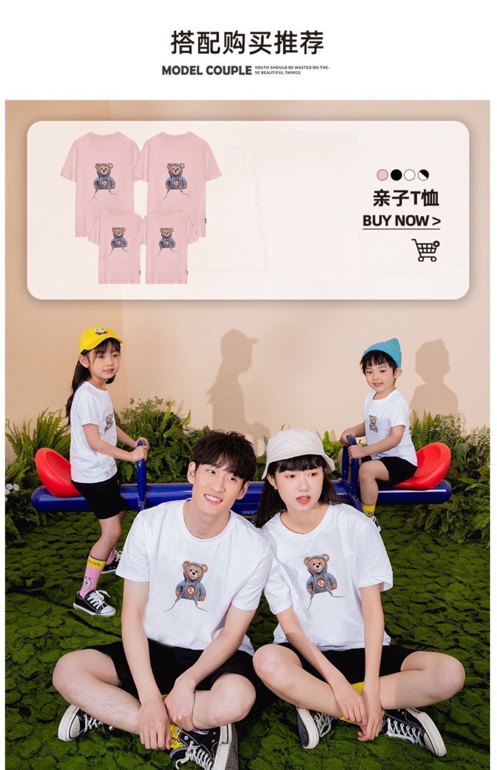 黛唯梵100%纯棉亲子装一家三口四口夏季卡通圆领母女装全家装洋气t恤潮国庆清明出游