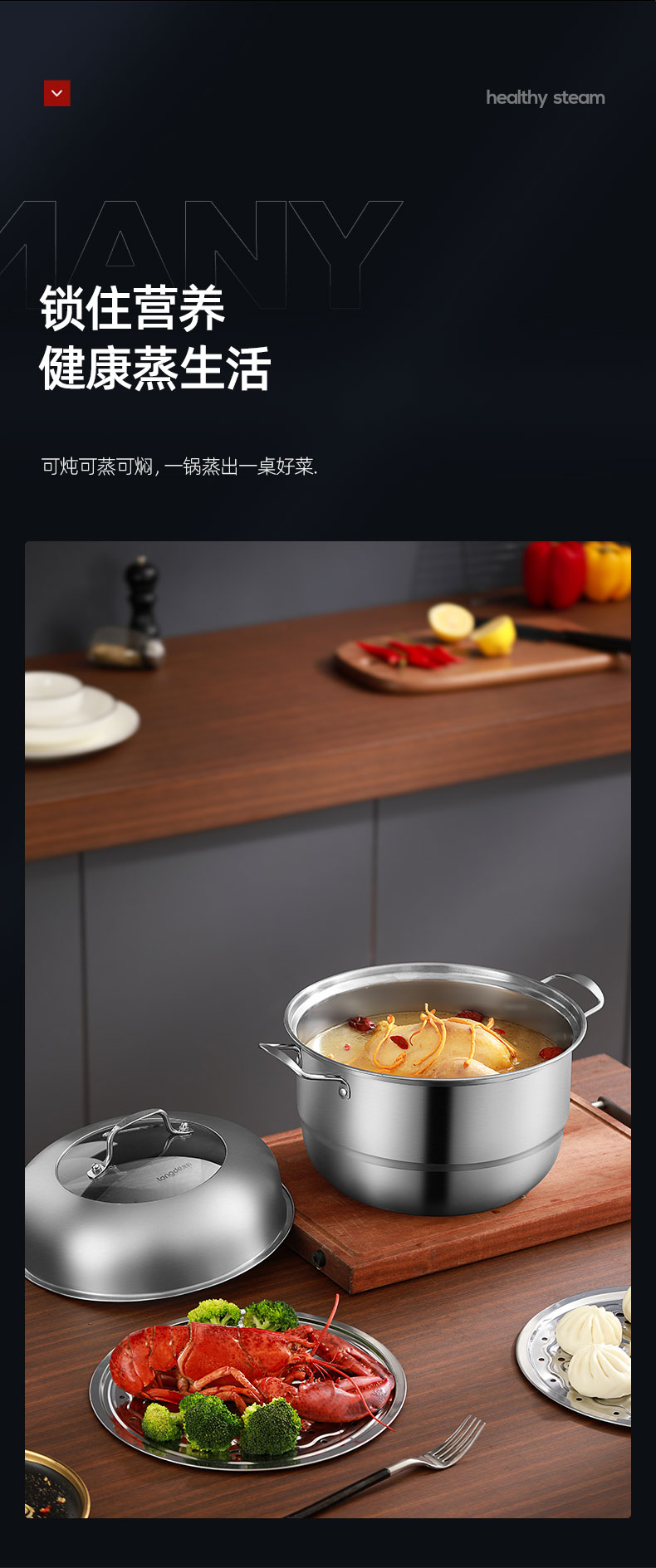 【悦享系列】龙的(longde)双层不锈钢蒸锅家用蒸包子蒸笼锅汤锅 LD-TG133