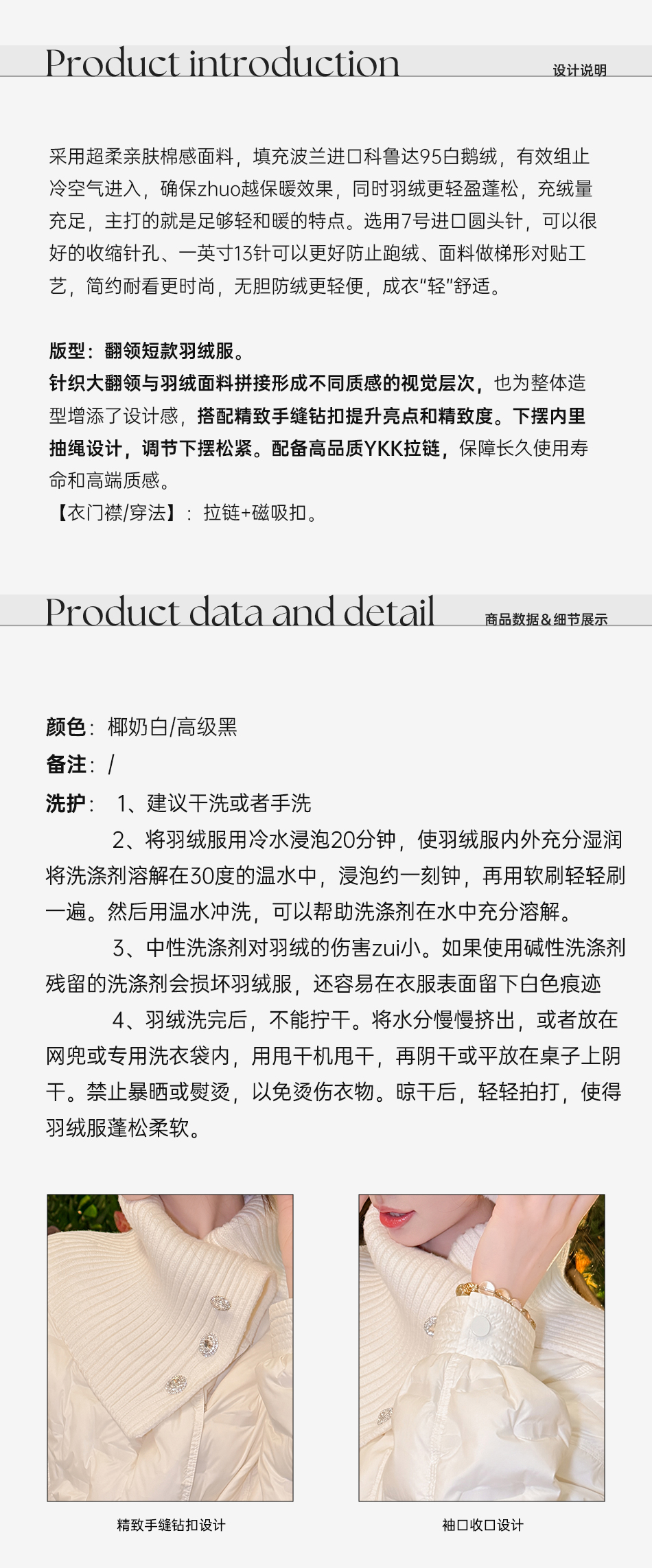 【孤品样衣,不退不换】【冬日白月光】高定进口科鲁达95白鹅绒保暖防风羽绒服秋冬款