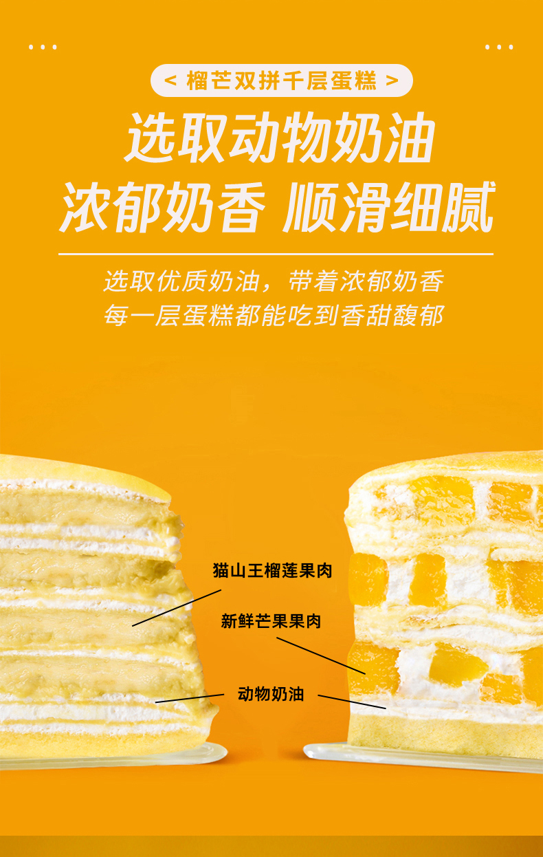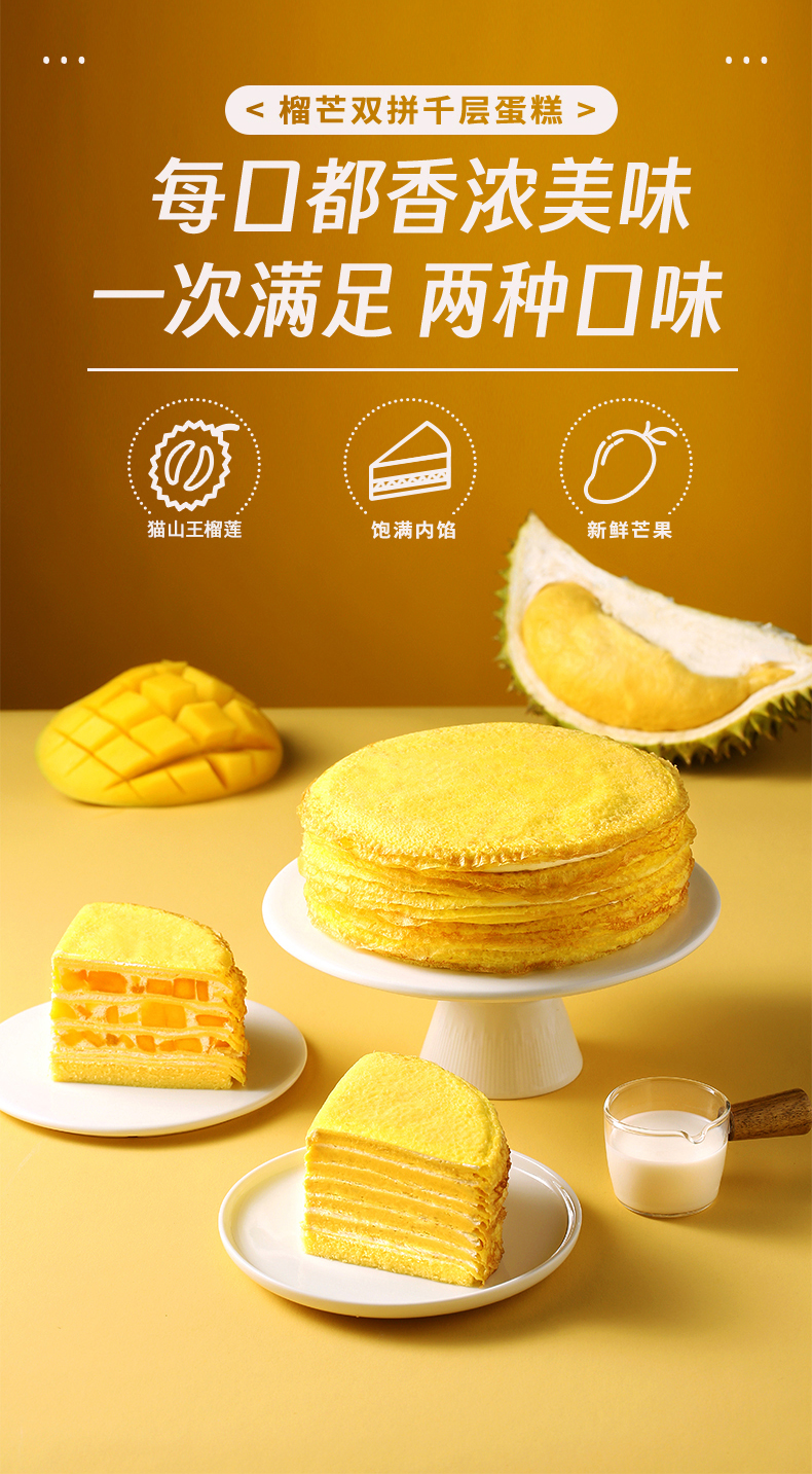 【双拼口味更满足!】猫山王榴芒千层双拼(800g)