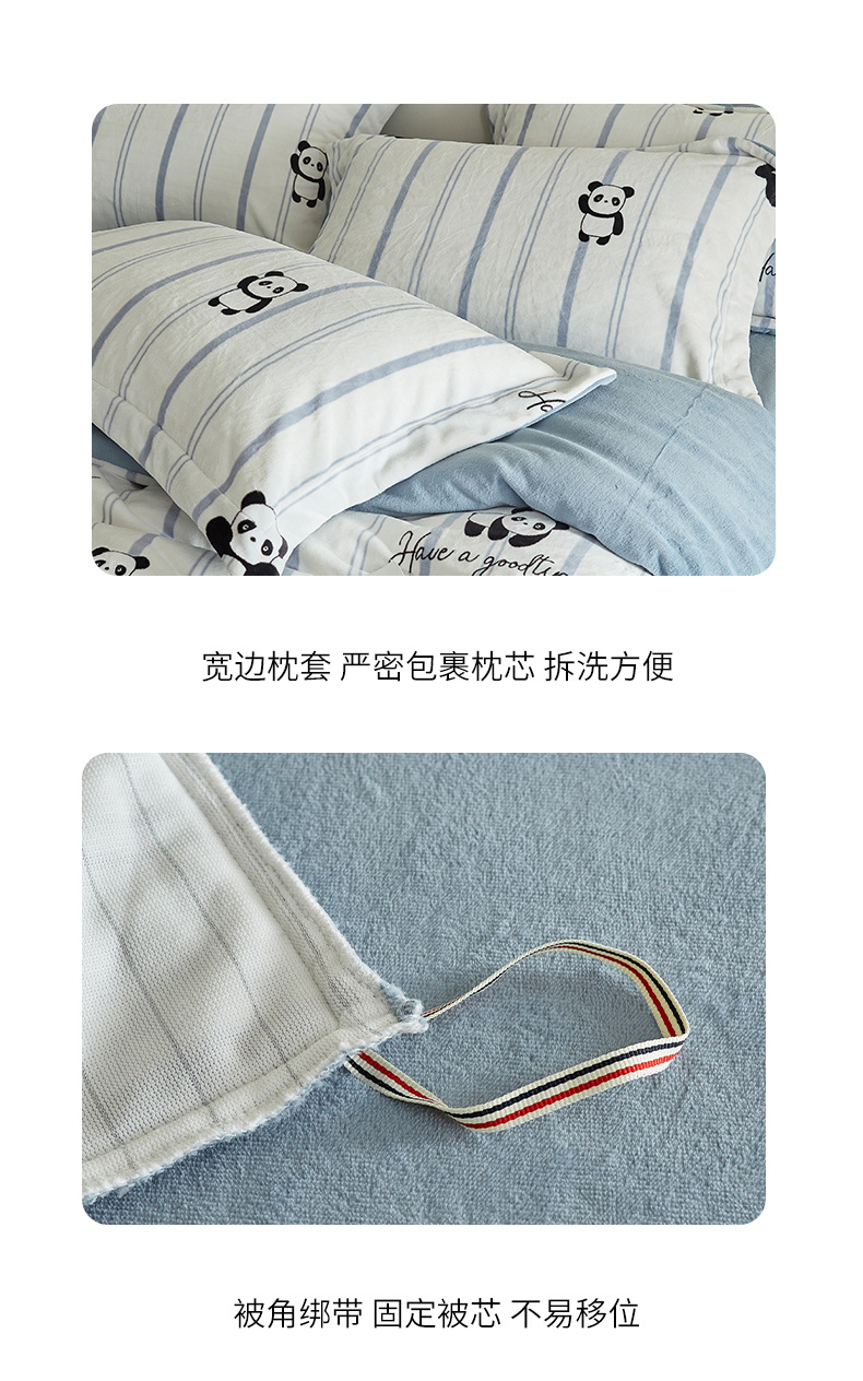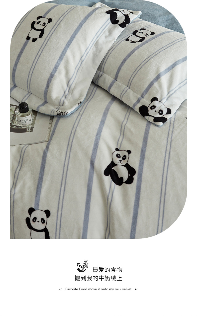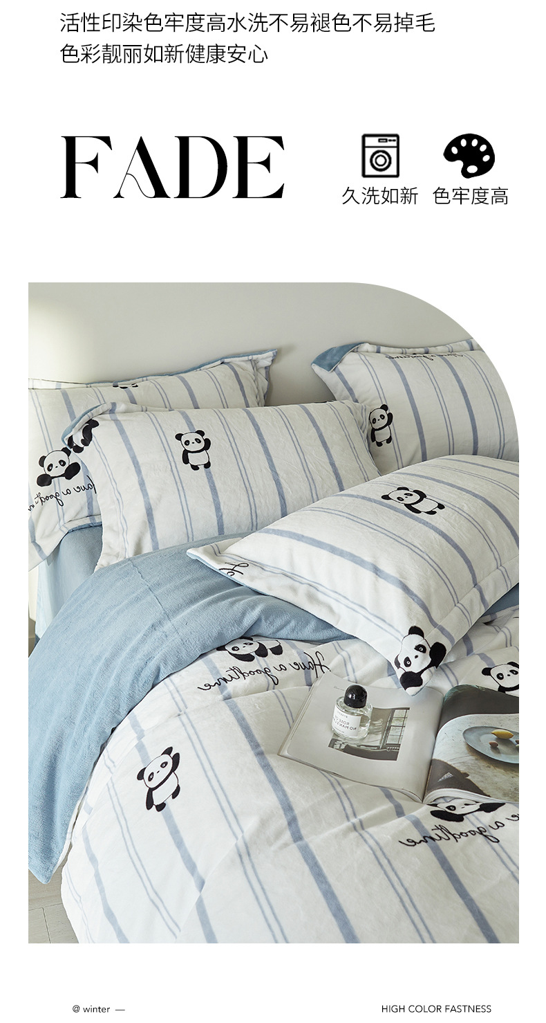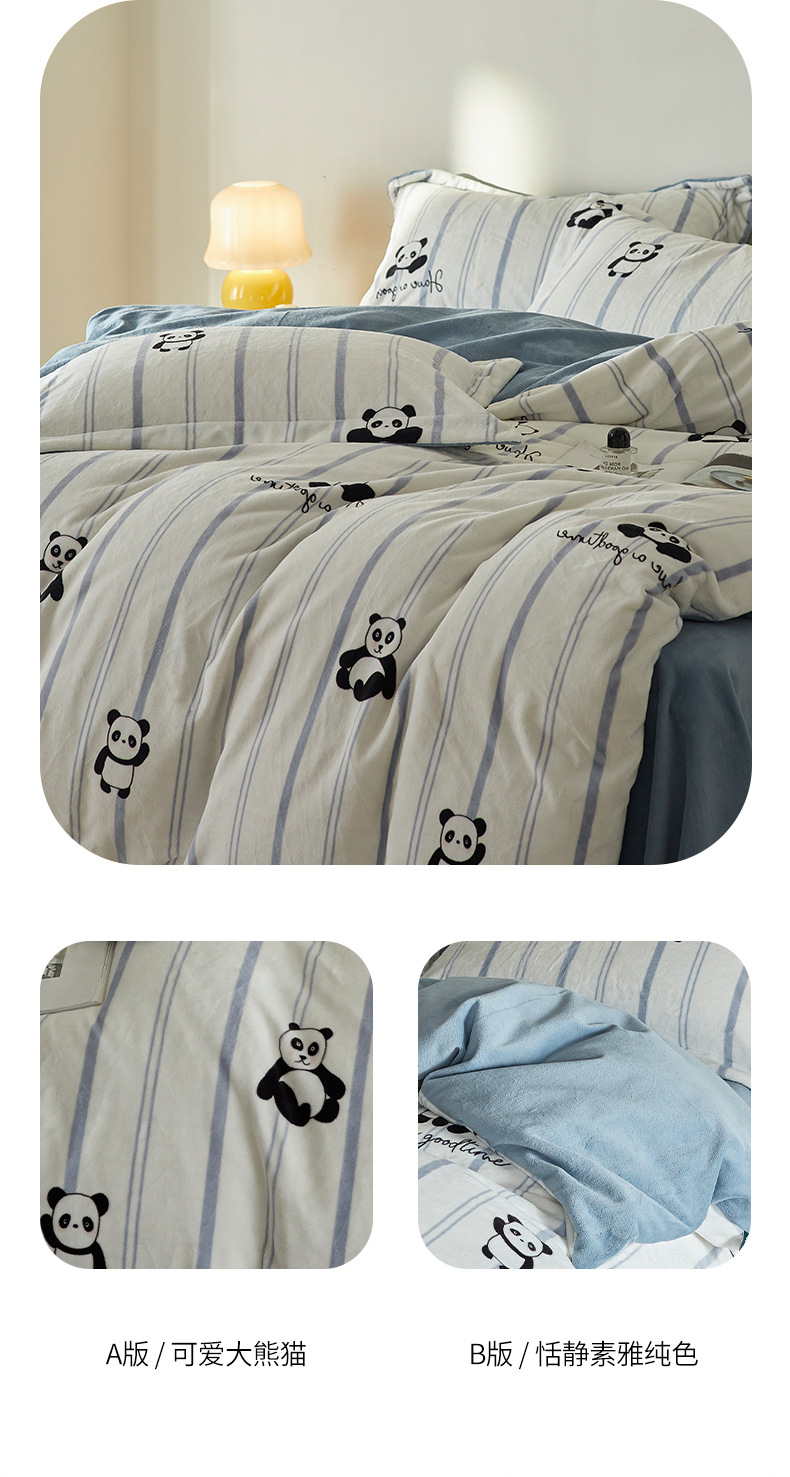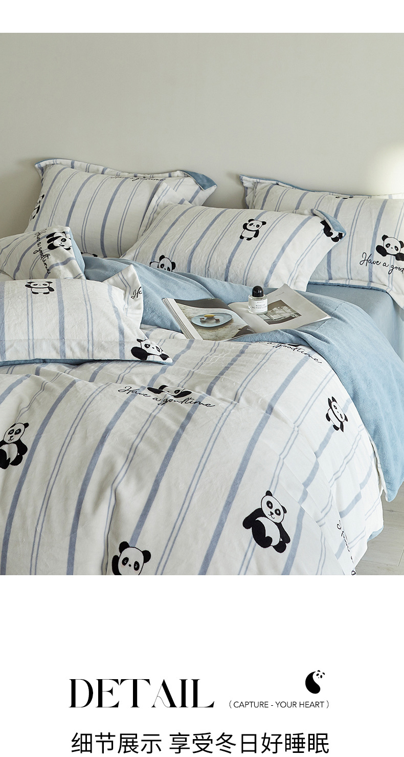 A类【国风熊猫床上四件套】锦芙绒牛奶绒 加厚保暖 冬季珊瑚绒床单被套