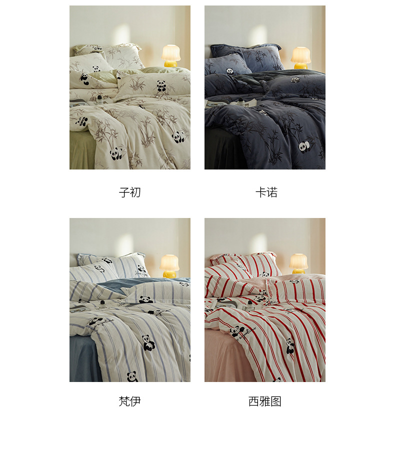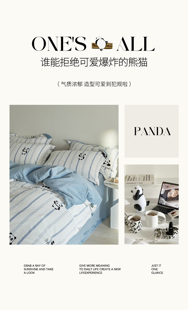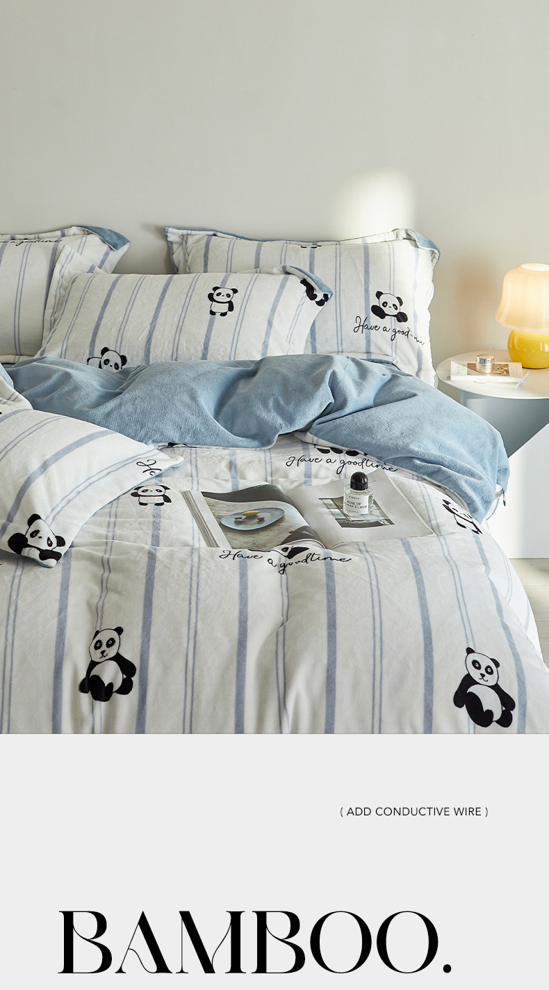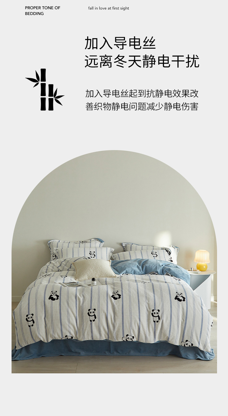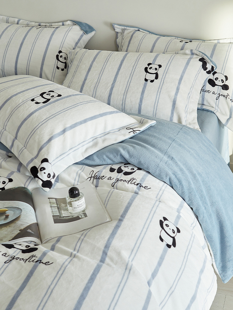 A类【国风熊猫床上四件套】锦芙绒牛奶绒 加厚保暖 冬季珊瑚绒床单被套