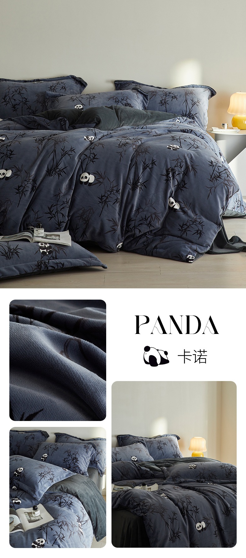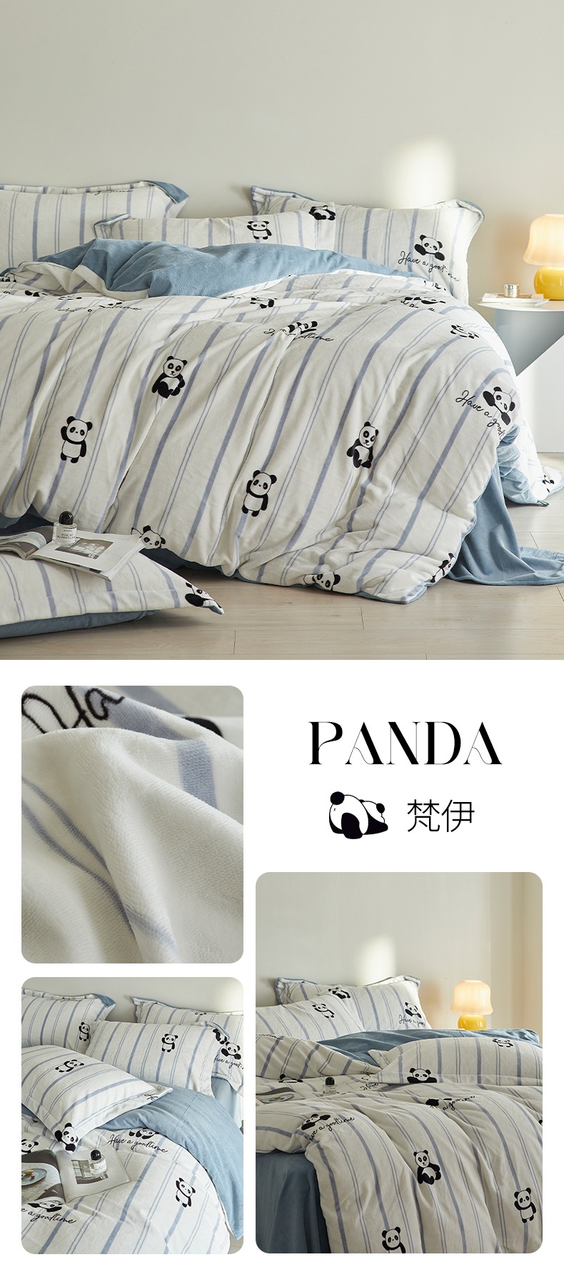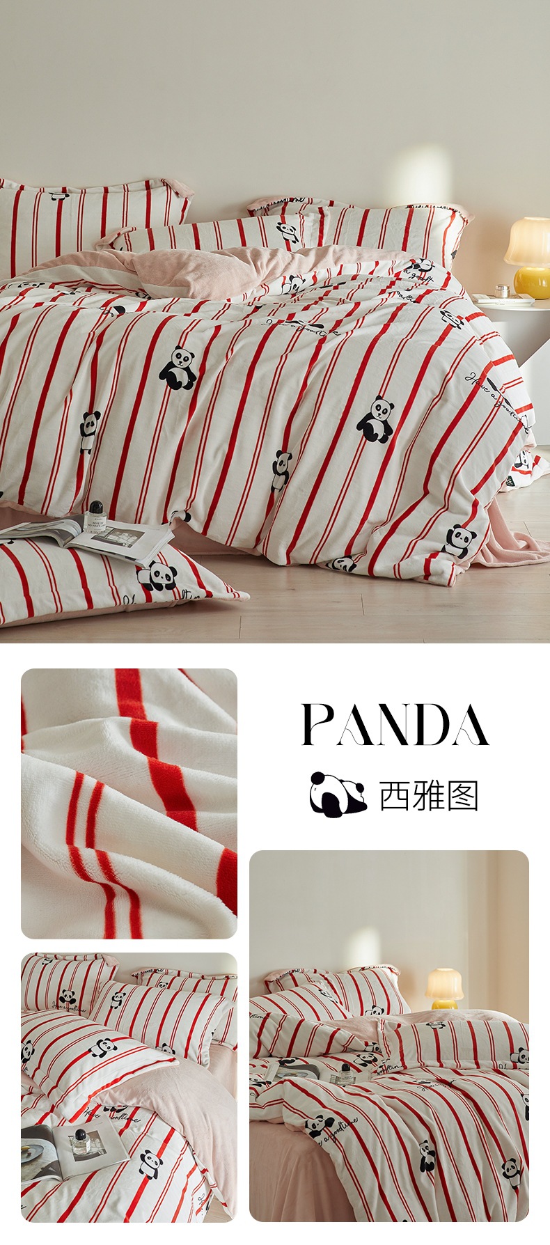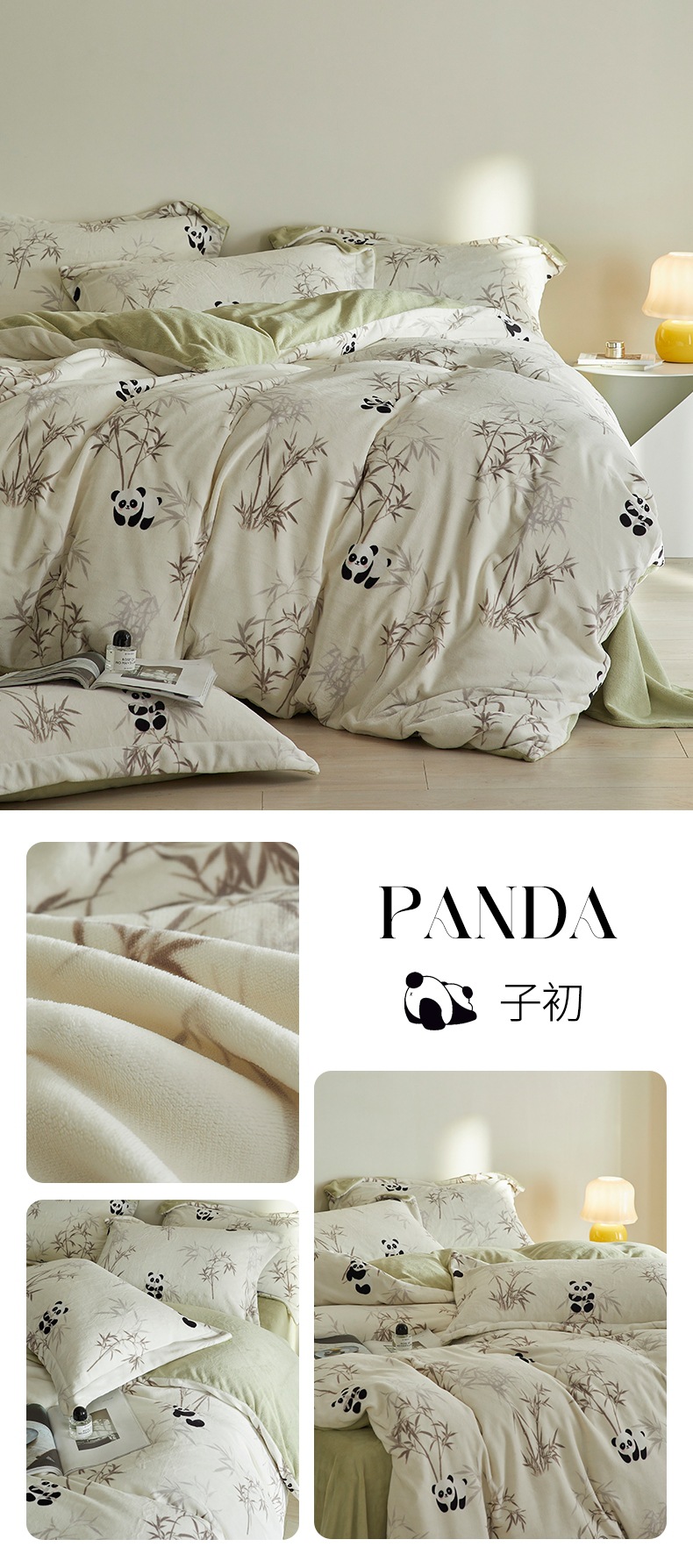 A类【国风熊猫床上四件套】锦芙绒牛奶绒 加厚保暖 冬季珊瑚绒床单被套