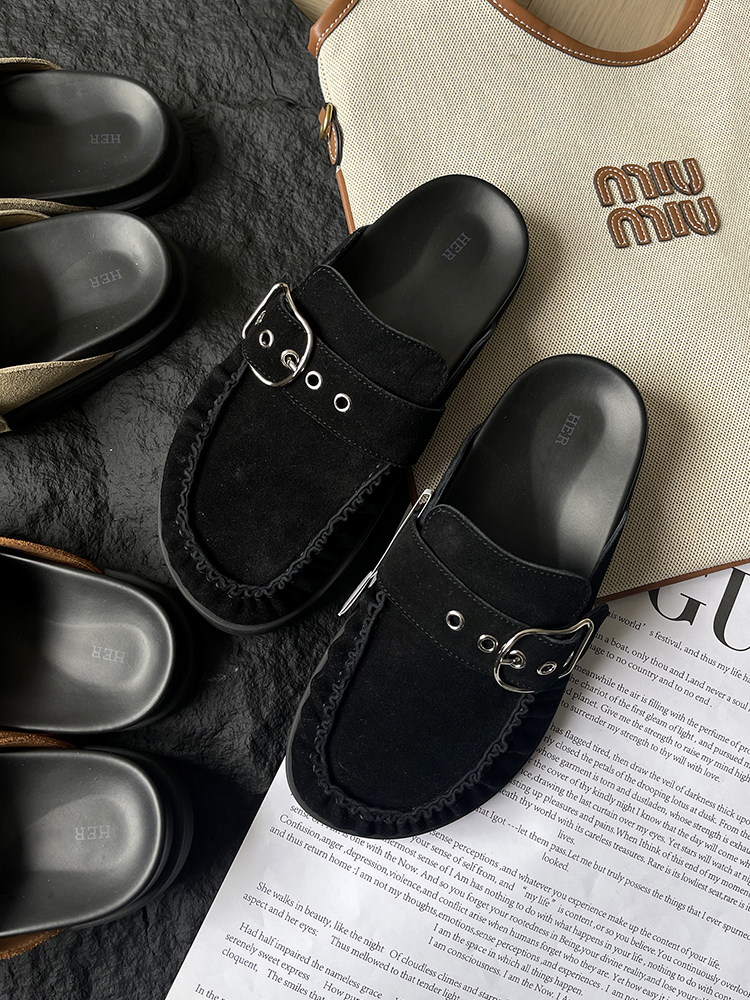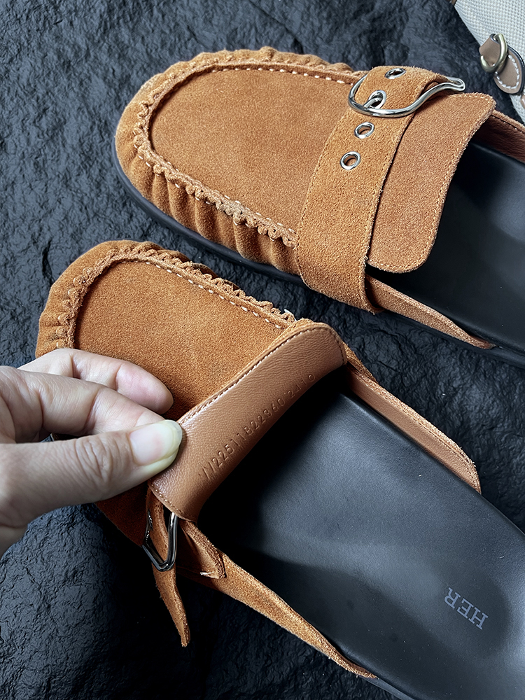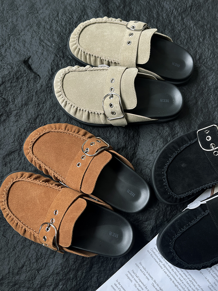 现货THS-限时 爱马家 新款呆萌穆勒半拖 羊反绒勃肯鞋 3色 BZ1237