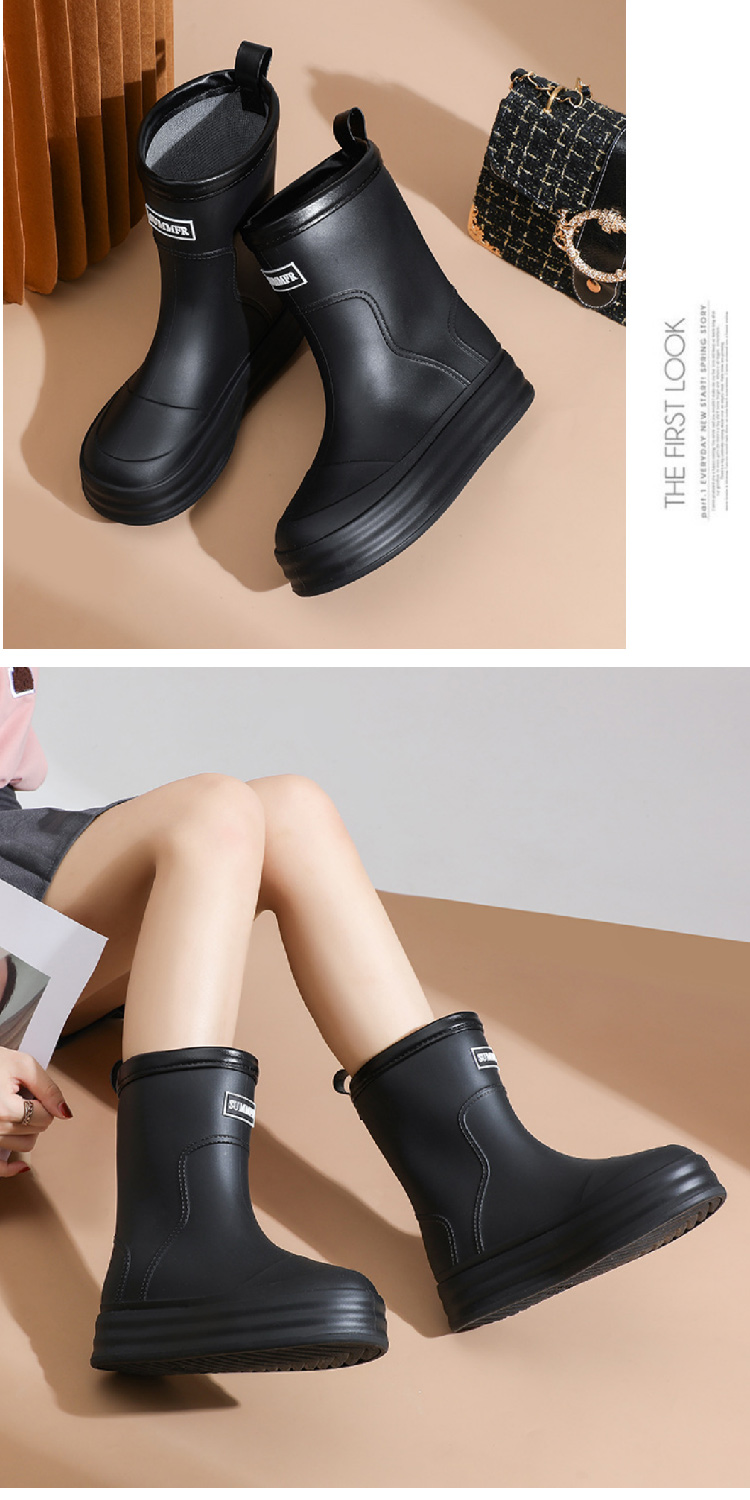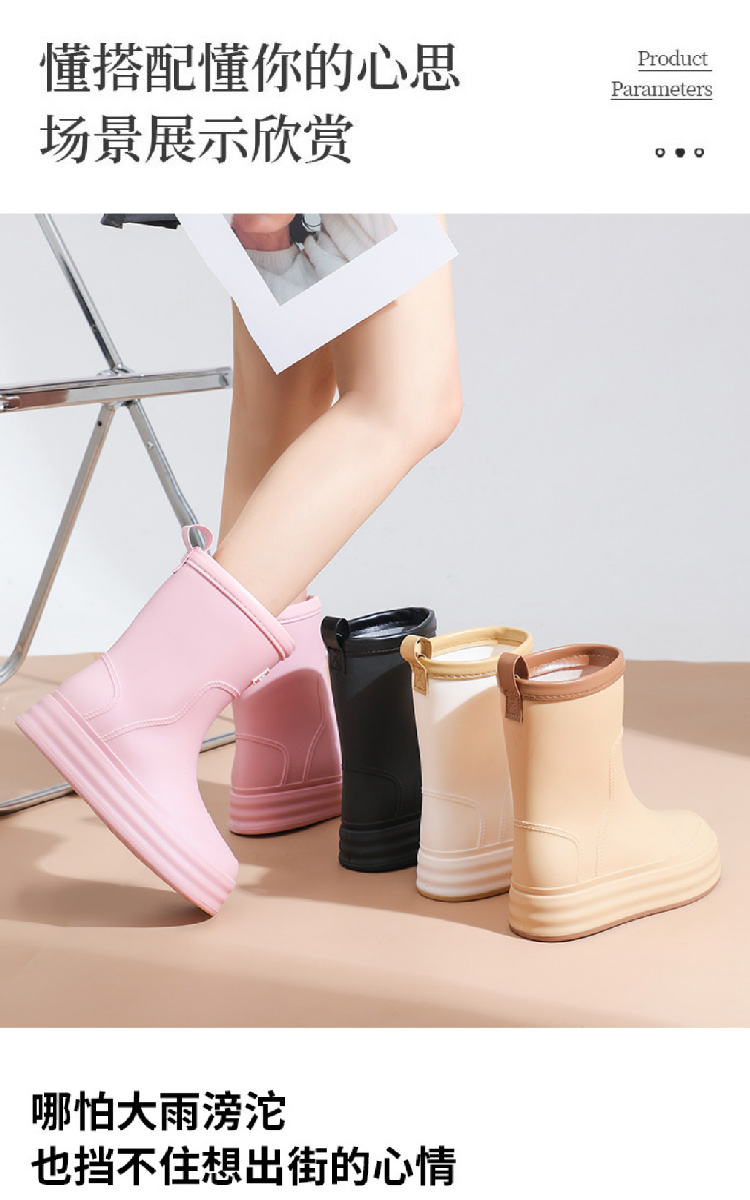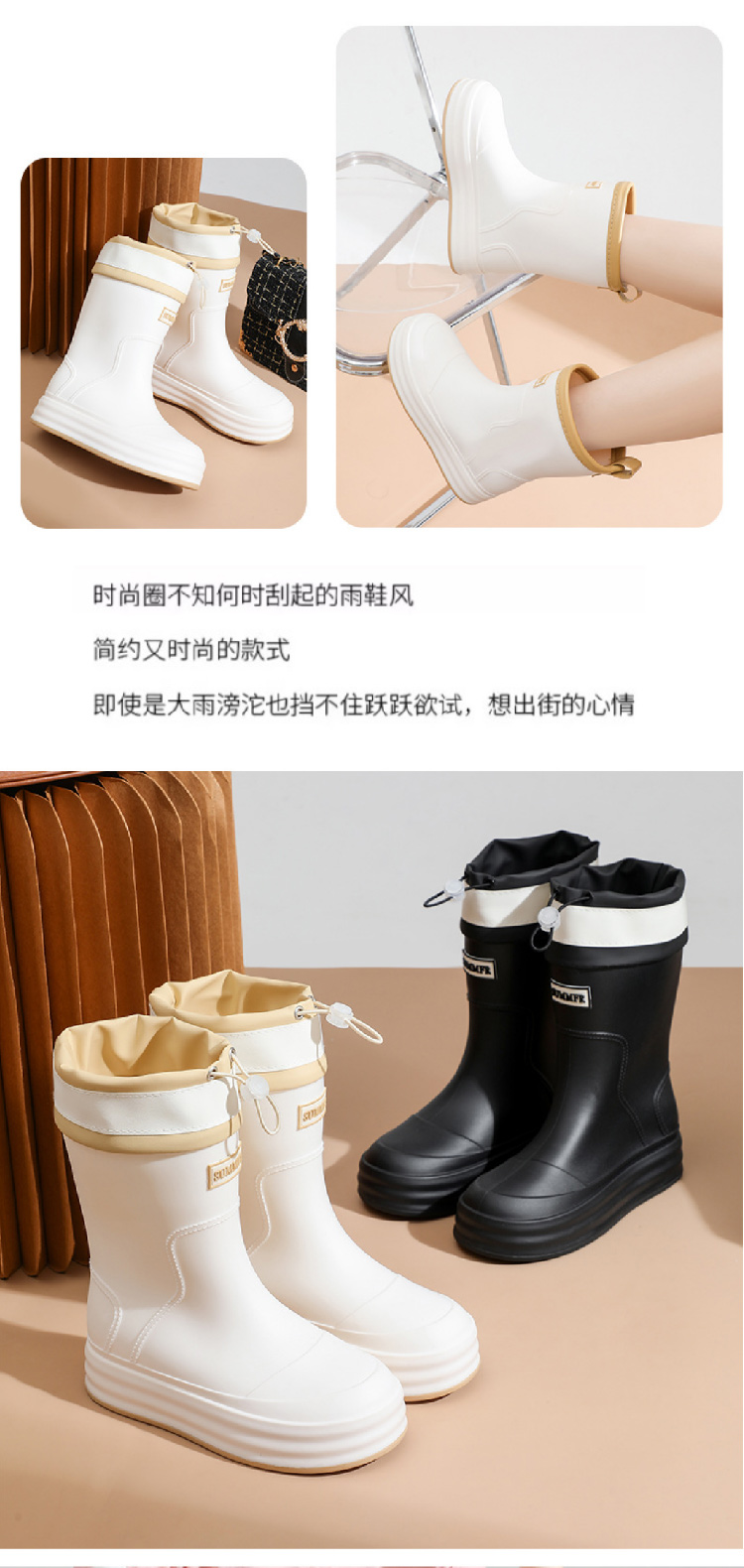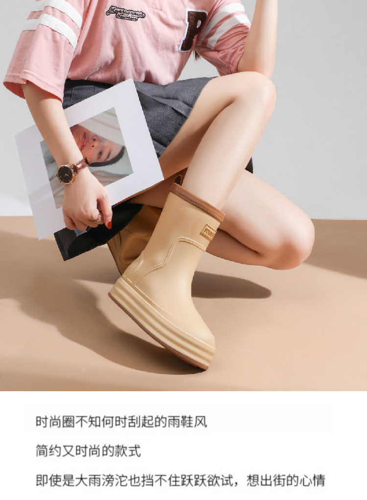 新款中筒防水防滑水鞋加绒时尚外穿雨天雨靴软底胶鞋