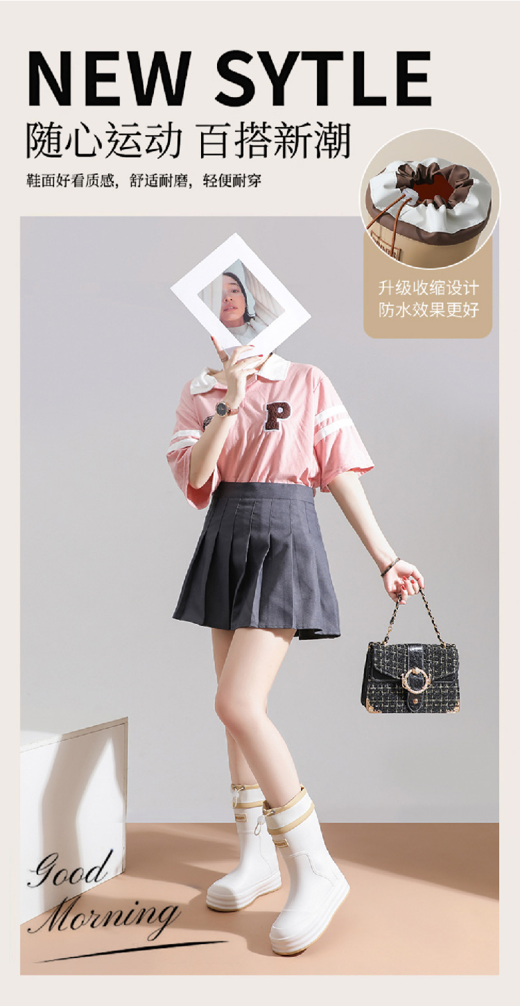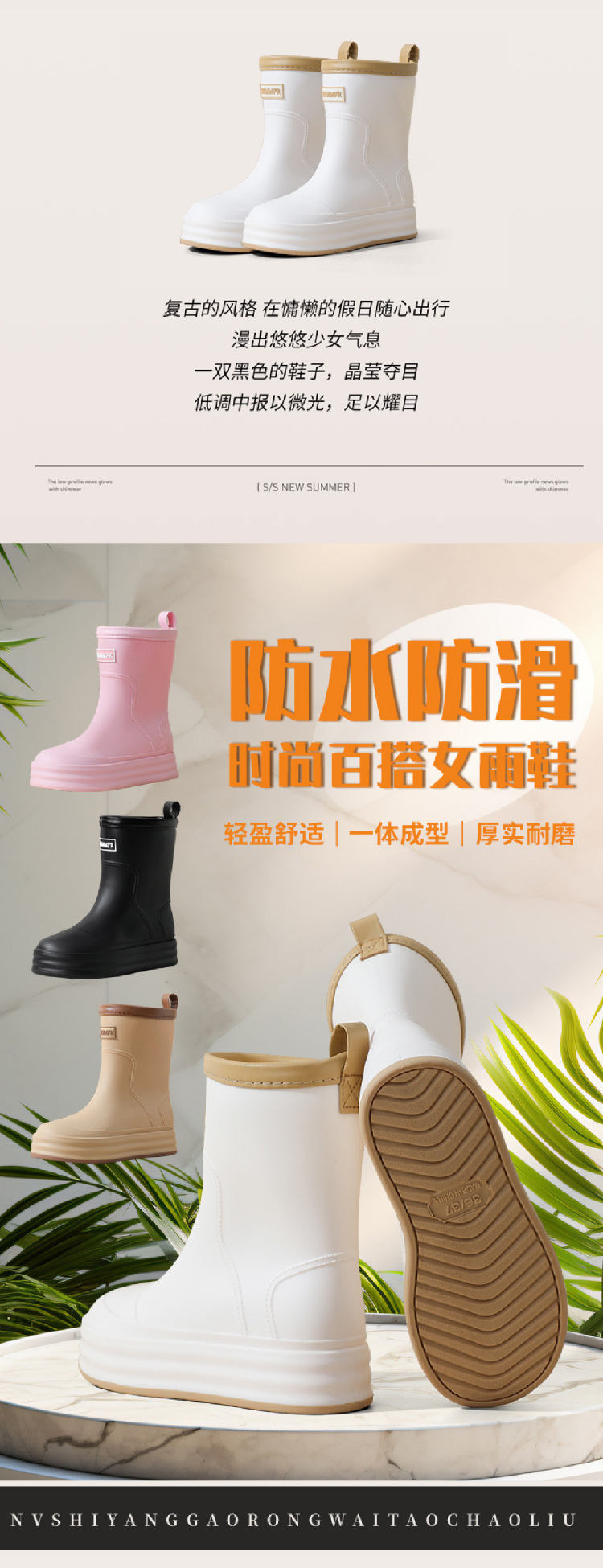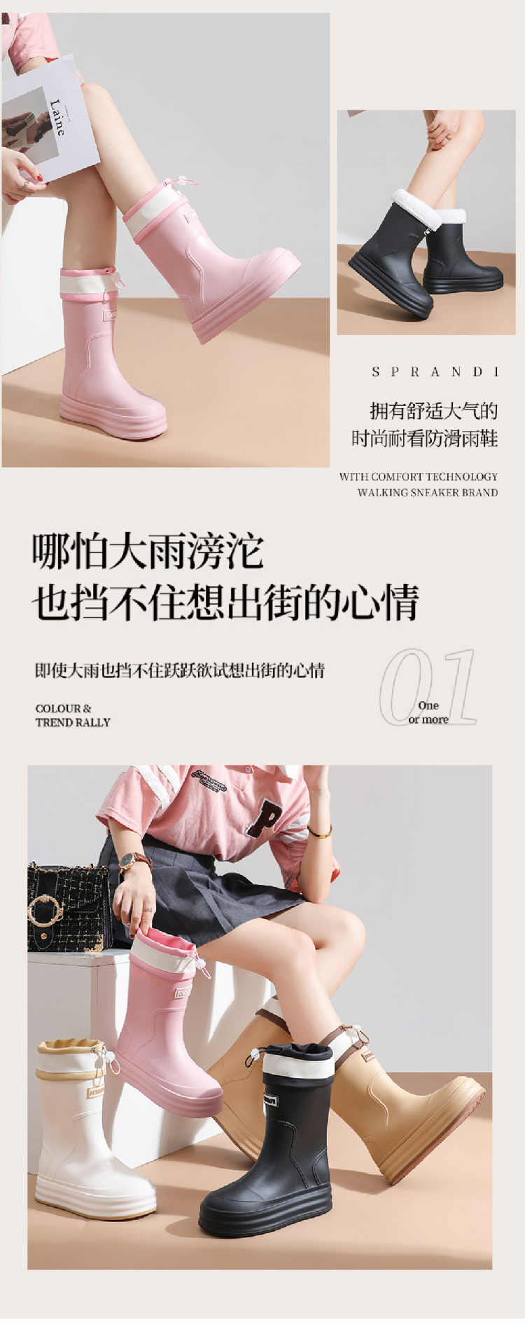 新款中筒防水防滑水鞋加绒时尚外穿雨天雨靴软底胶鞋