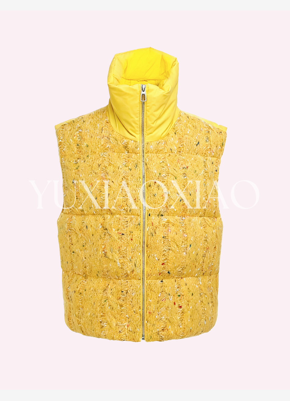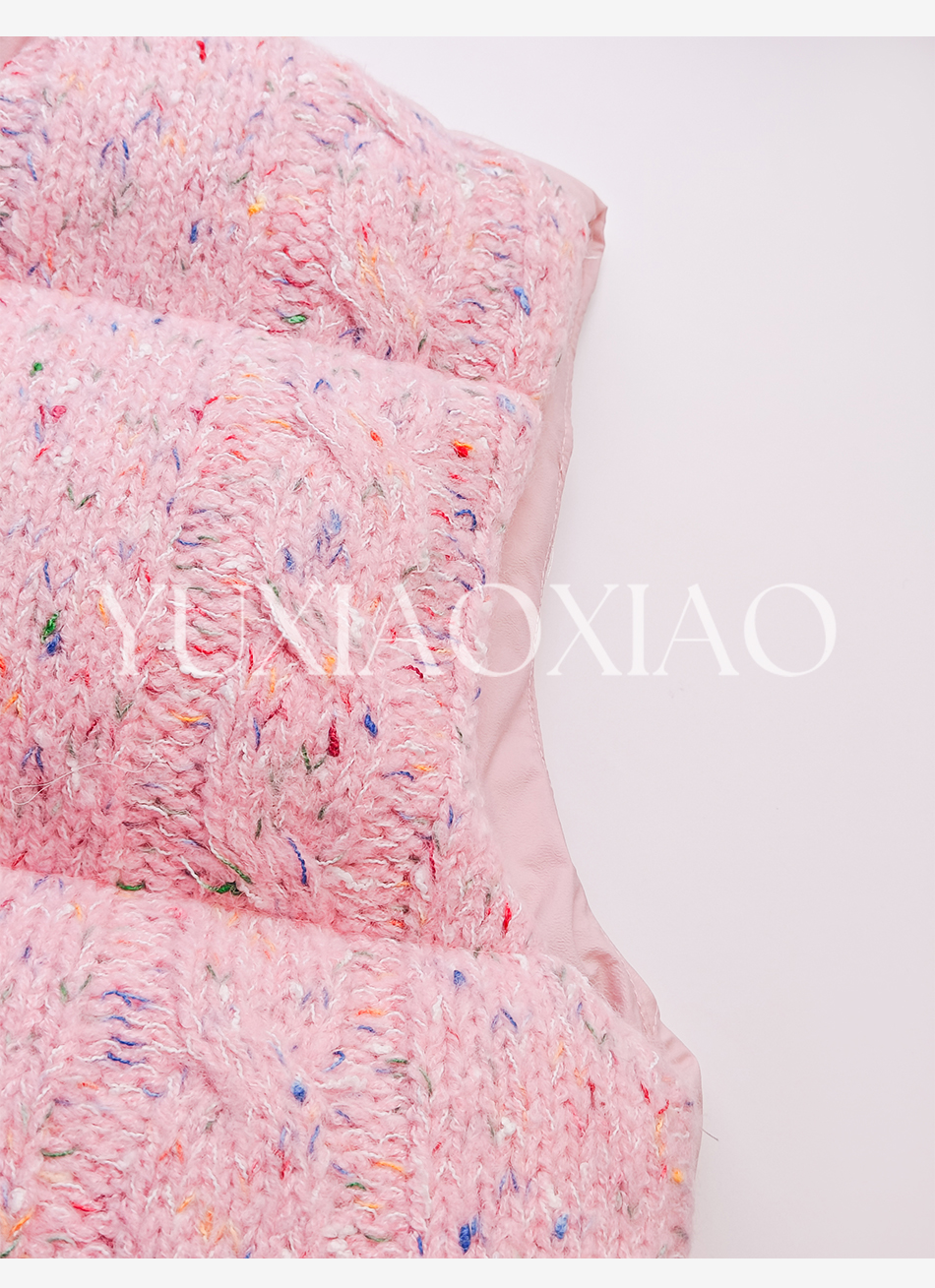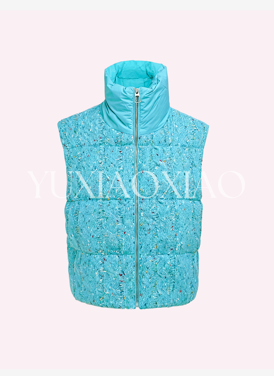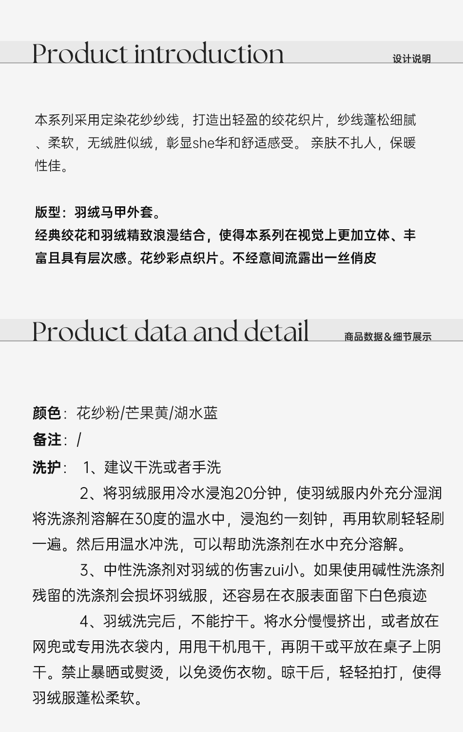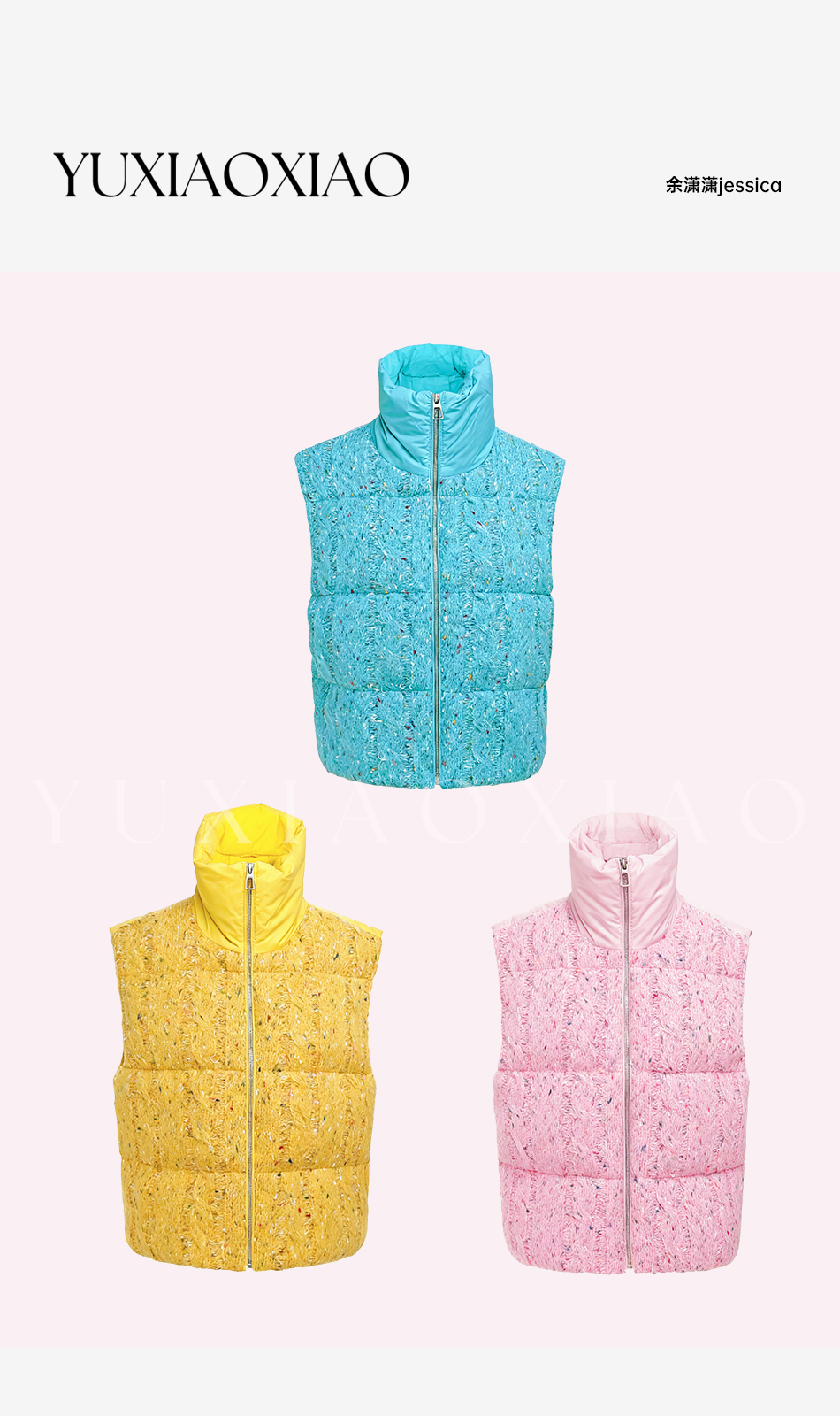 余潇潇【冬日调色盘】时尚90白鸭绒定染花纱纱线织片羽绒马甲外套