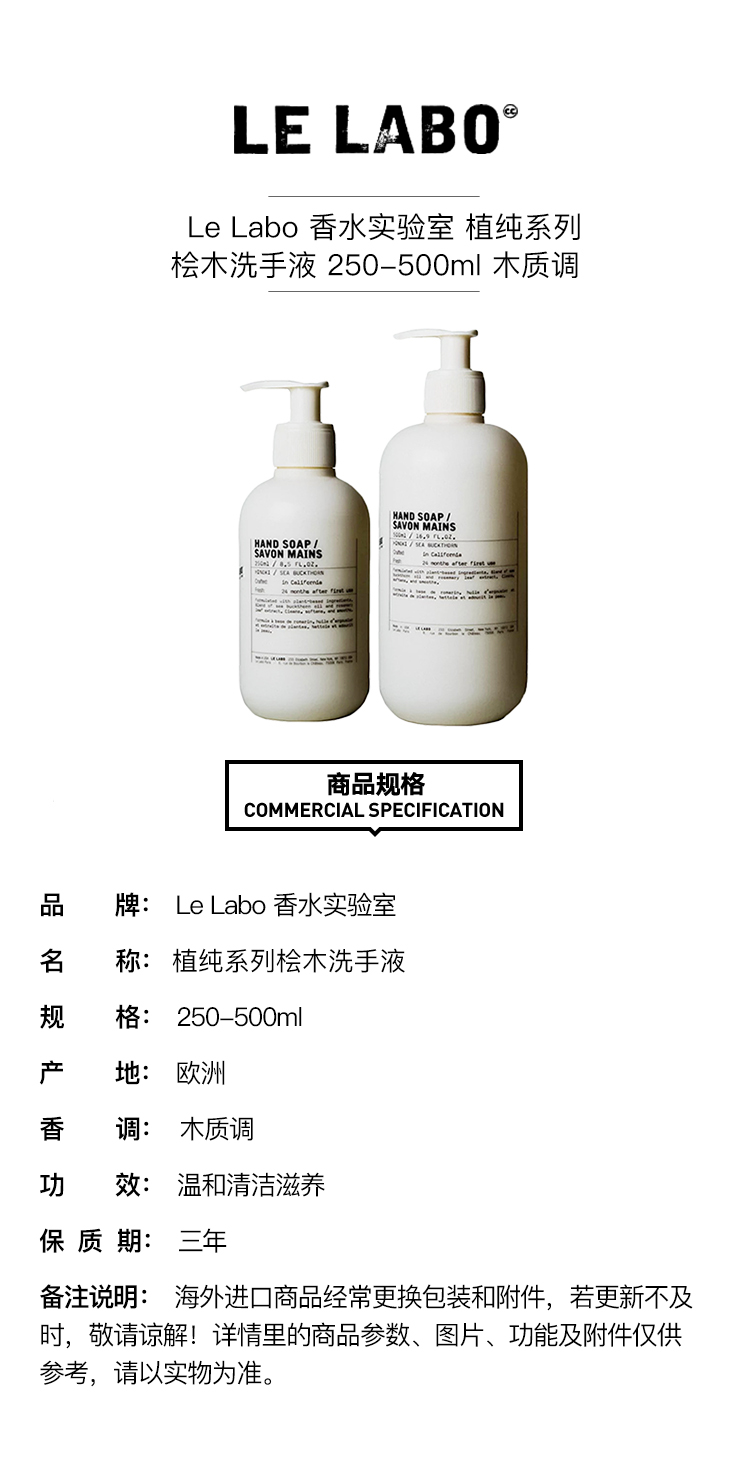 LE LABO/勒拉博香水实验室 植纯系列HINOKI-桧木洗手液500ml 温和清洁滋养