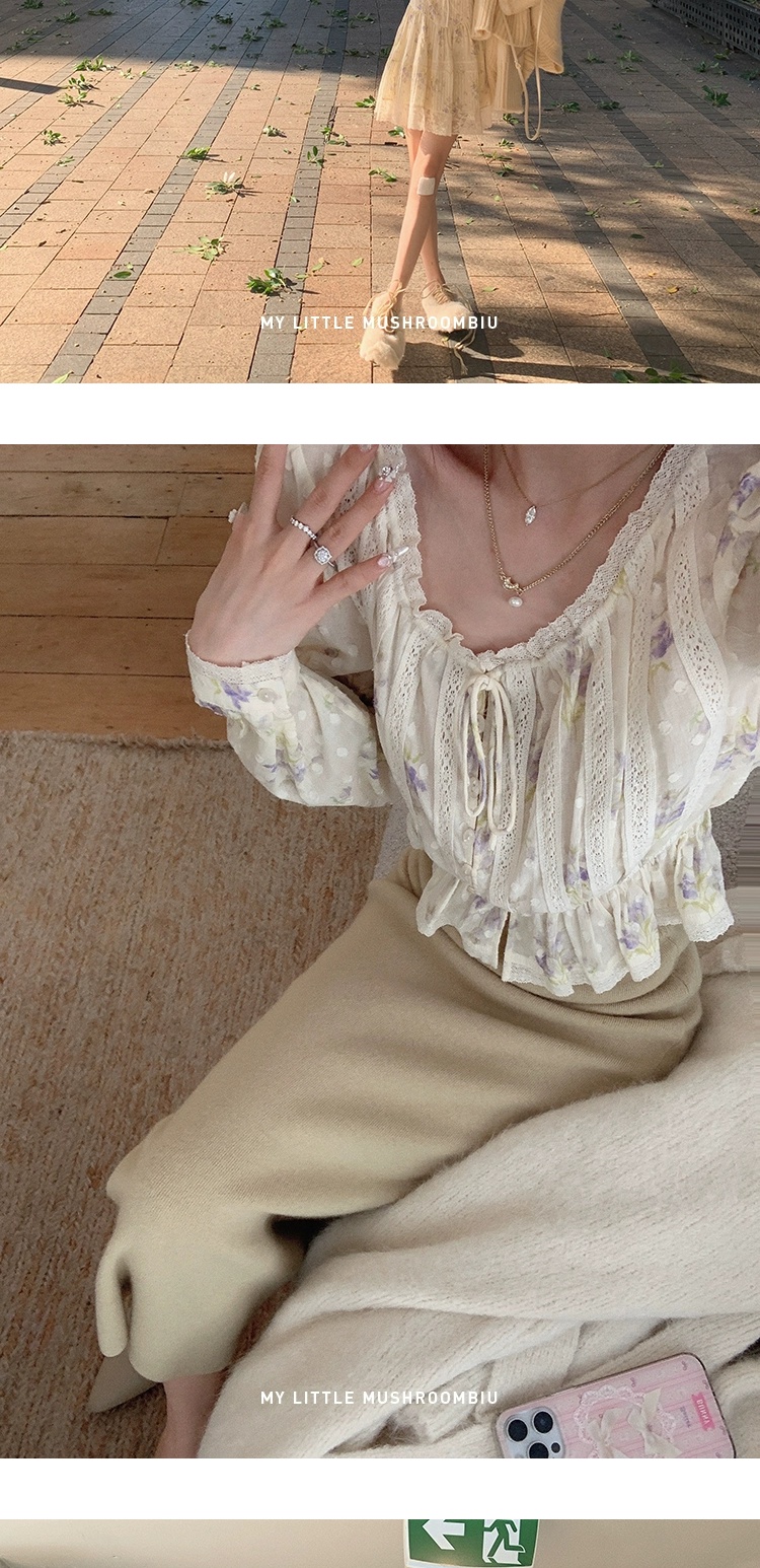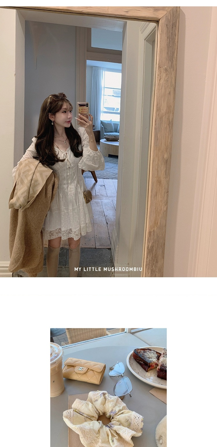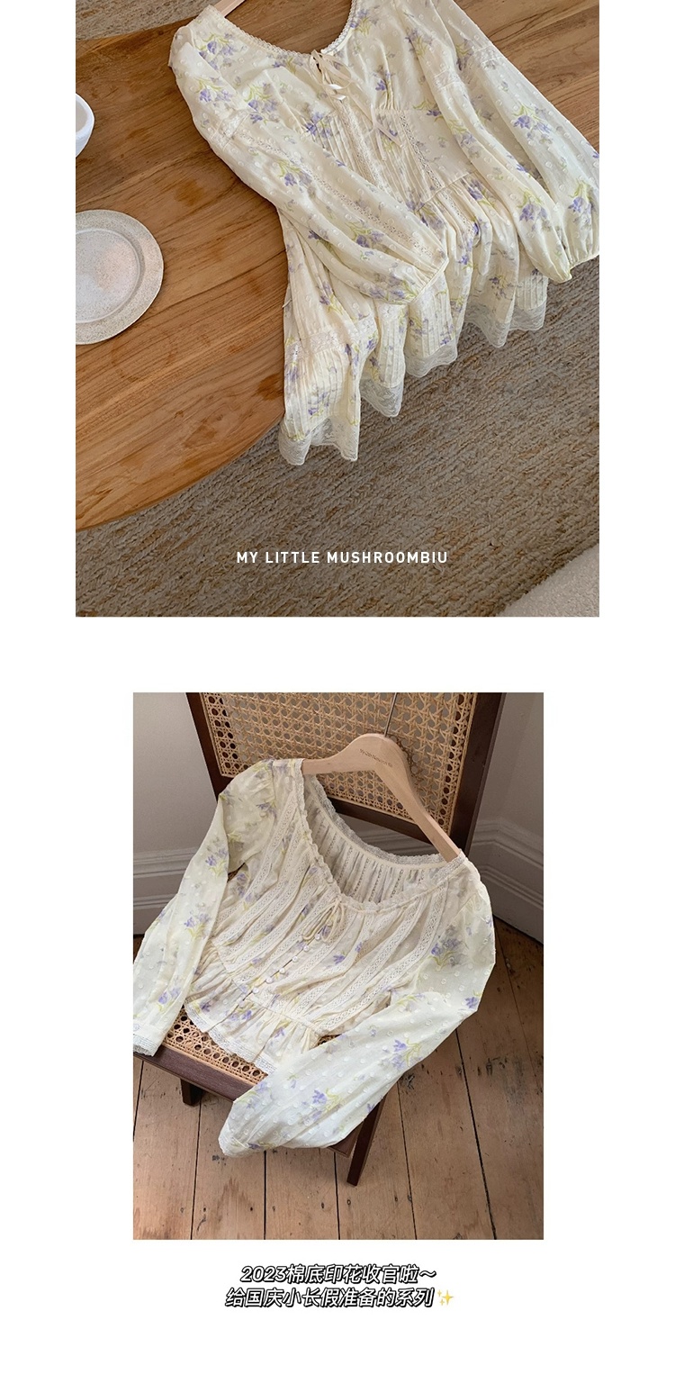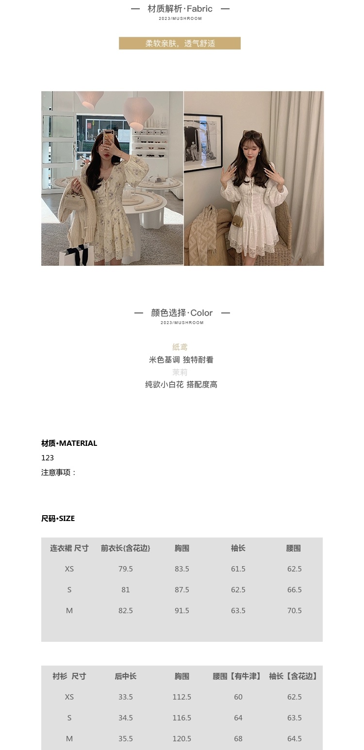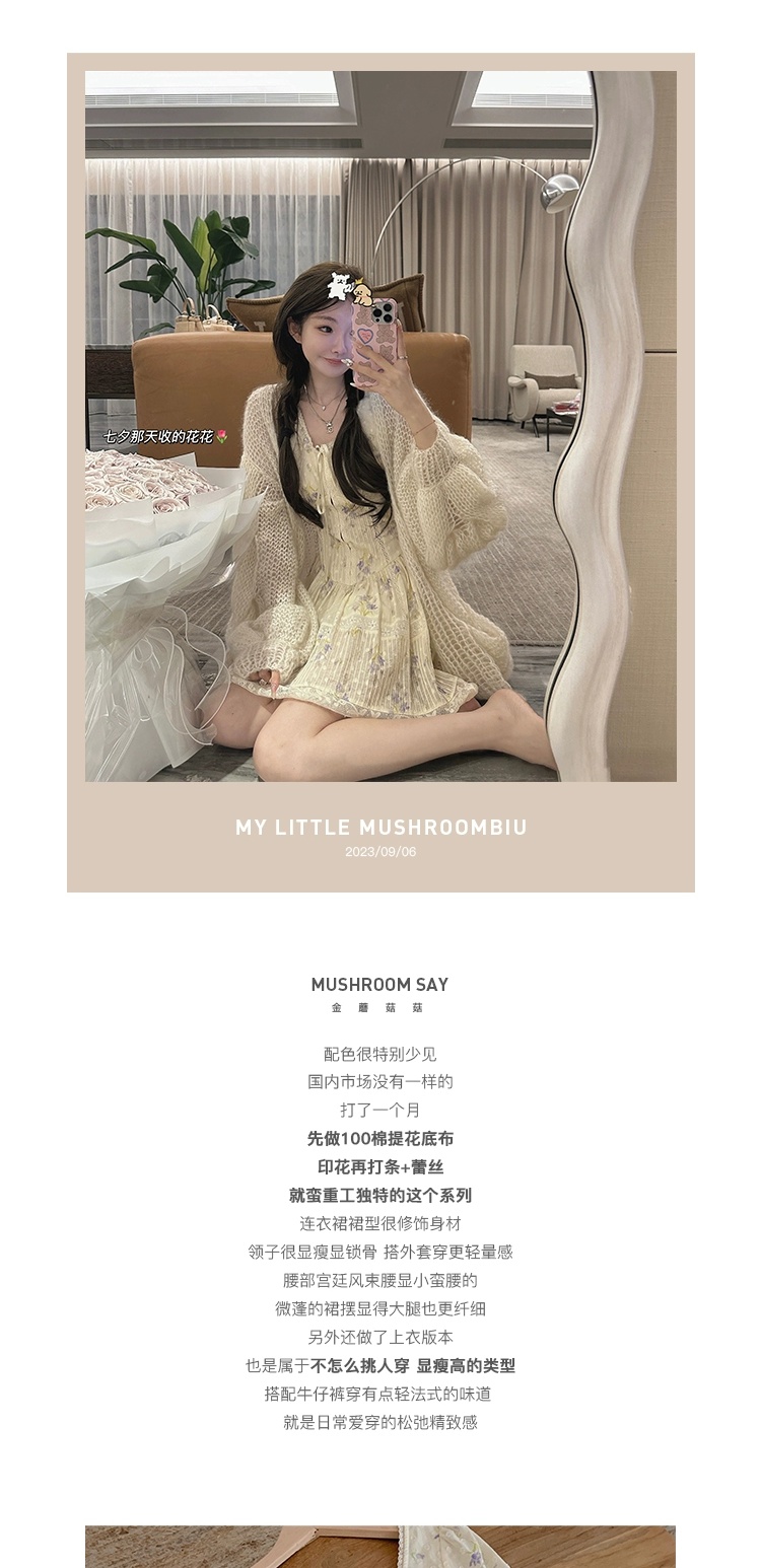 金蘑菇菇 小纸鸢 / holiday节日氛围重工100棉印花蕾丝收腰连衣裙