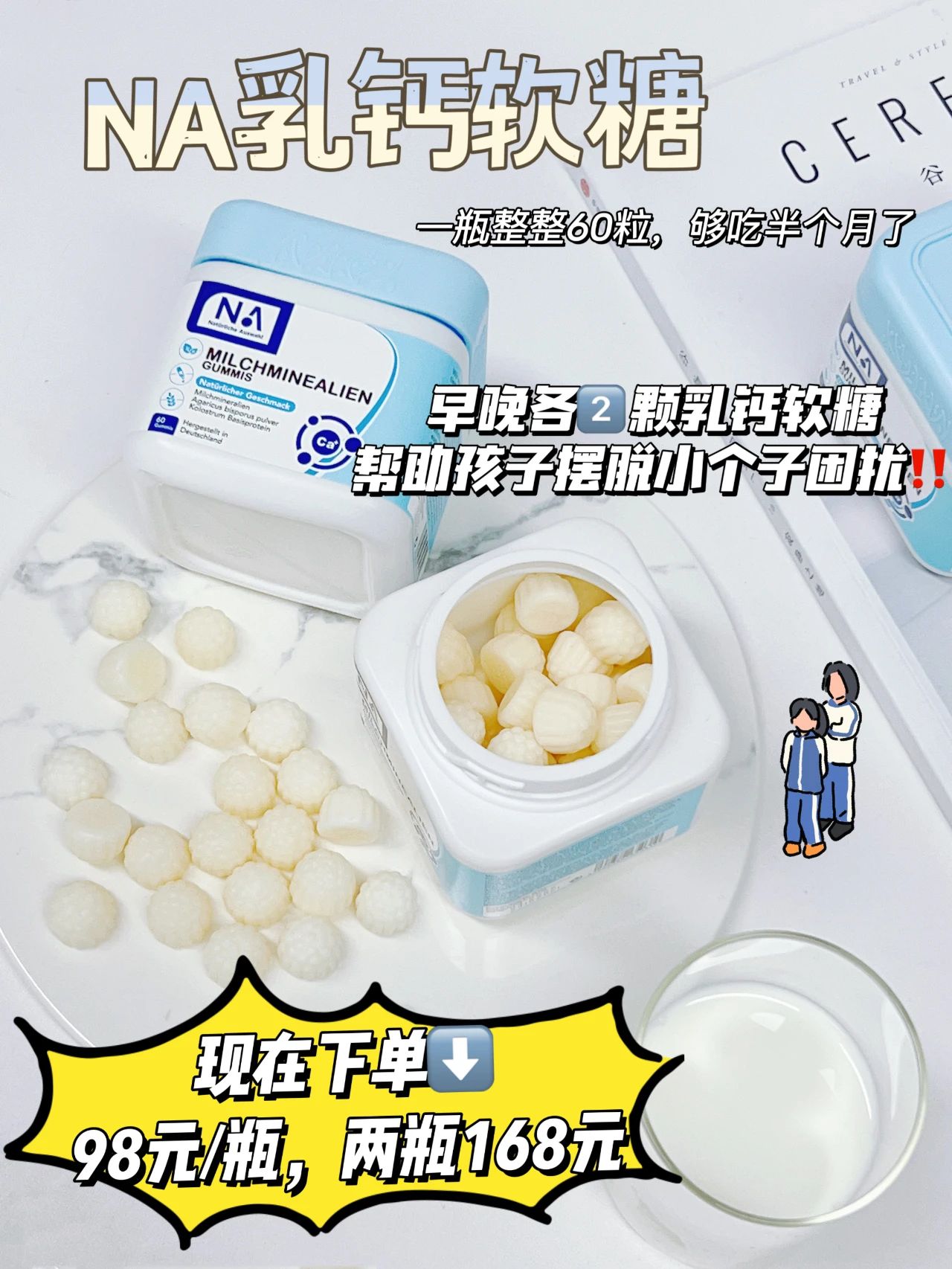 【来自德国80%高吸收率有机补钙软糖】NA自然之选乳矿物盐(乳钙)软糖 德国国民品牌 欧洲伊疗机构功能性及高品质产品认证,多重复合营养素,一家老小都能吃(加赠试吃装)