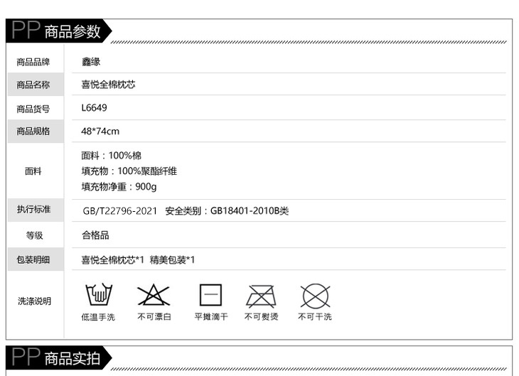 鑫缘 喜悦全棉枕芯 L6649 一只装