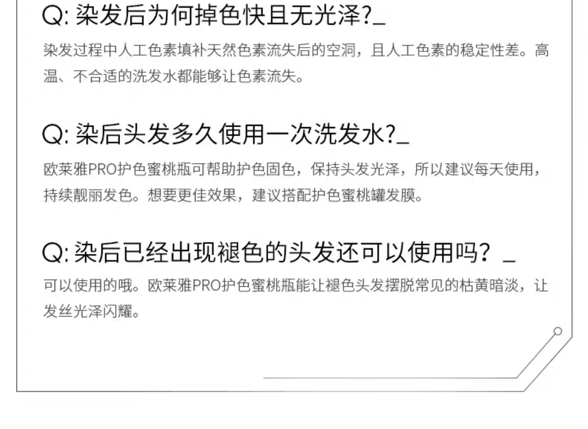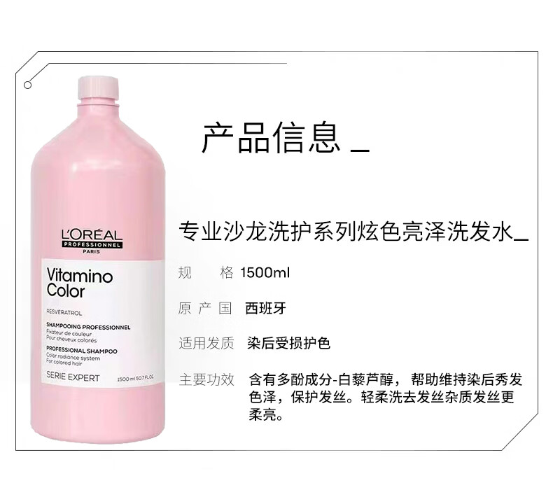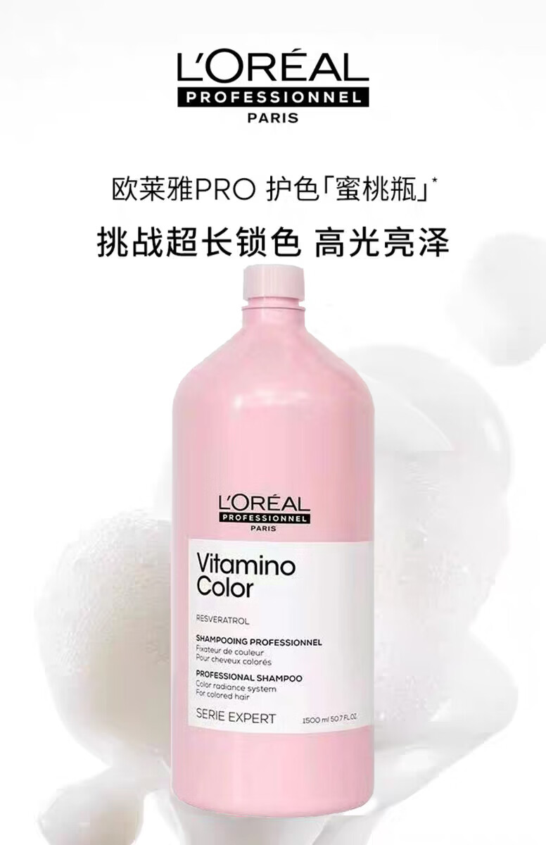 进口西班牙欧莱雅PRO沙龙染后固色锁色护色蜜桃瓶洗发水 1500ml/瓶