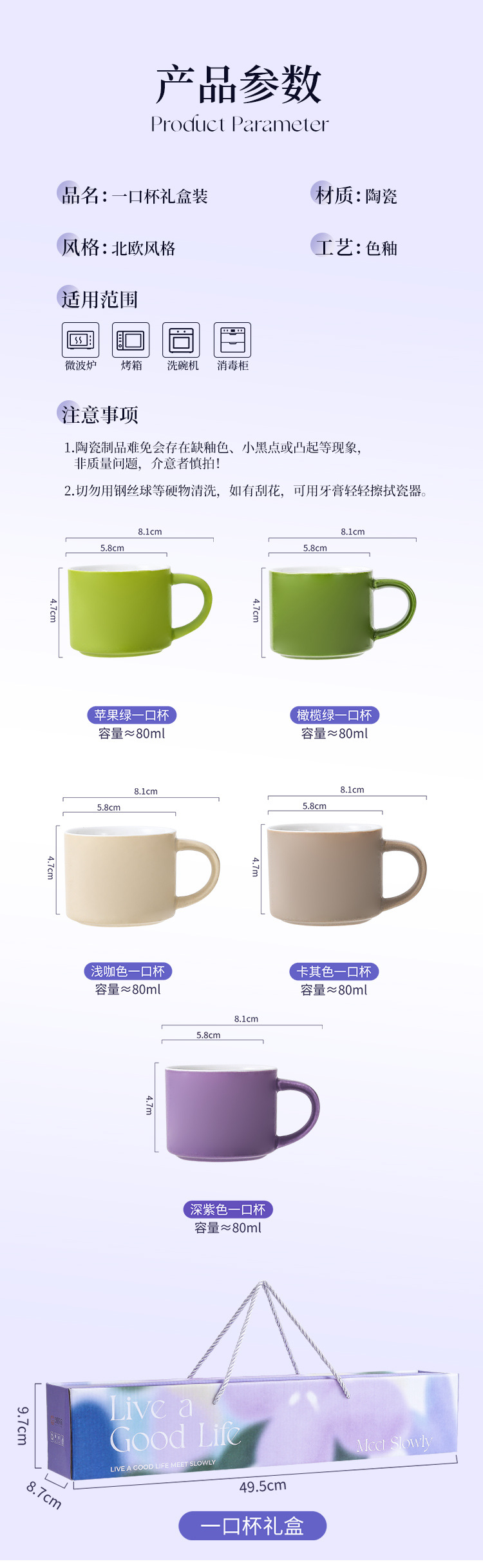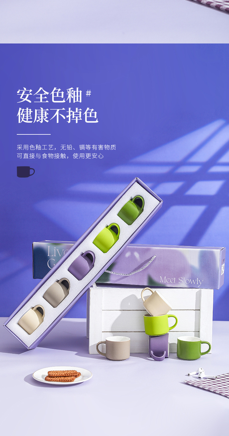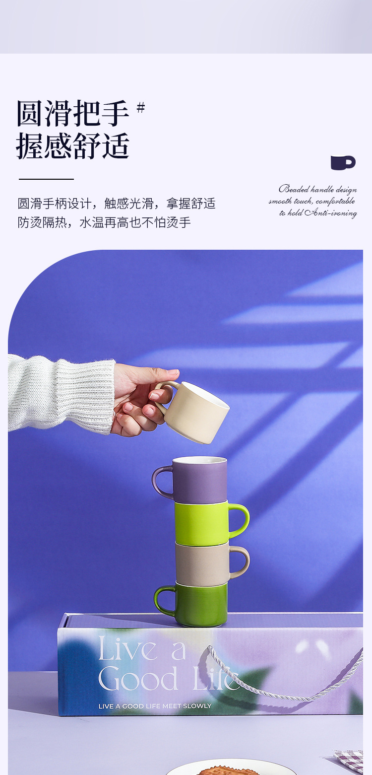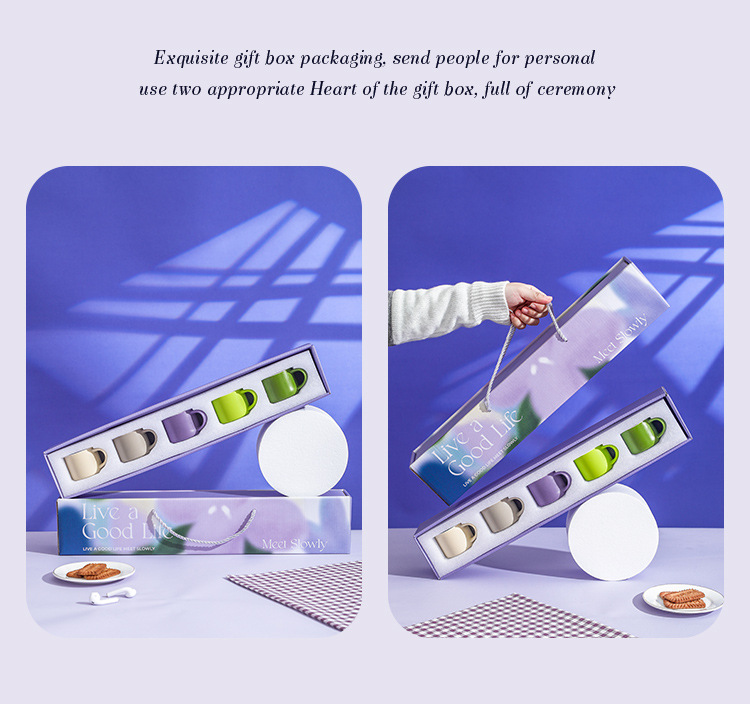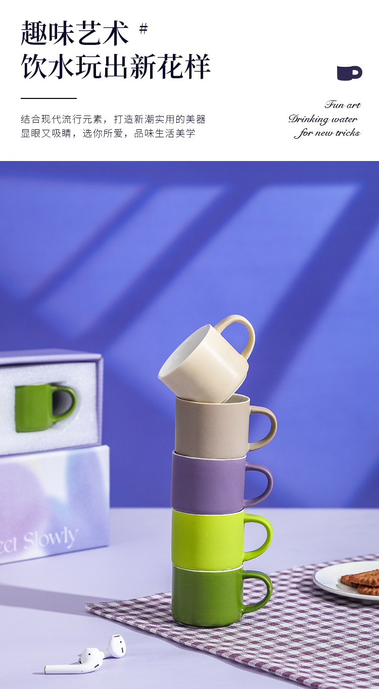 礼盒装【炫彩一口杯!让生活更有色彩】ins风陶瓷咖啡杯套装伴手礼高颜值水杯女生情侣礼物女士商务礼品,圆润把手,端拿舒适 造型别致,让生活更有格调。ry