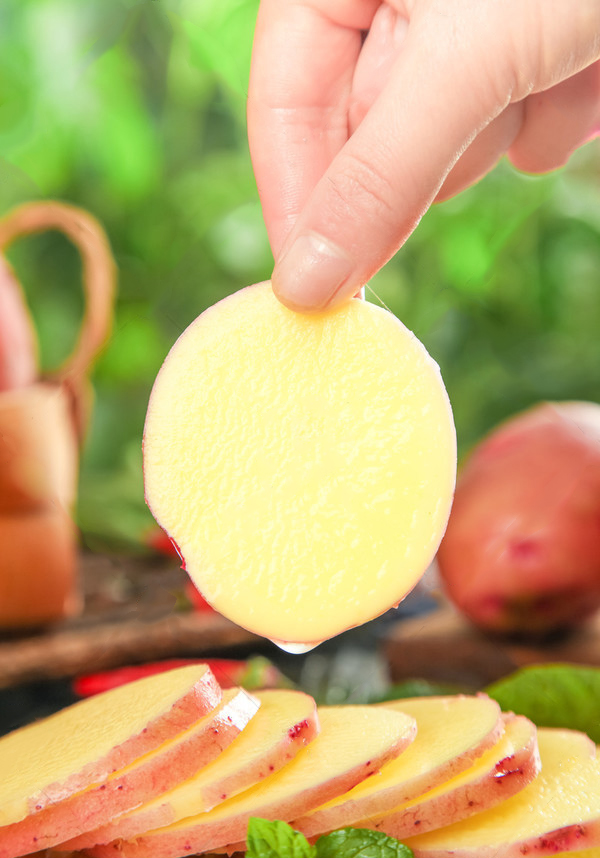 红皮土豆兼具沙面细腻口感,土豆口感更糯、面、香甜,汁多有粘性。