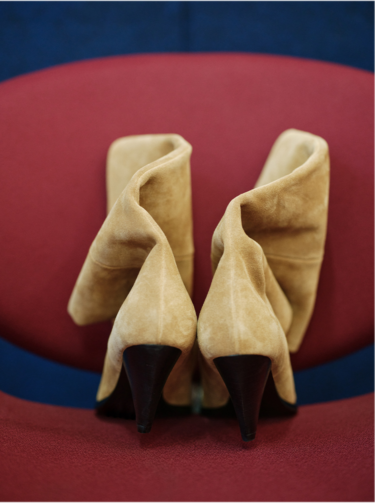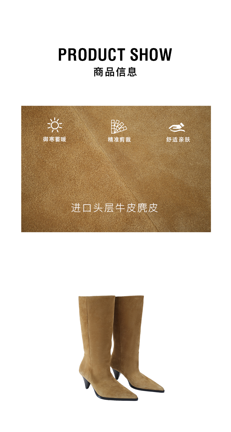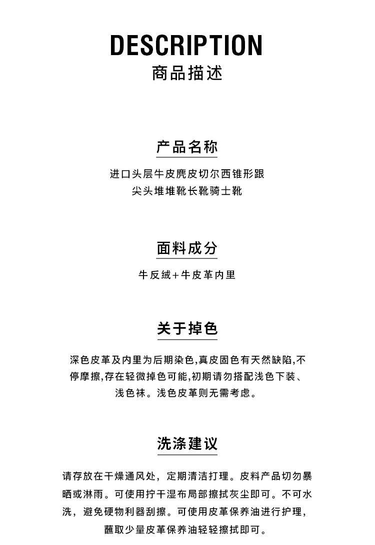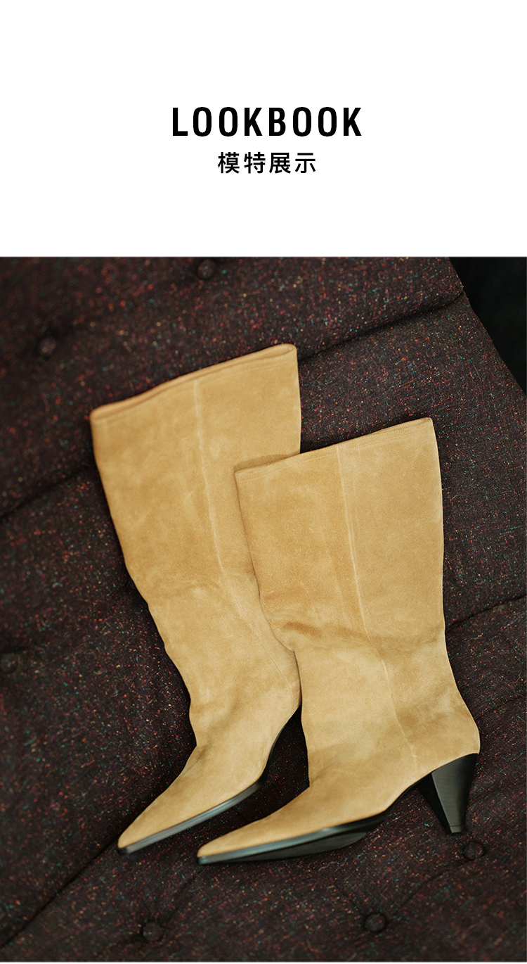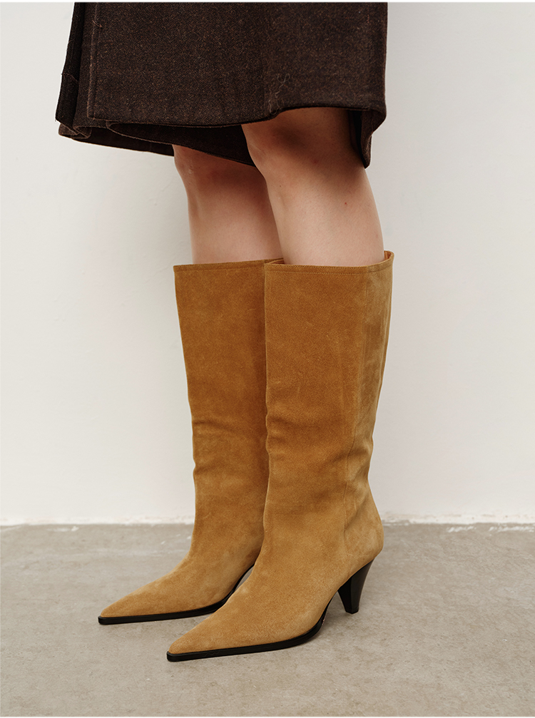 HIDEMI 进口头层牛皮麂皮切尔西锥形跟尖头堆堆靴长靴骑士靴