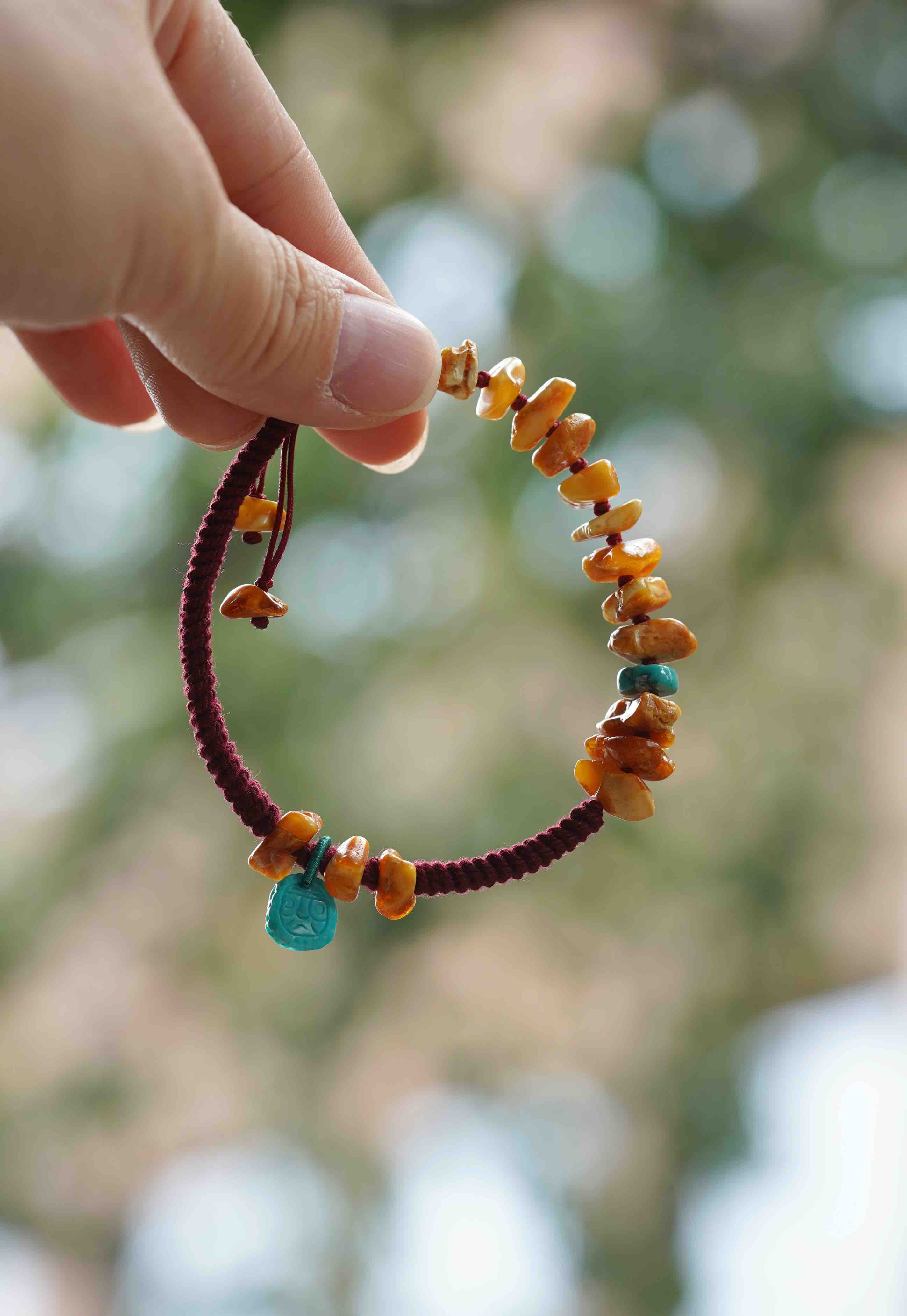 绿松小吊坠和蜜蜡原皮珠子的结合真的是自然遇见淳朴的原野风。