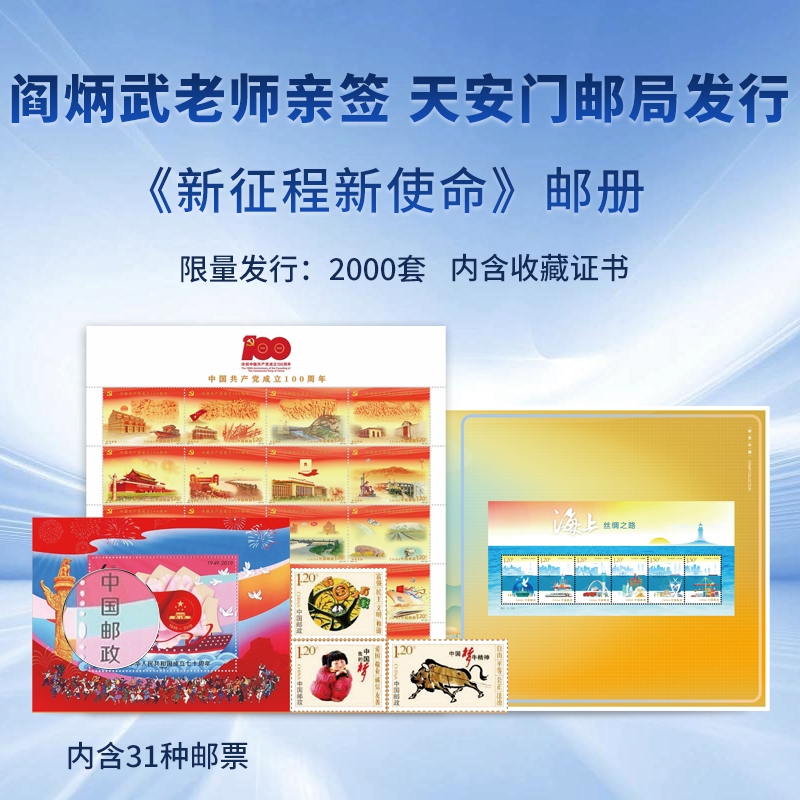 天安门邮局授权发行《新征程新使命》邮票珍藏册+阎炳武老师亲签