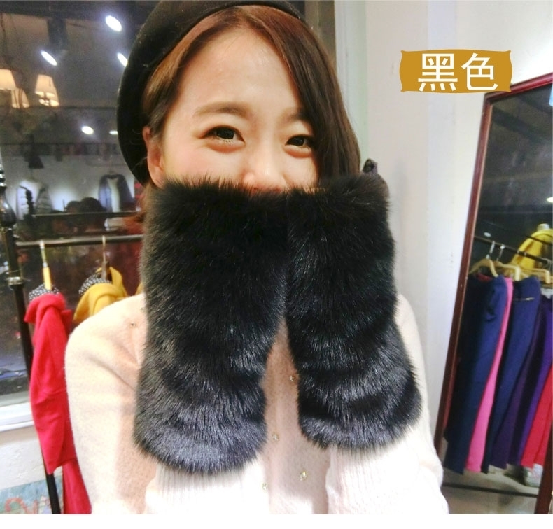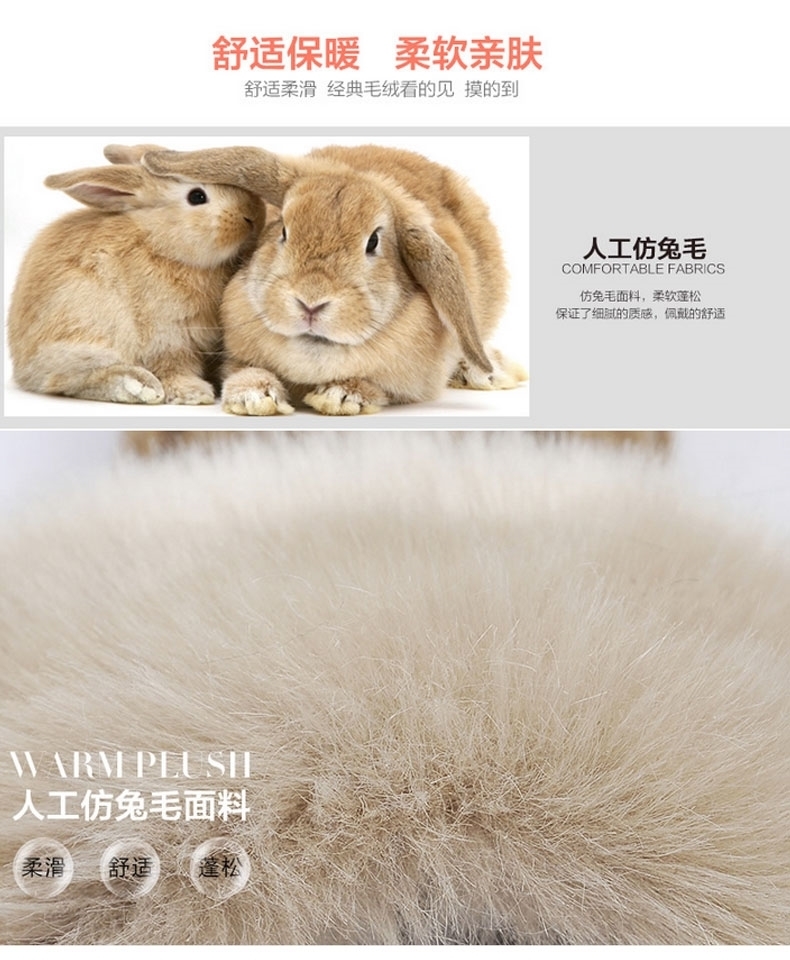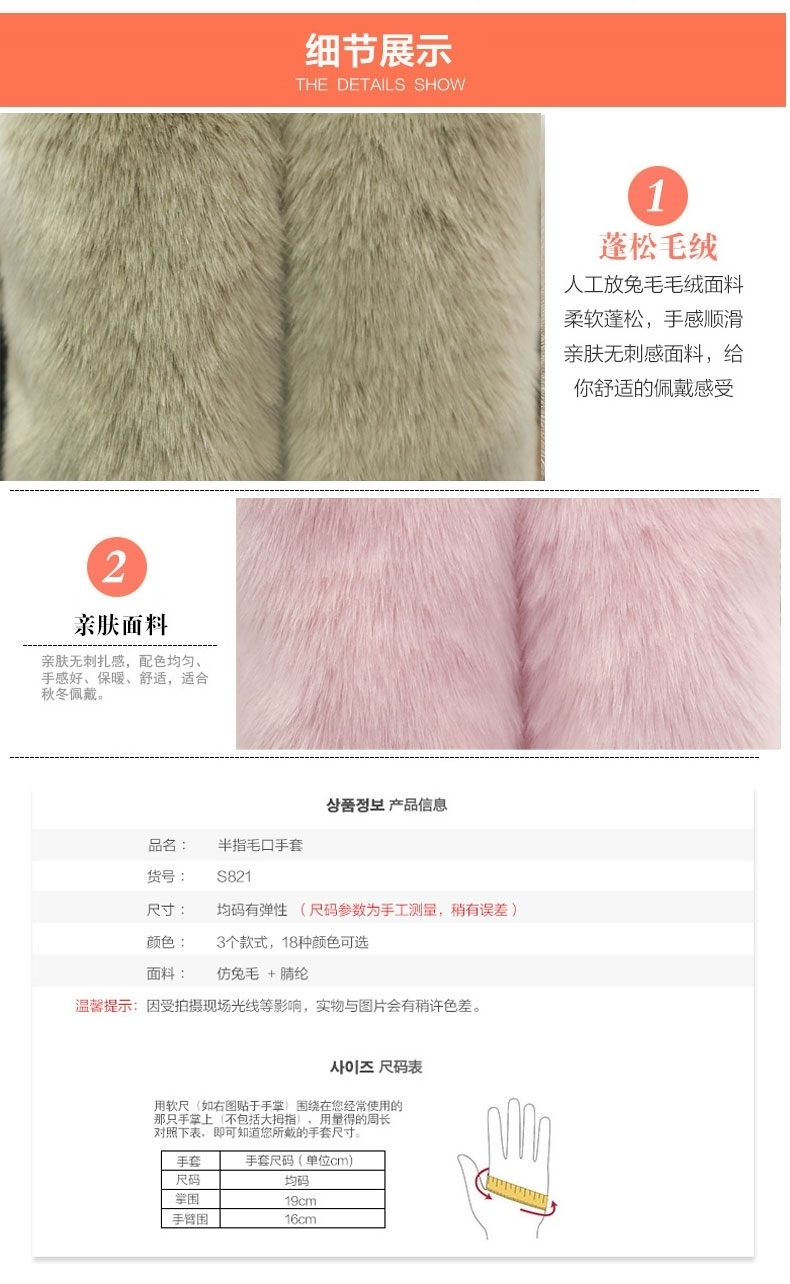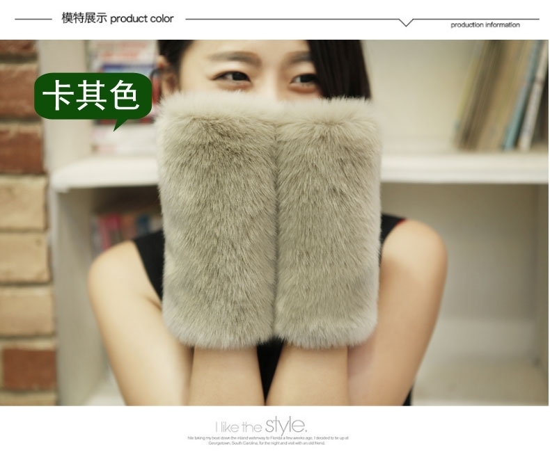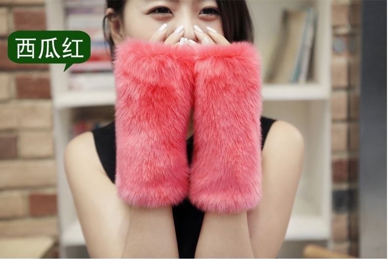 秋冬保暖女士半指露指手套 仿兔毛毛手套可爱 长袖口护手套