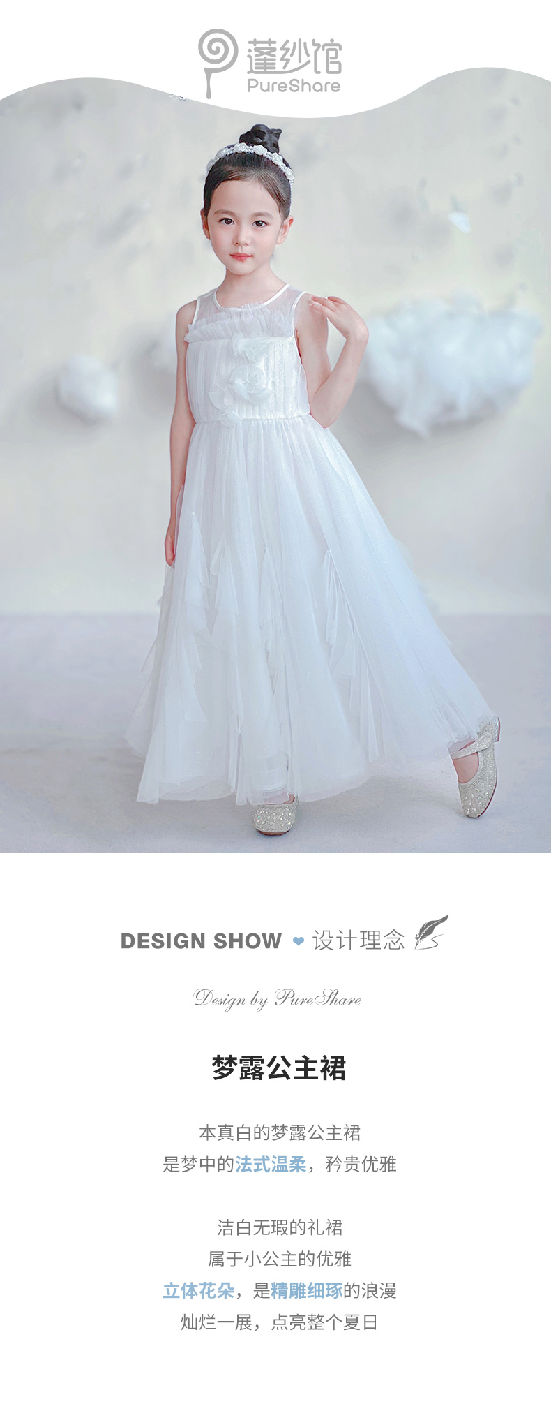 PureShare蓬纱馆,2018年创立的儿童服装品牌,专注于儿童轻奢生活类小礼服,主张“让孩子做最独特的自己”的品牌理念,为孩子们提供时尚简洁、优雅而又不失童真的生活类礼服。