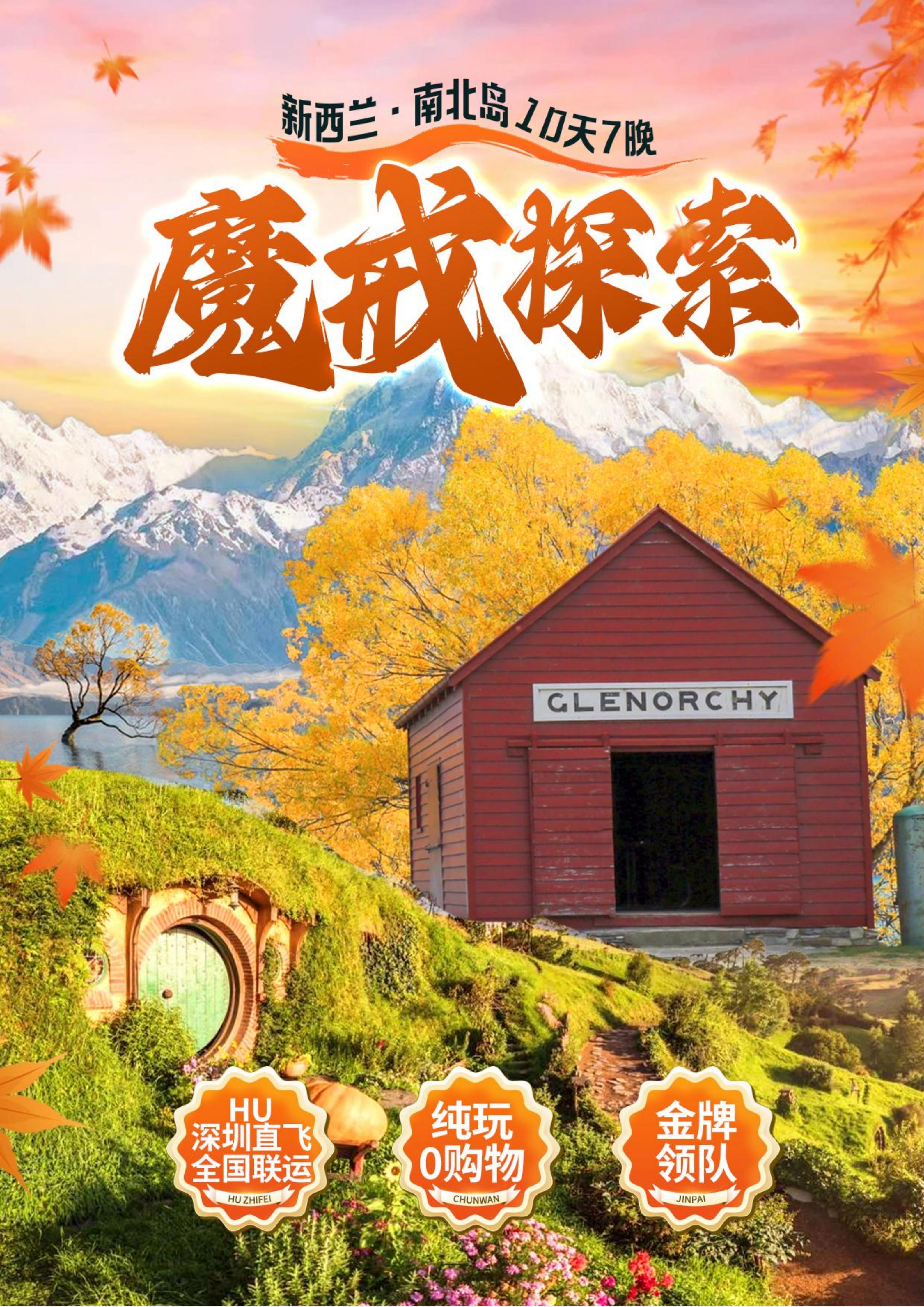 【五一】<新西兰南北岛10天7晚-深圳直飞>库克山冰川步道+蒂卡波湖+皇后镇天际缆车 Skyline+瓦纳卡湖+霍比特人村+怀托摩萤火虫洞+格林诺奇小镇+爱歌顿农庄+怀欧塔普地热仙境