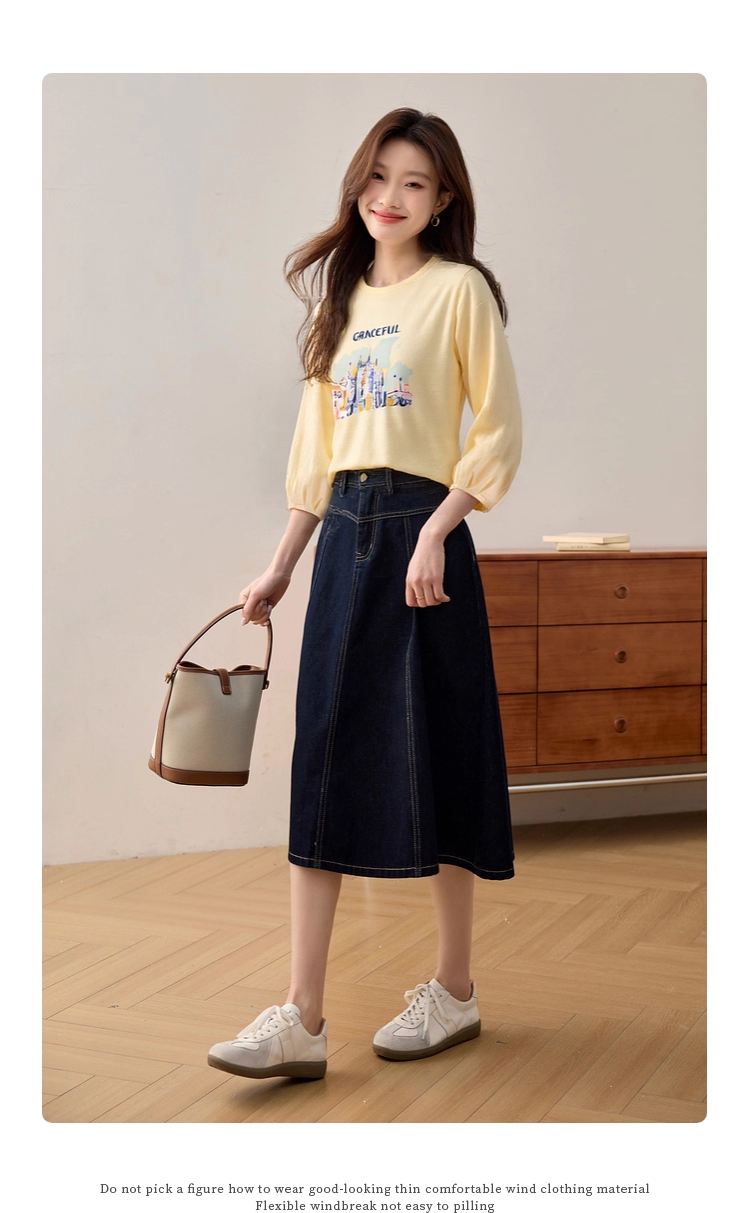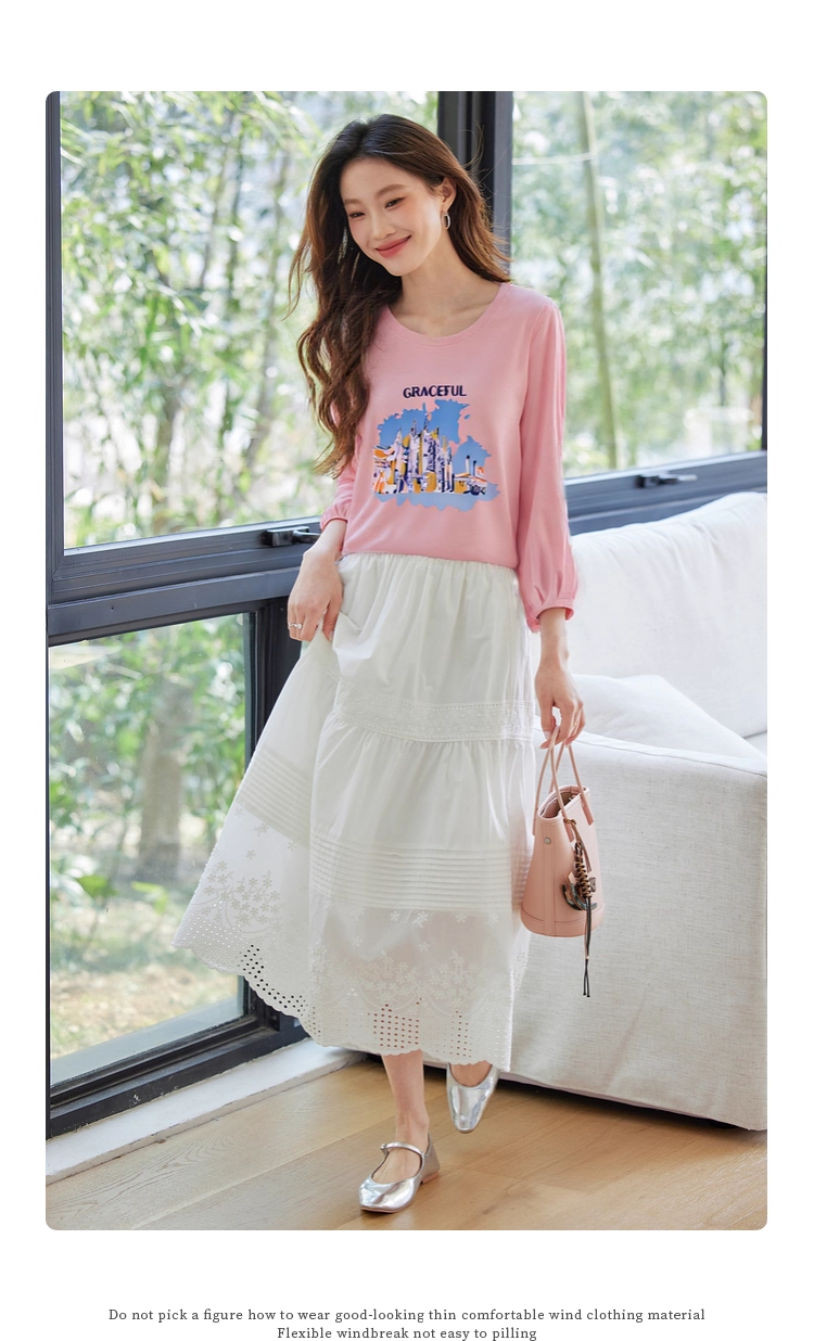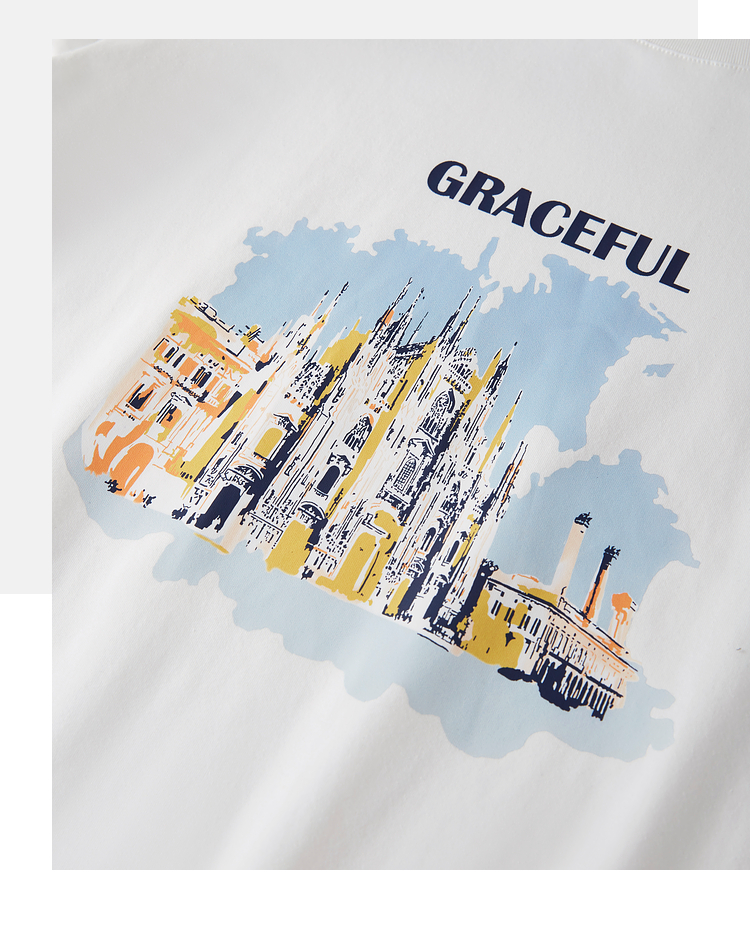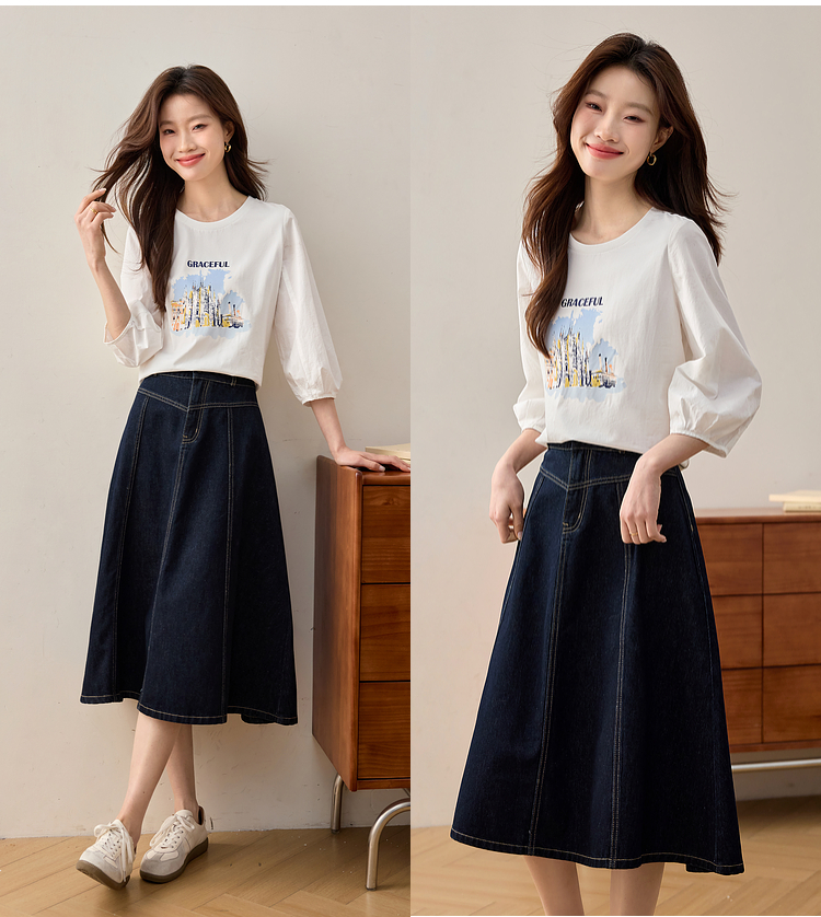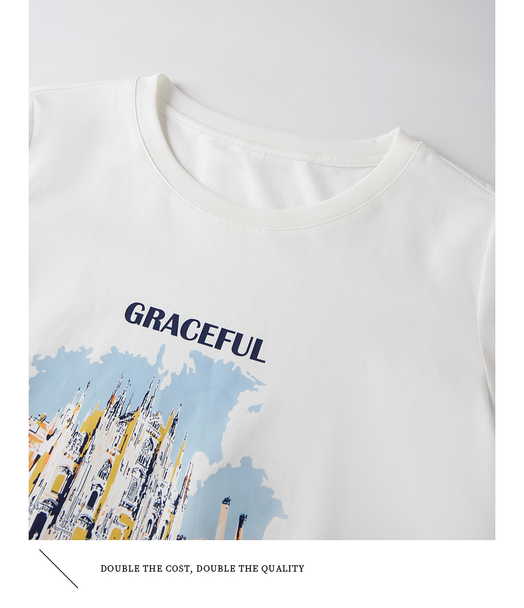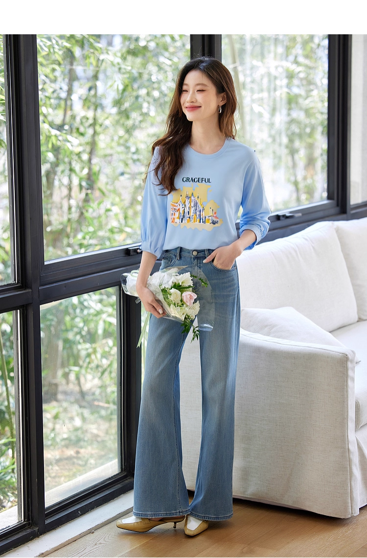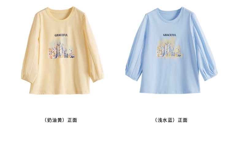 【年终特卖】熙世界灯笼七分袖印花T恤女春2025新款时尚减龄中袖天丝体恤上衣