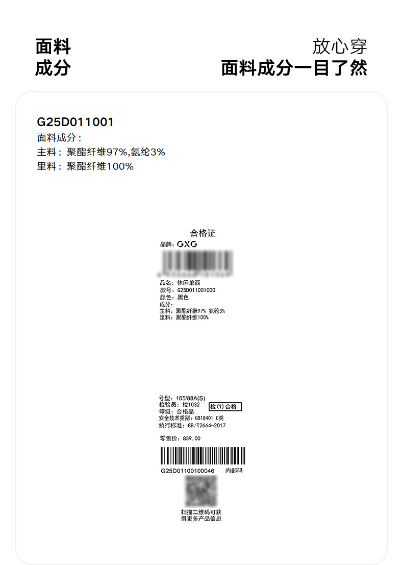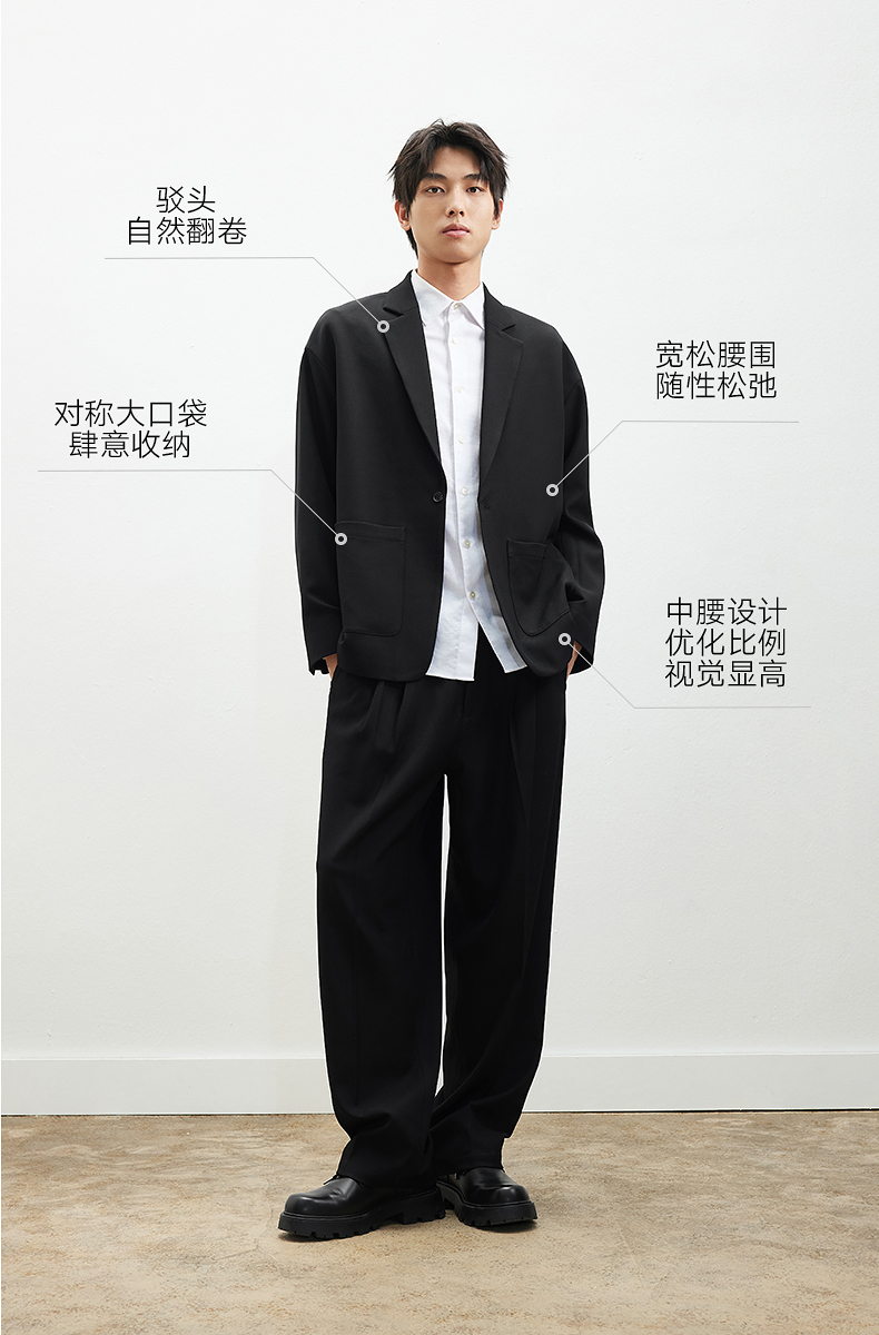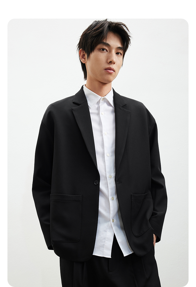 GXG男装 四面弹单粒扣廓形西装外套微落肩25年春季热卖#G25D011001