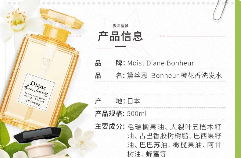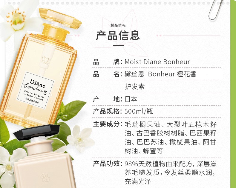 MOIST DIANE/黛丝恩 BONHEUR 橙花香洗发水 500MLJPY带授权招加盟代理