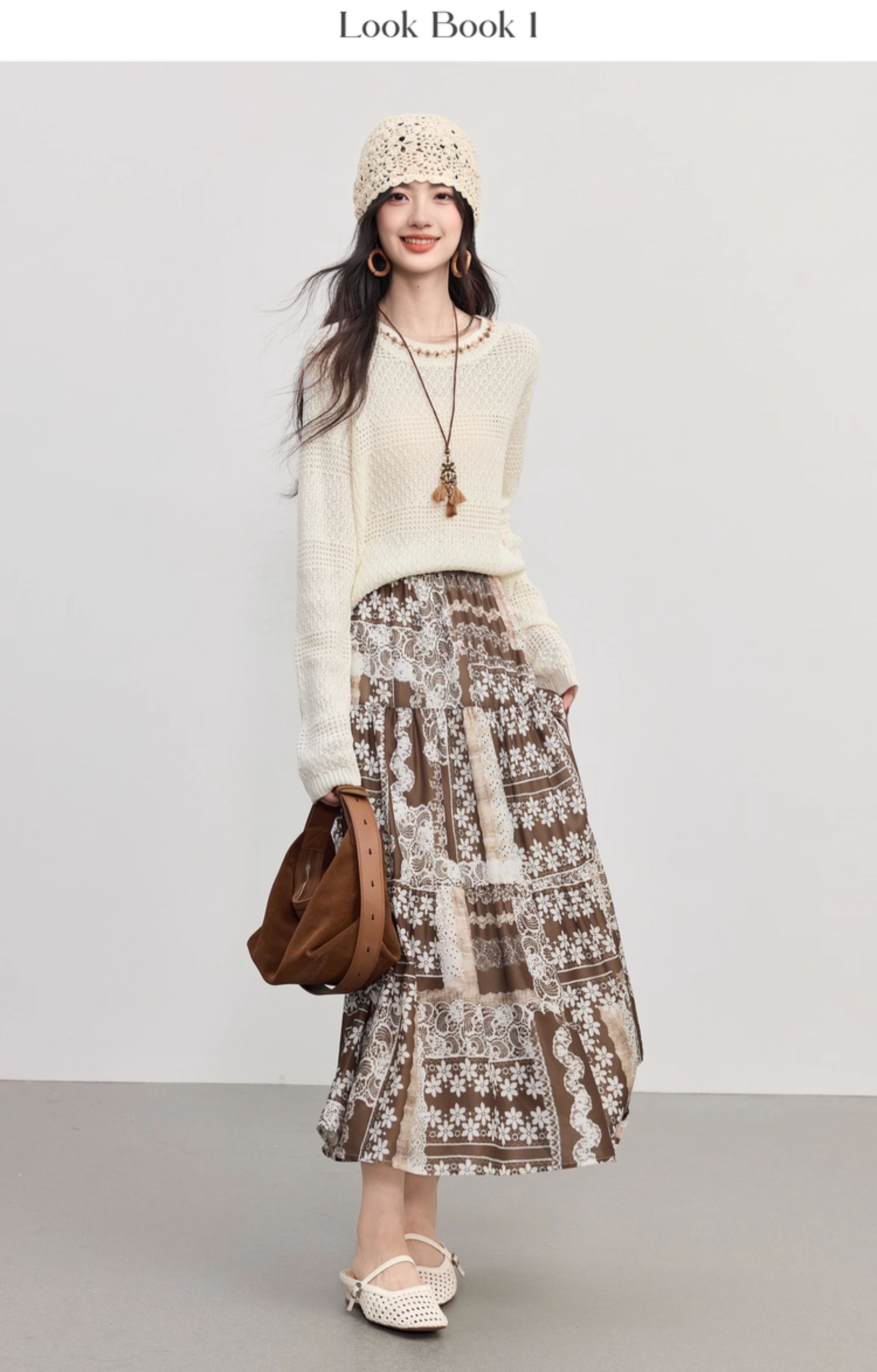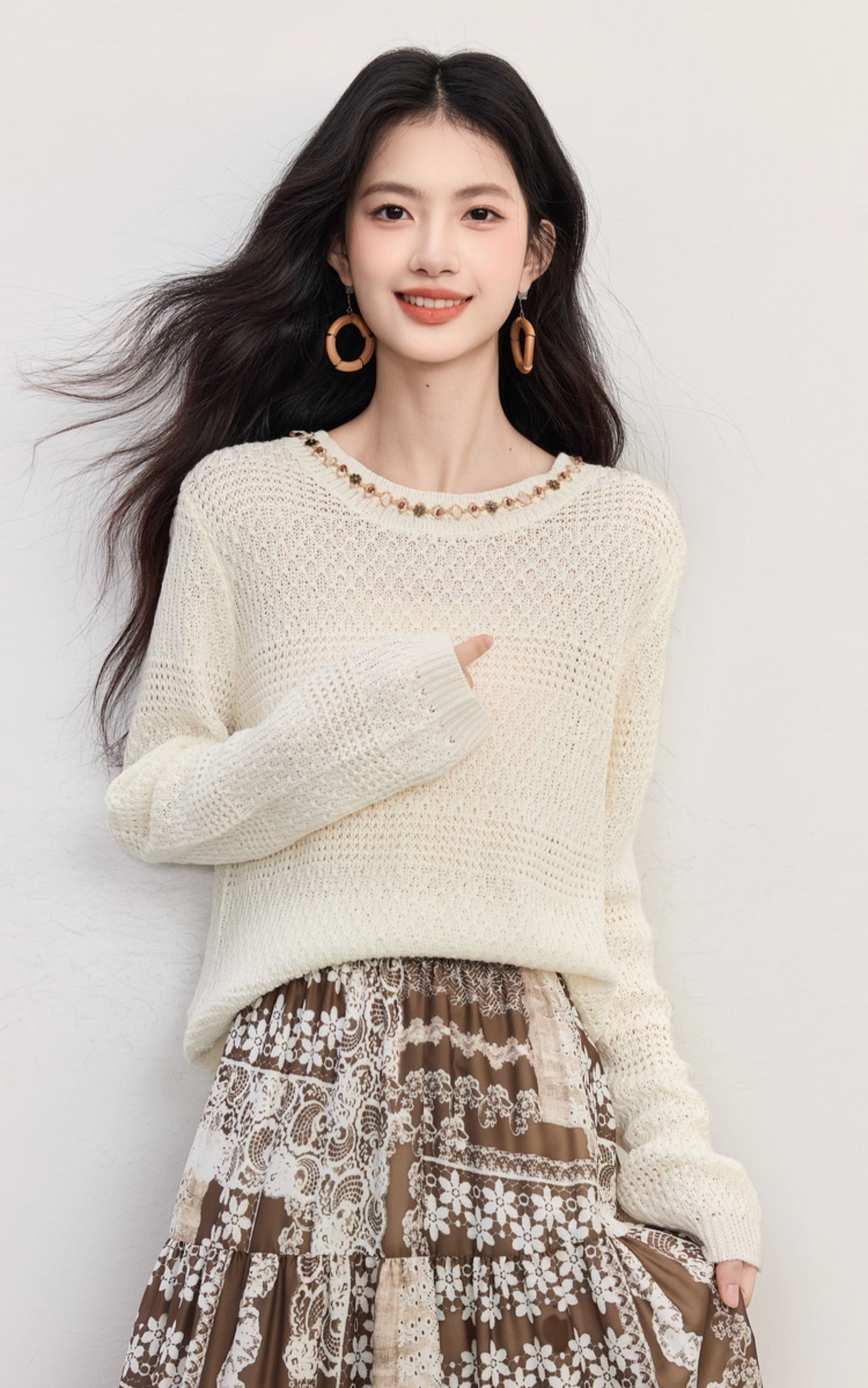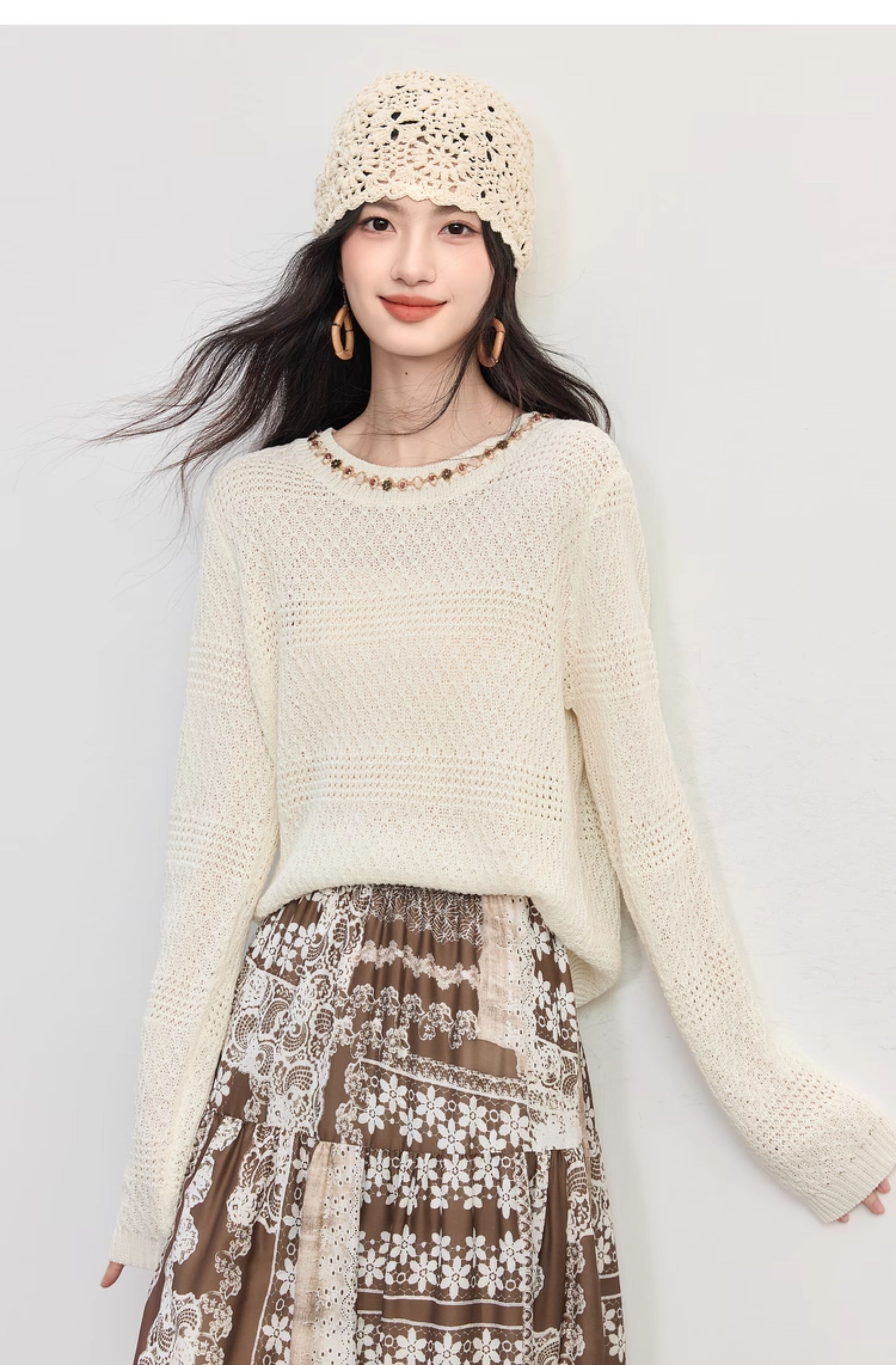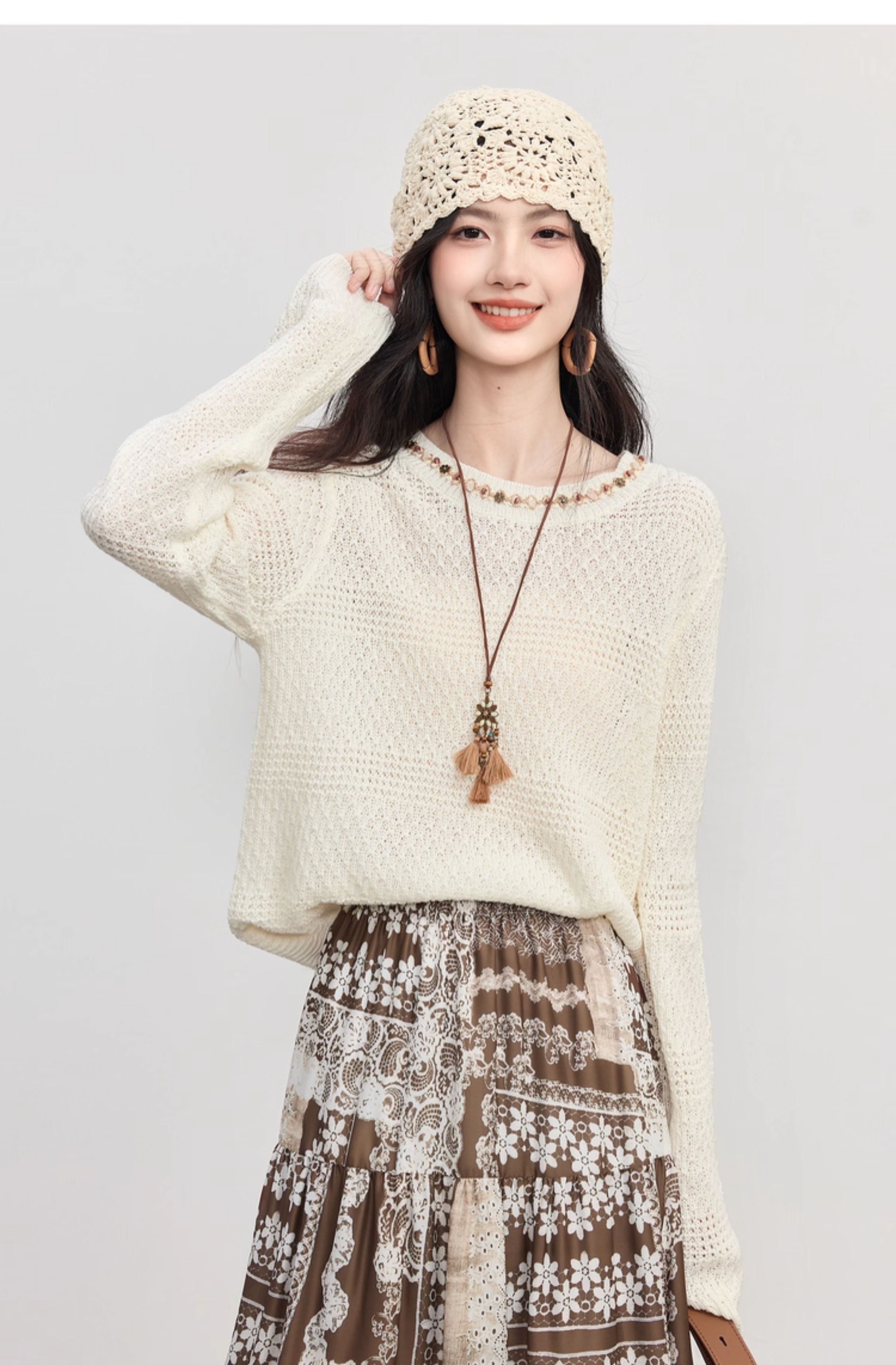 【09/26新品】熙世界波西米亚风串珠圆领针织衫女秋季宽松慵懒毛织罩衫绝美上衣