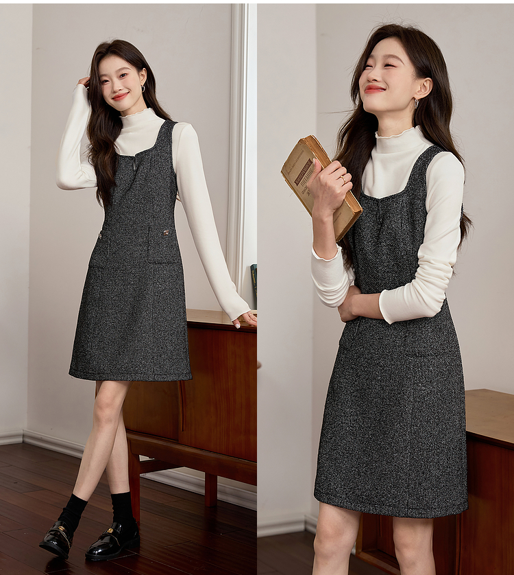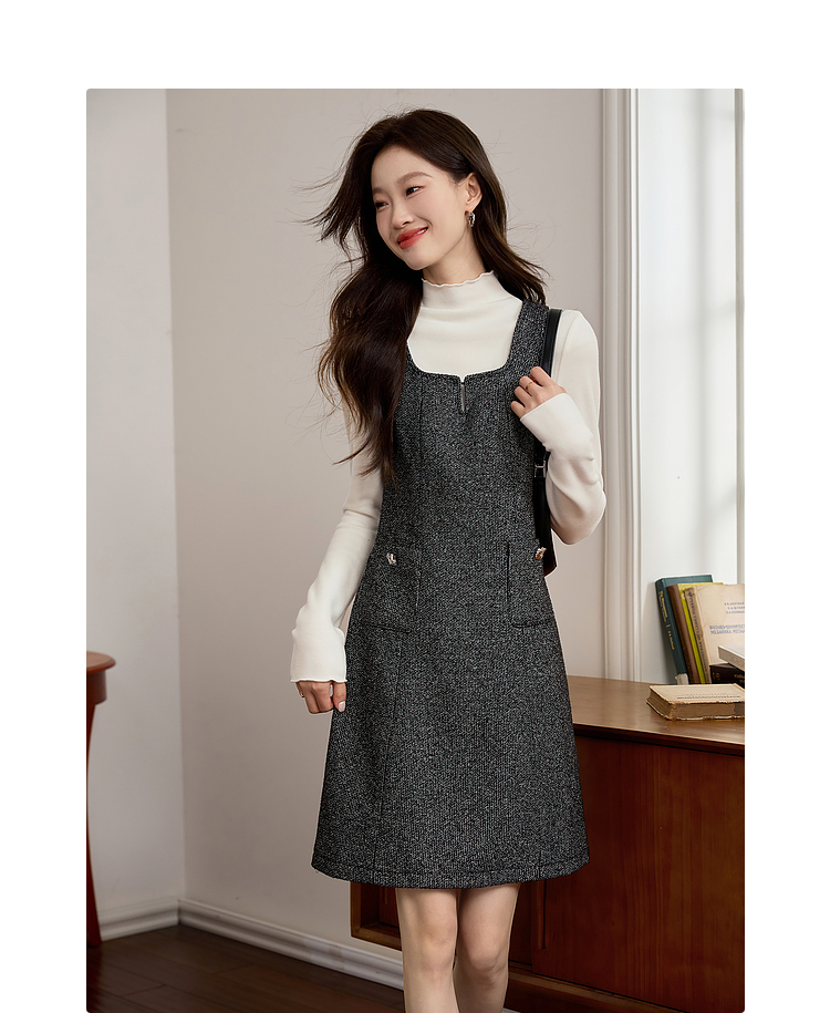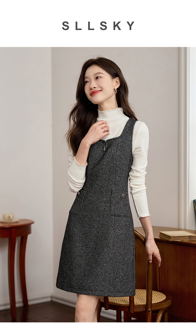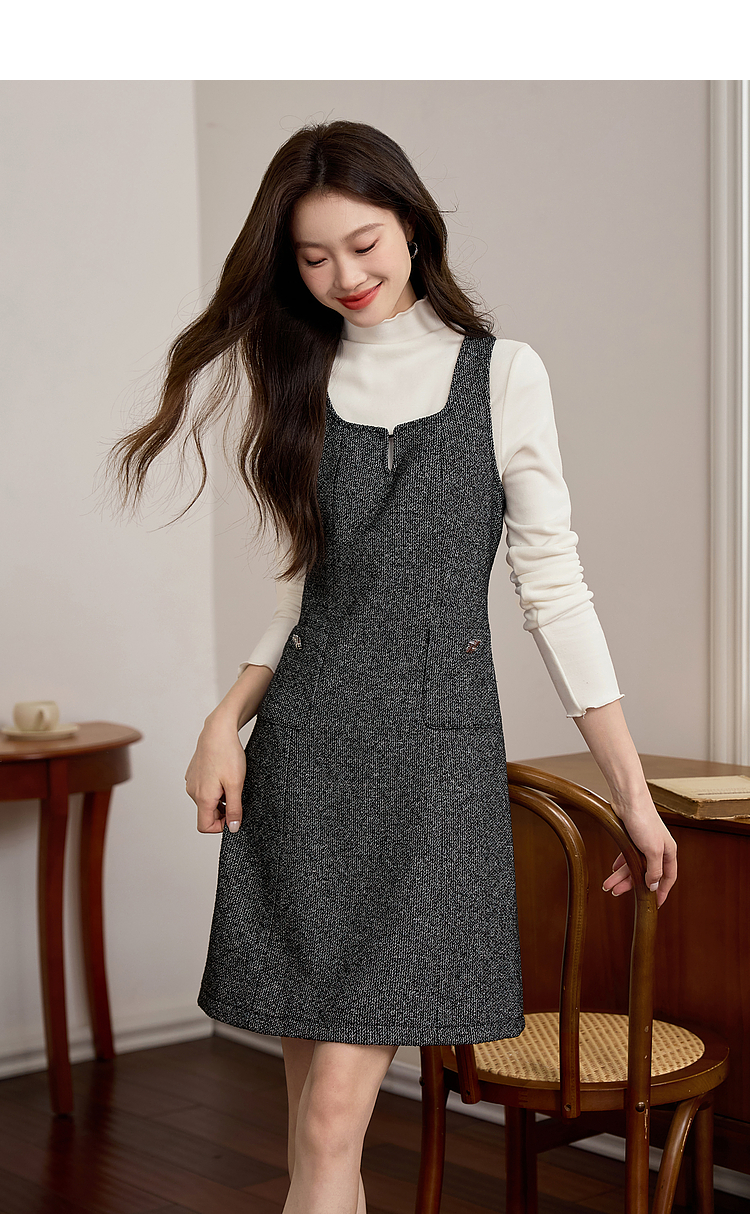 【年终特卖】熙世界优雅气质背心裙女秋冬款高腰显瘦裙子