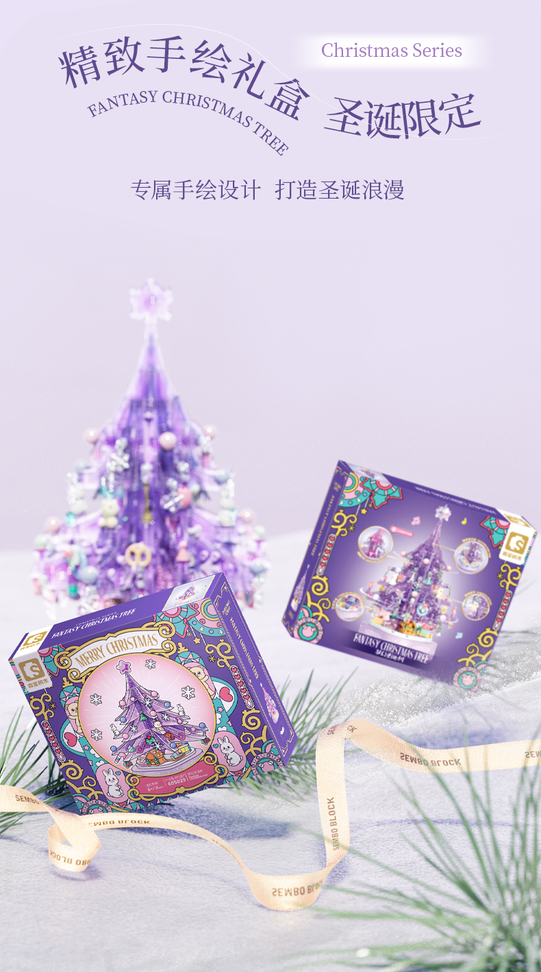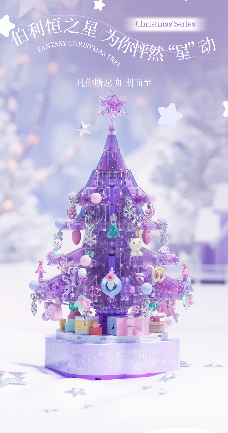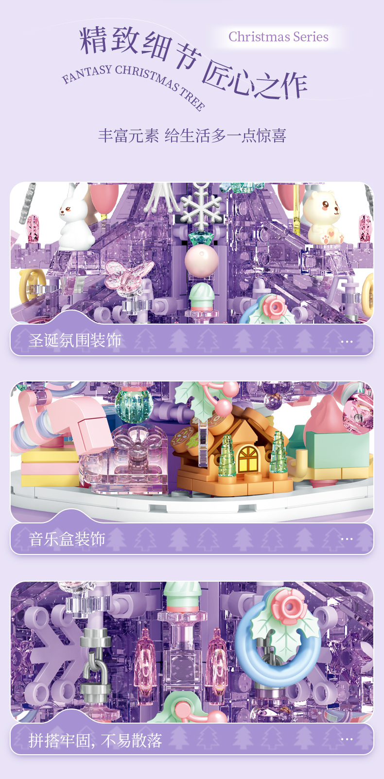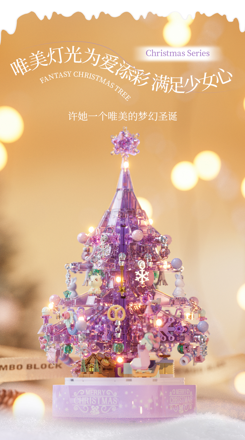 【森宝】紫色水晶圣诞树小颗粒拼装积木圣诞节玩具礼物