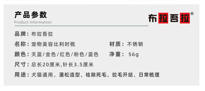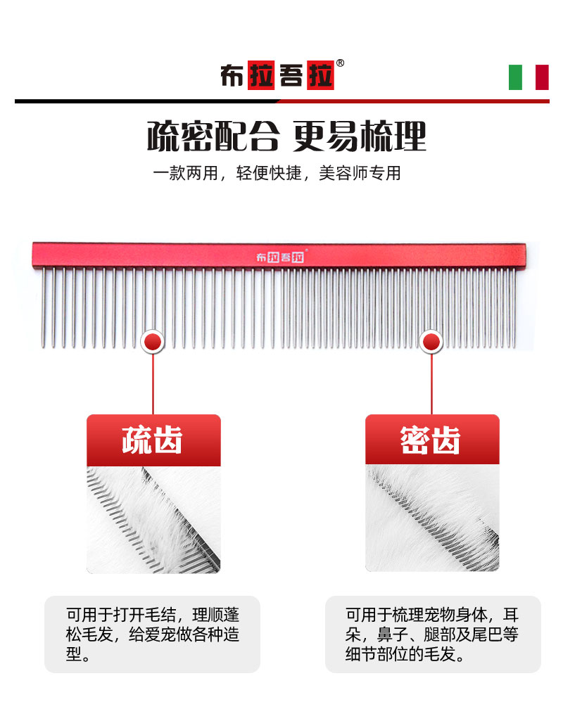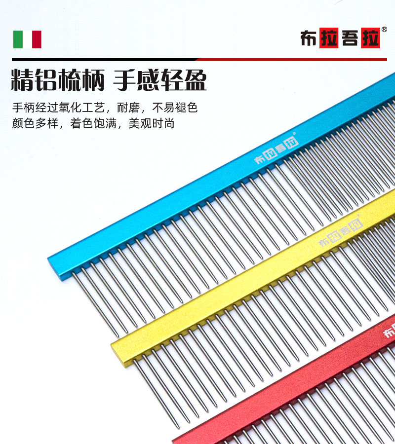 宠物铝柄排梳 #200 宽柄 意大利BRAVURAGROOM布拉吾拉