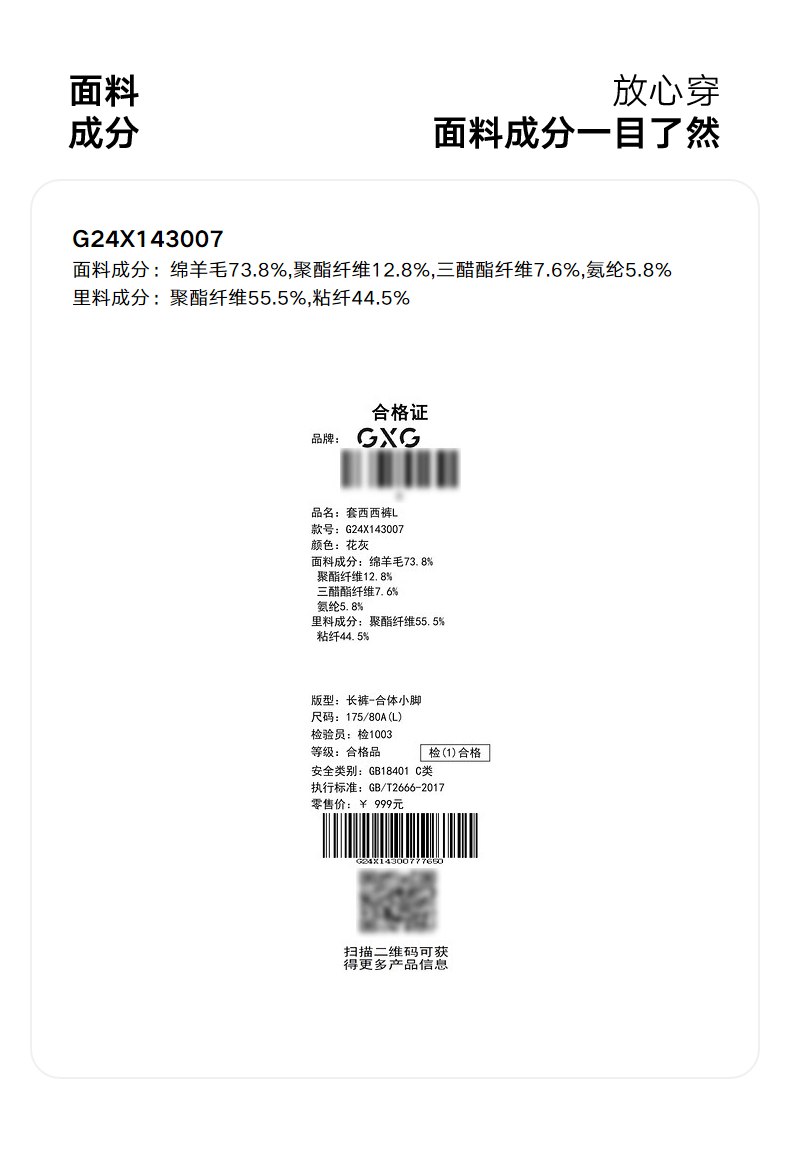 GXG男装 花灰挺括有型不易皱套西西裤 24年秋G24X143007