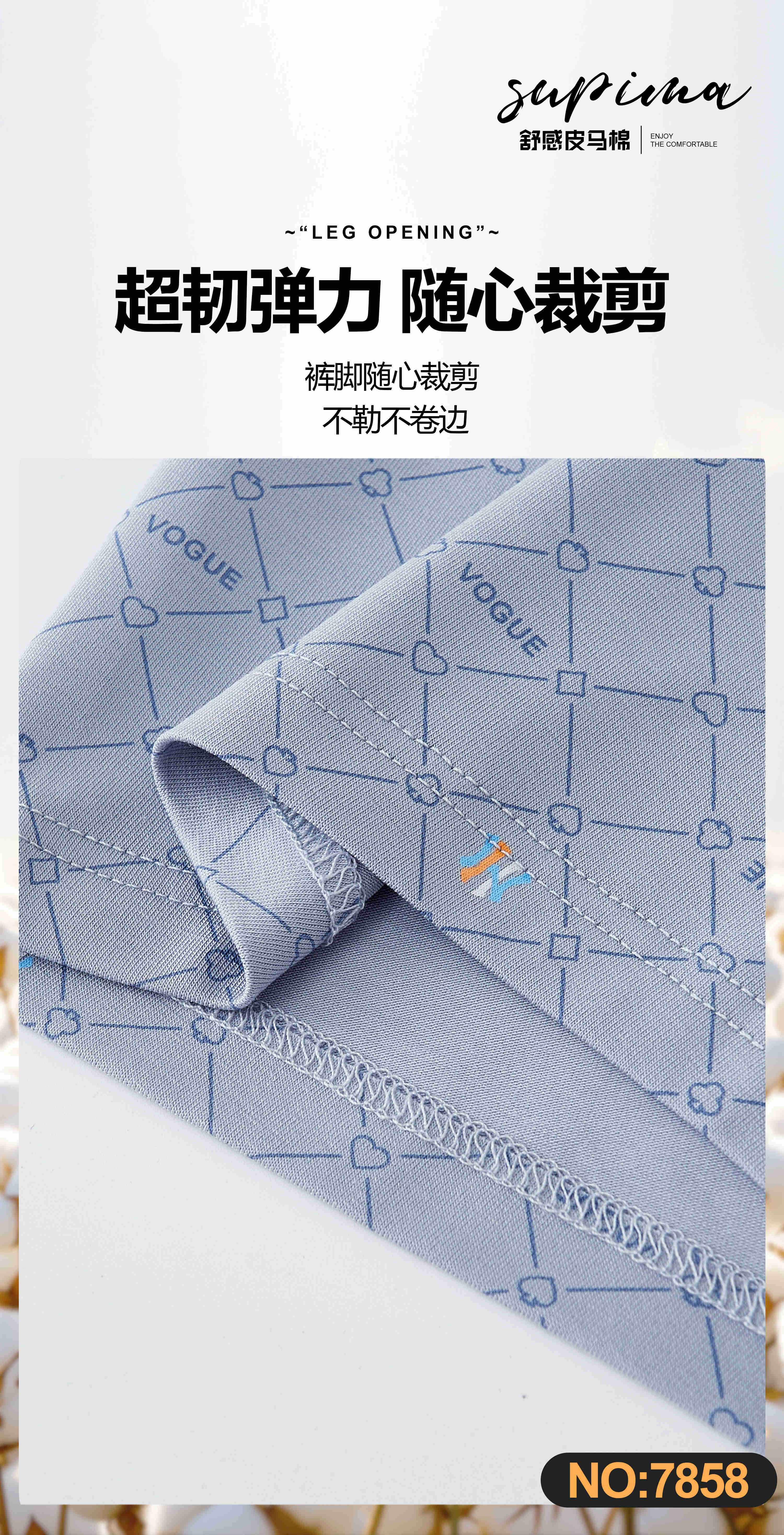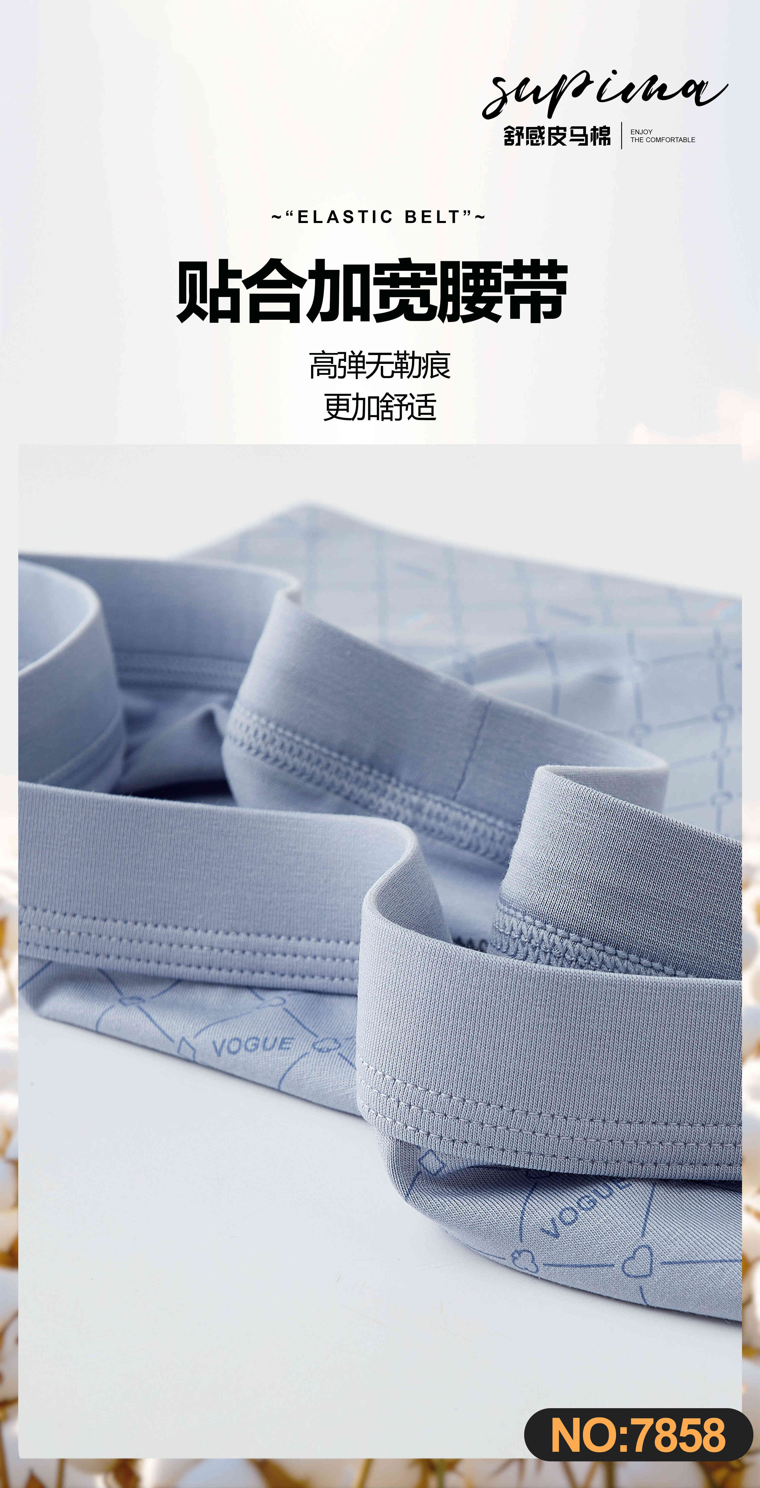 男士舒感皮马棉包头印花车缝平角内裤舒适透气7858