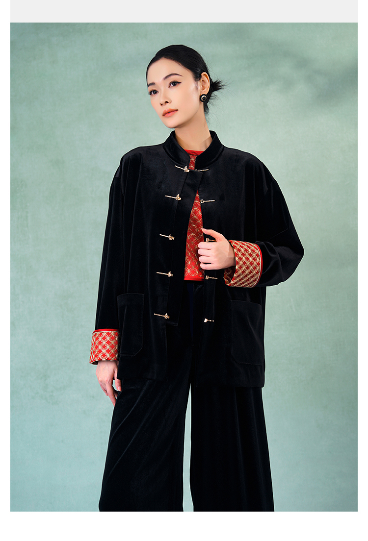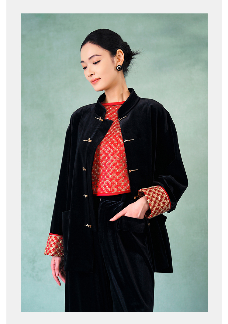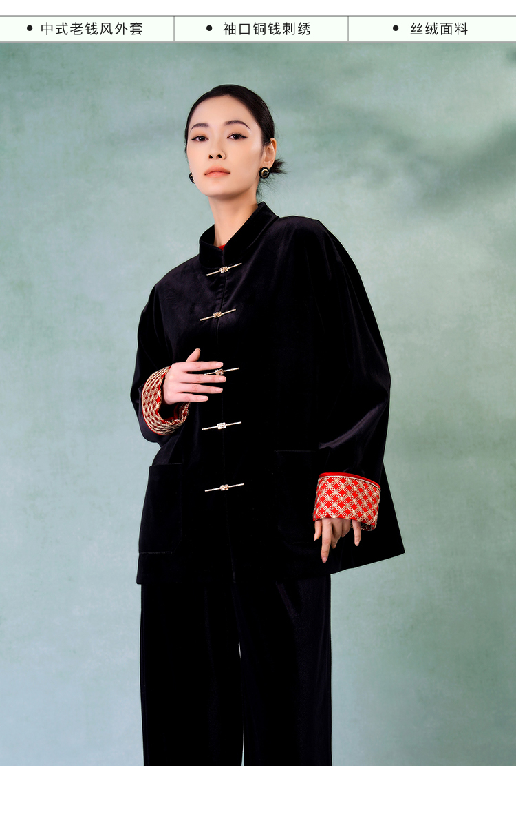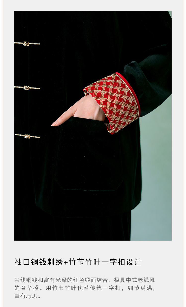 郭培成衣品牌精品系列奢华中式老钱风袖口铜钱刺绣丝绒外套