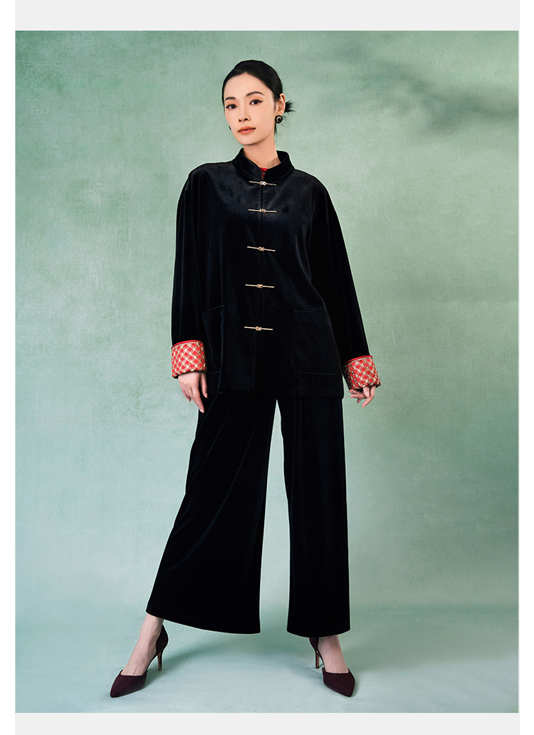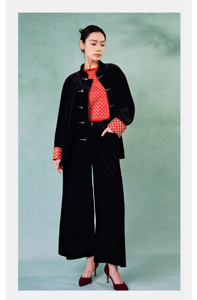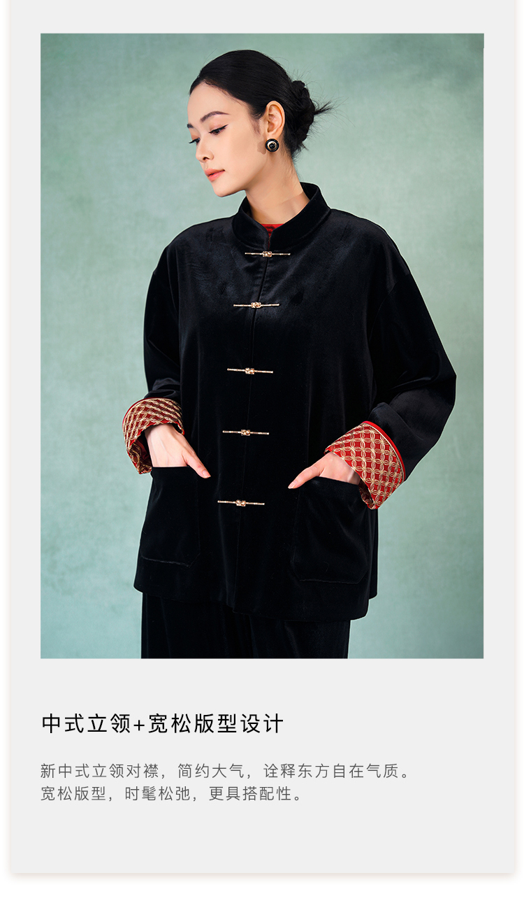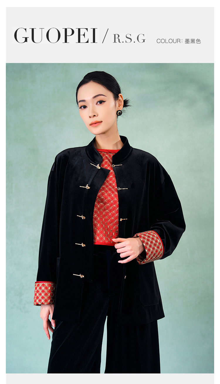 郭培成衣品牌精品系列奢华中式老钱风袖口铜钱刺绣丝绒外套