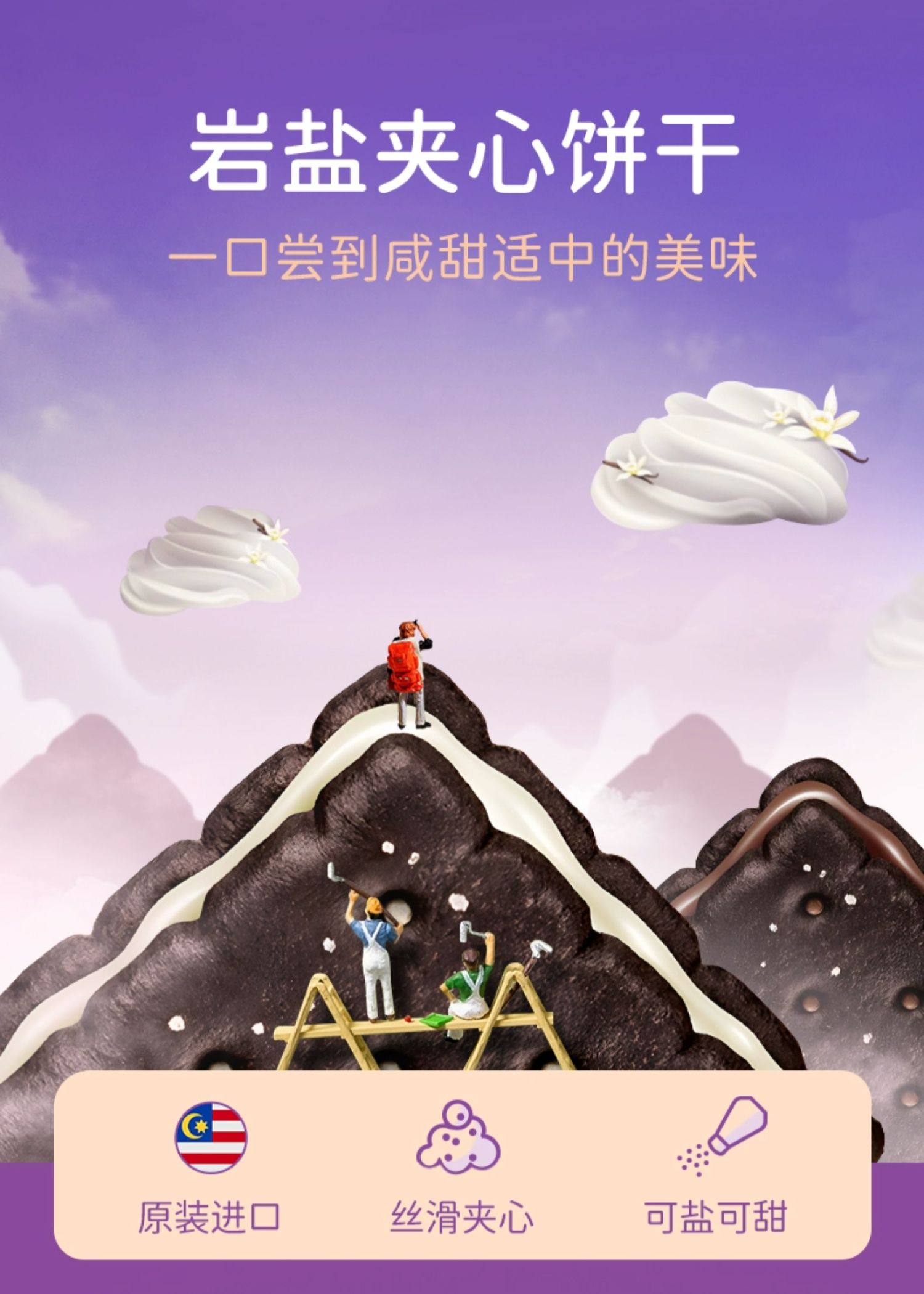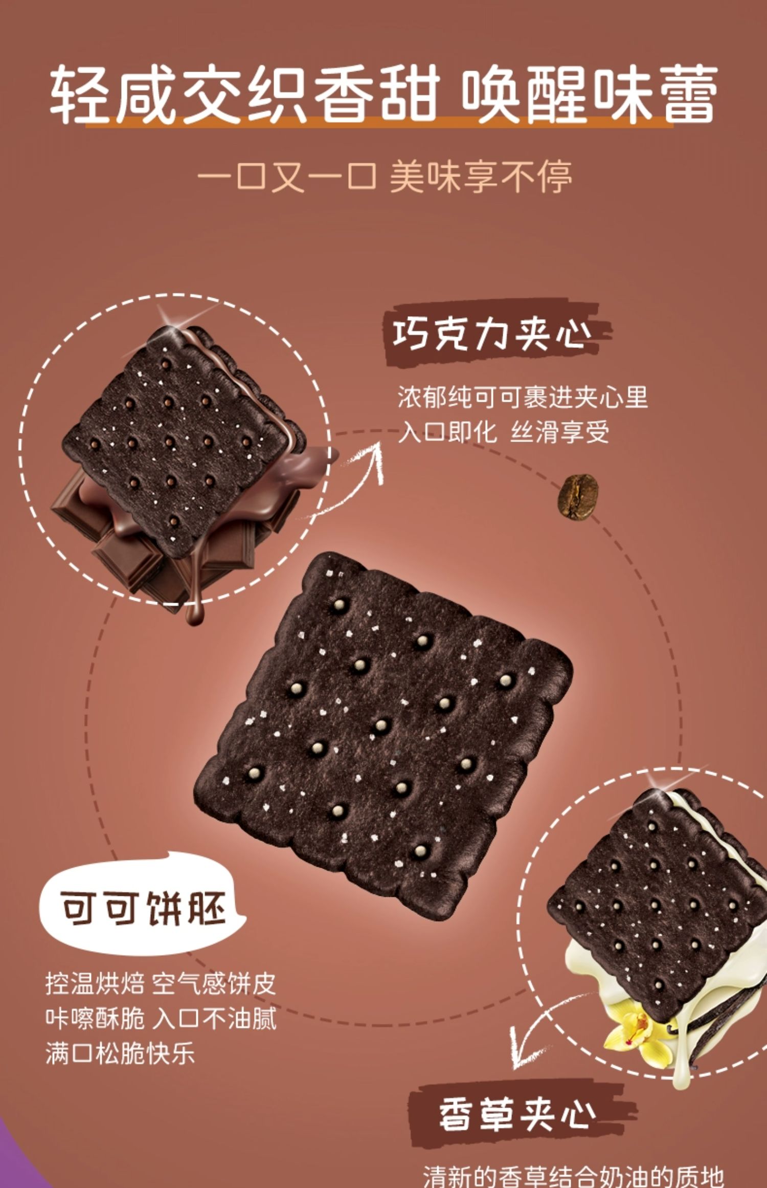马奇新新 马来西亚进口岩盐巧克力夹心饼干 休闲零食下午茶 190g*3袋
