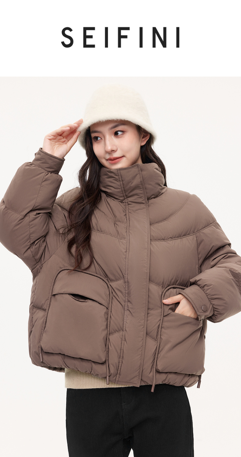 BSJ【特惠不退货】诗凡黎90鸭绒立领羽绒服2023冬新款外套女3EA480291