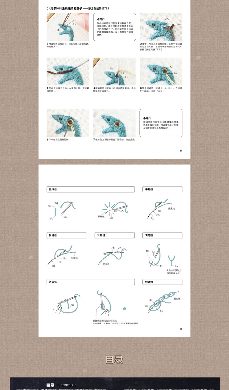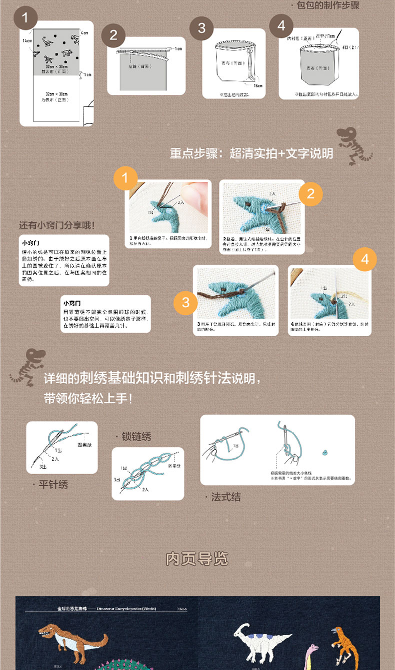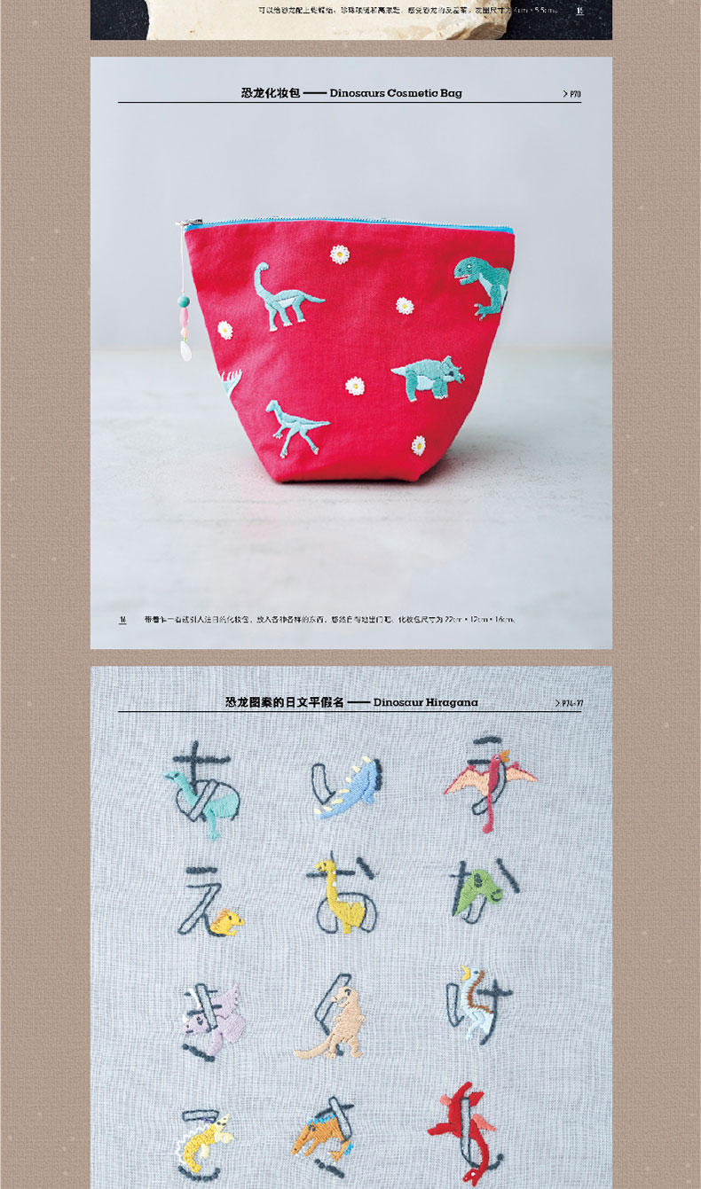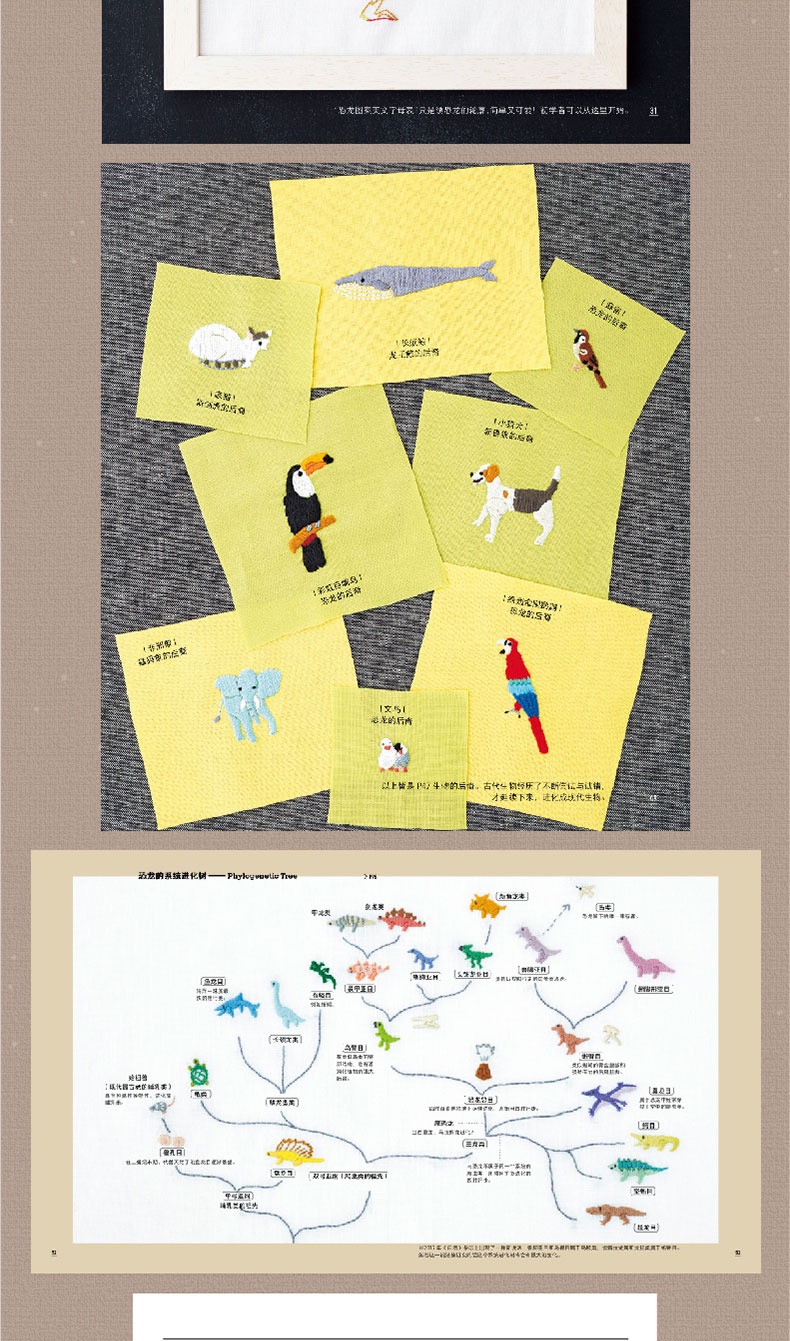 2020新书 恐龙刺绣 千叶美波子 可爱动物植物萌物手作刺绣编织手工DIY设计制作入门教程书 狗狗猫咪胸针装饰工具步骤详讲 钩针编织