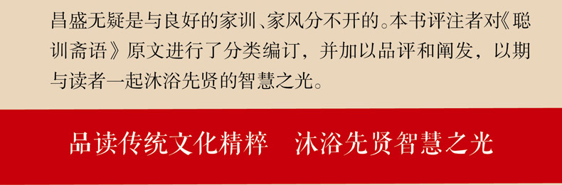 2019新书 聪训斋语全鉴 读传统文化精粹 沐浴先贤智慧之光 古代国学经典读物 中国文学书籍 青少年科普读物 人生哲学 文学经典著作
