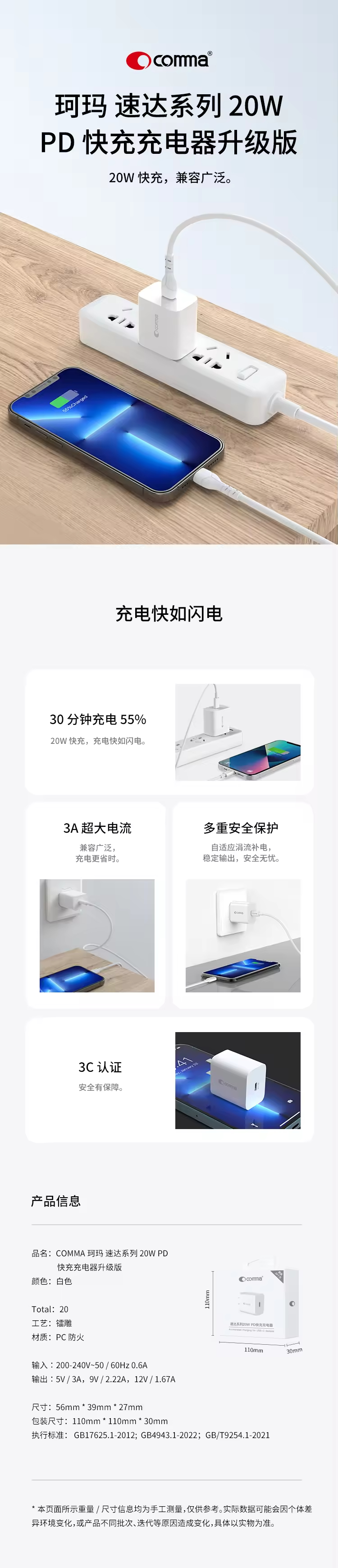 COMMA珂玛 速达系列 20W PD 快充充电器升级版