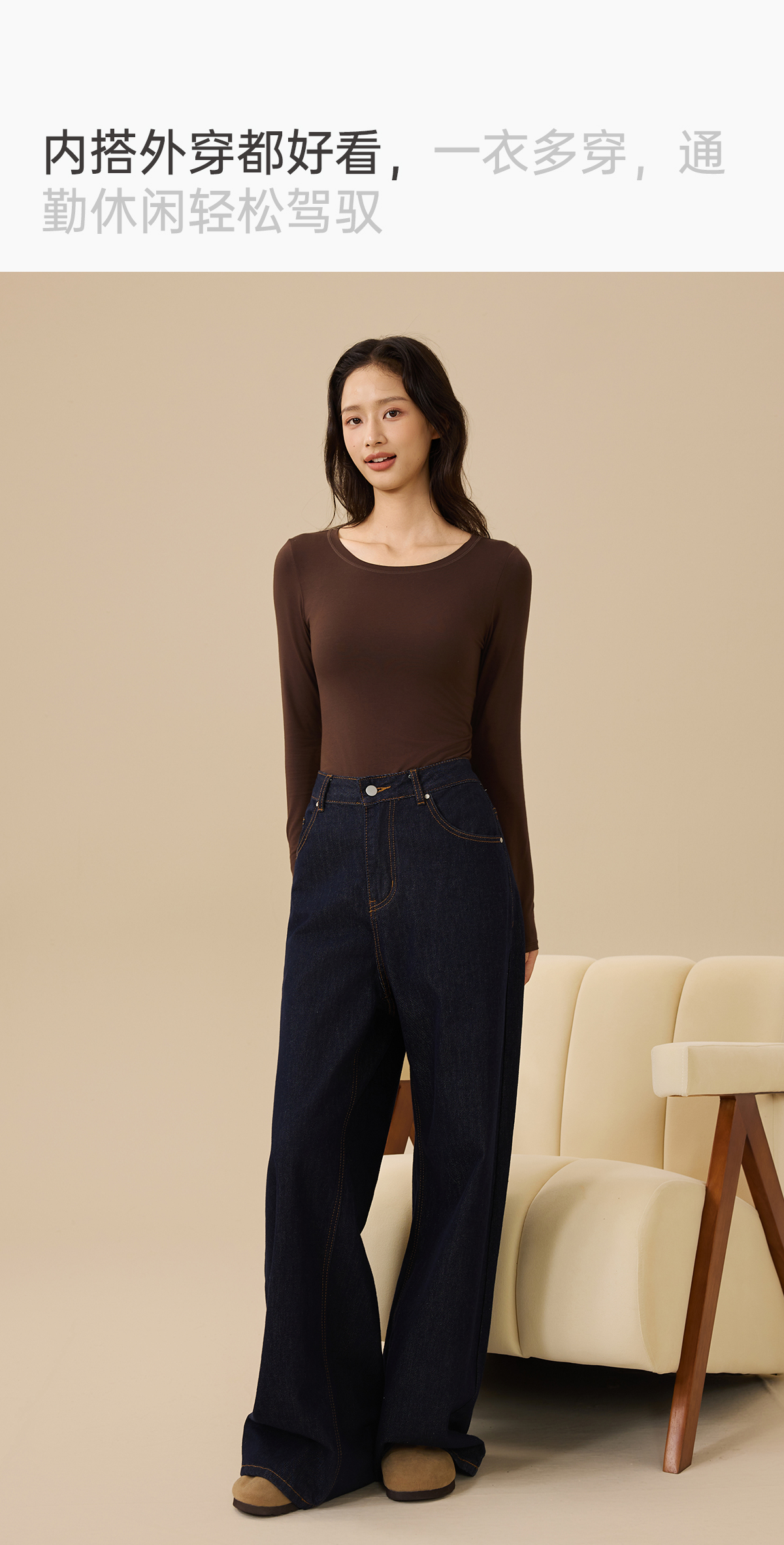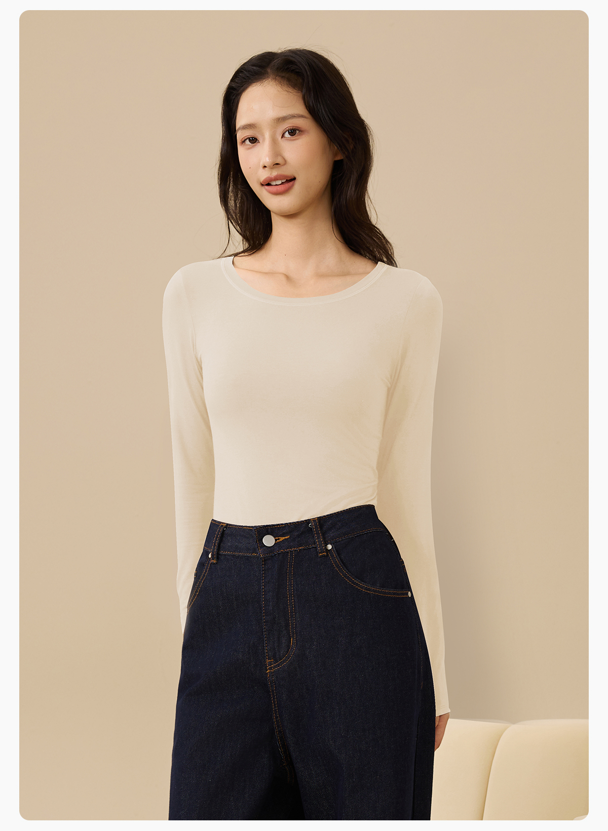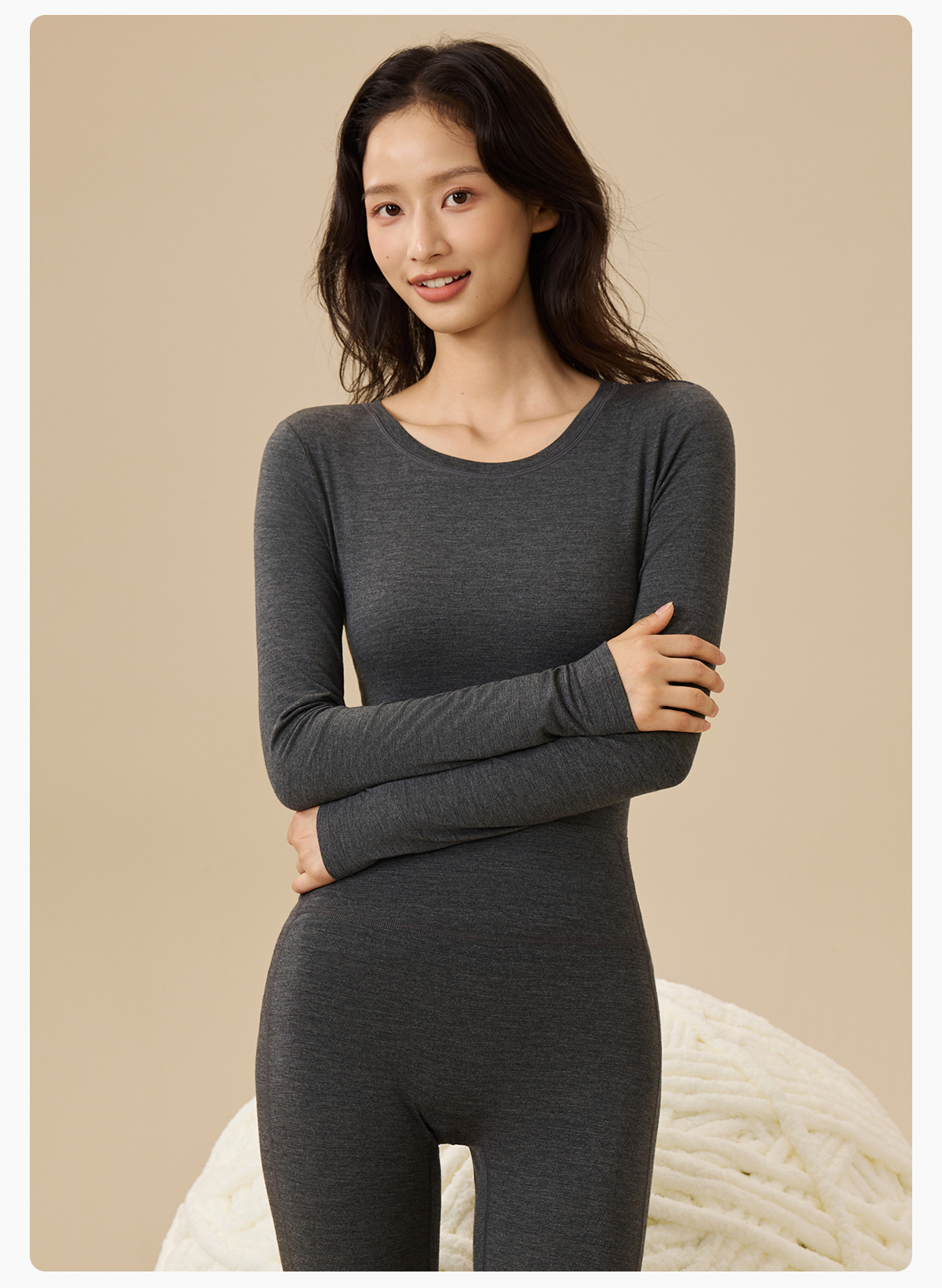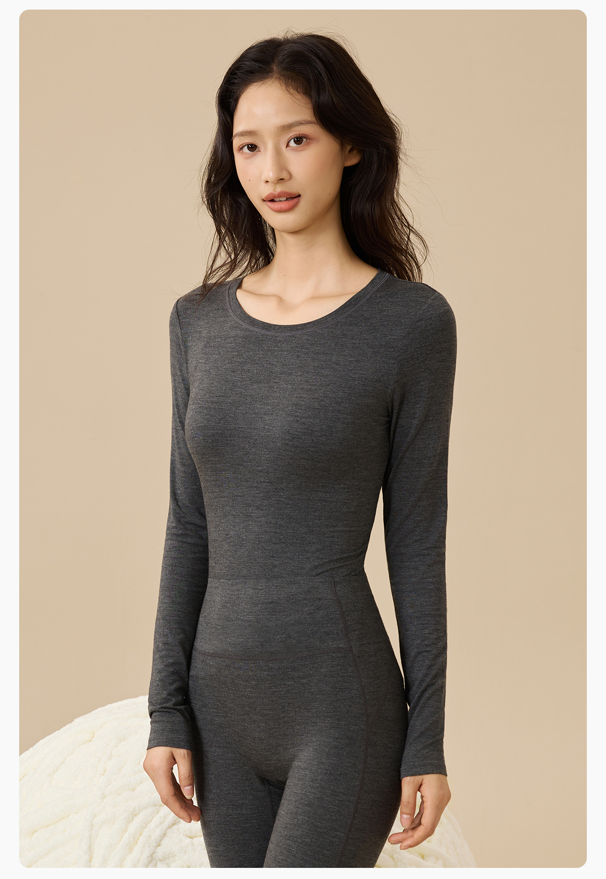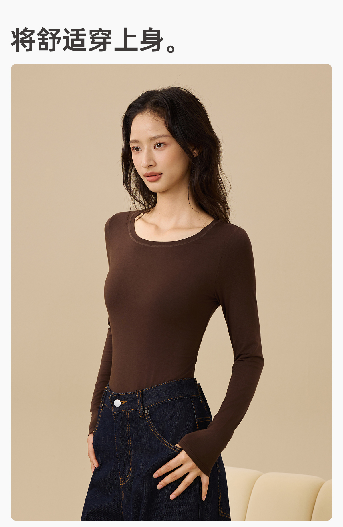 爱帝春季打底女士红石榴圆领基础打底上衣